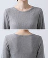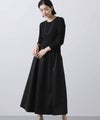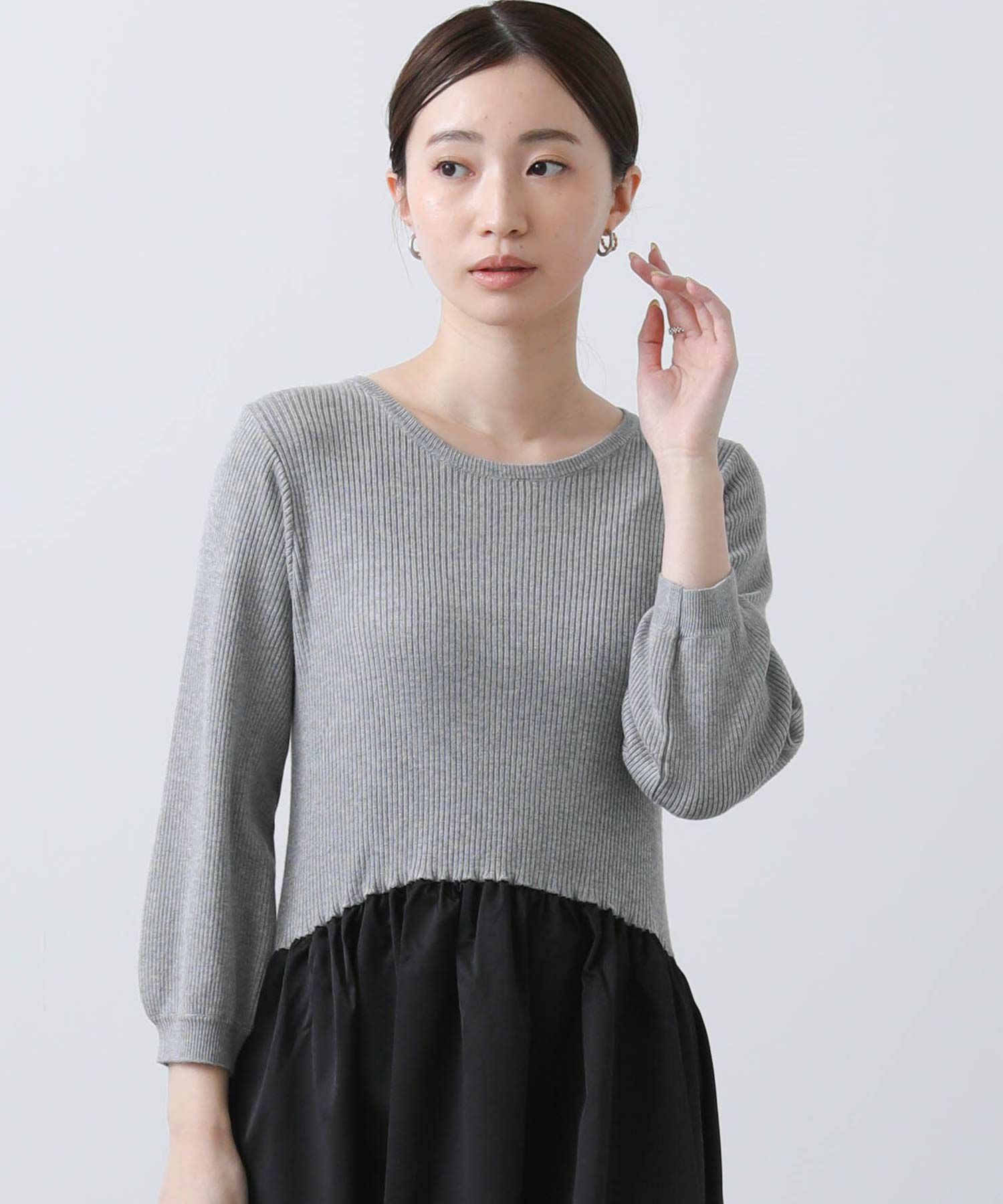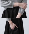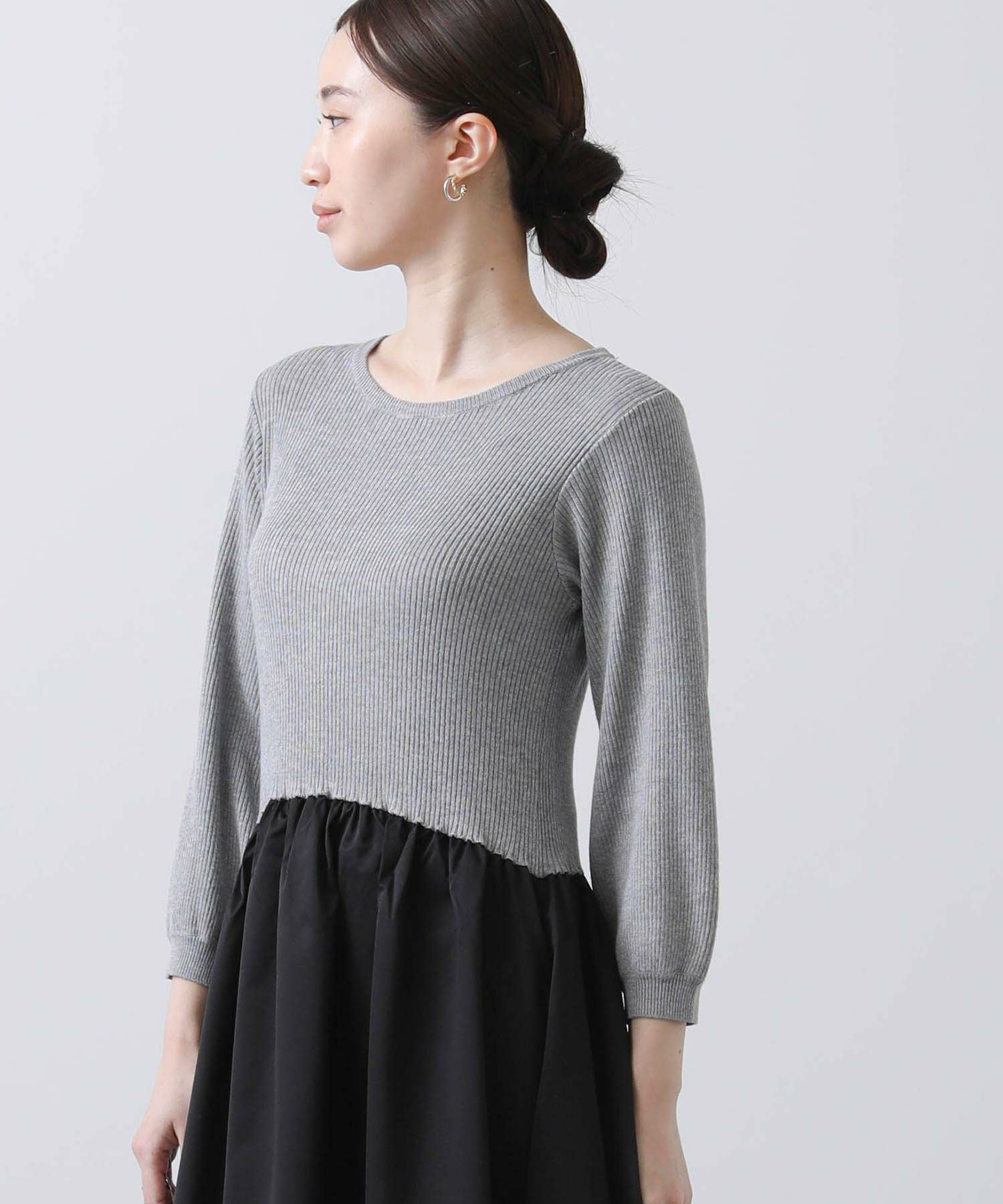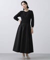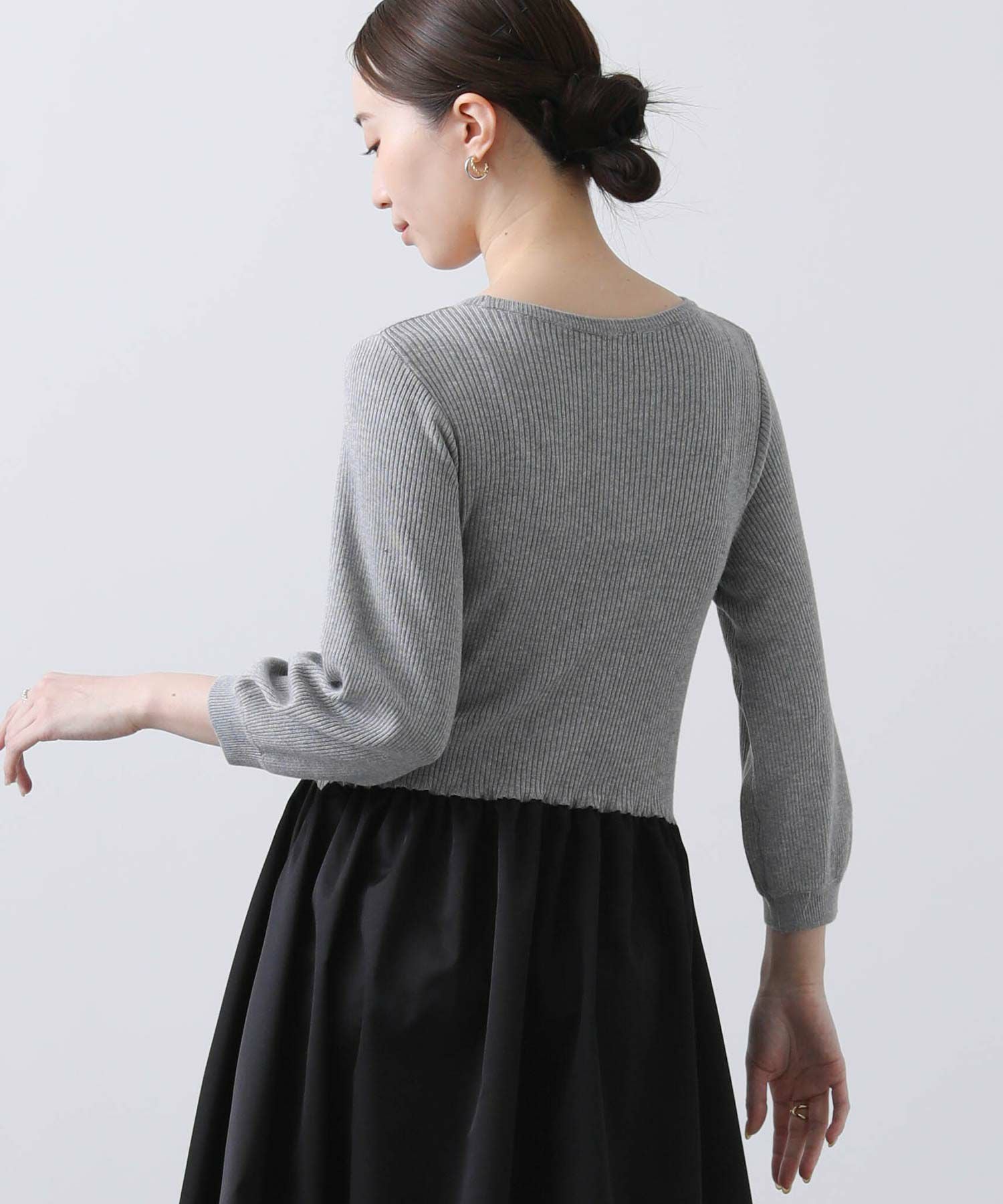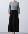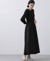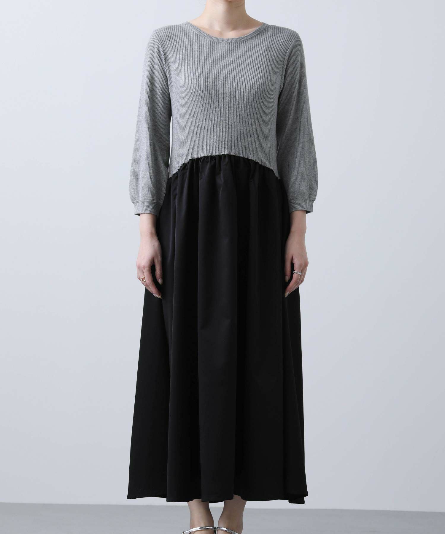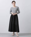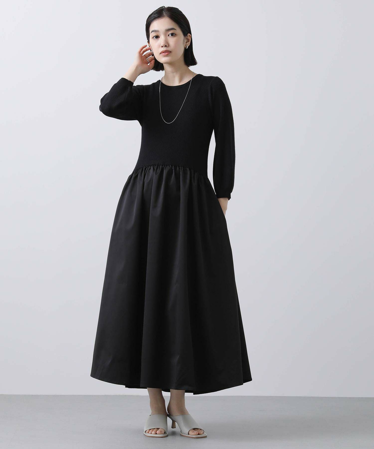 トップスはニット素材でスカート部分は程よいツヤと張りのあるポリエステル素材を使用。