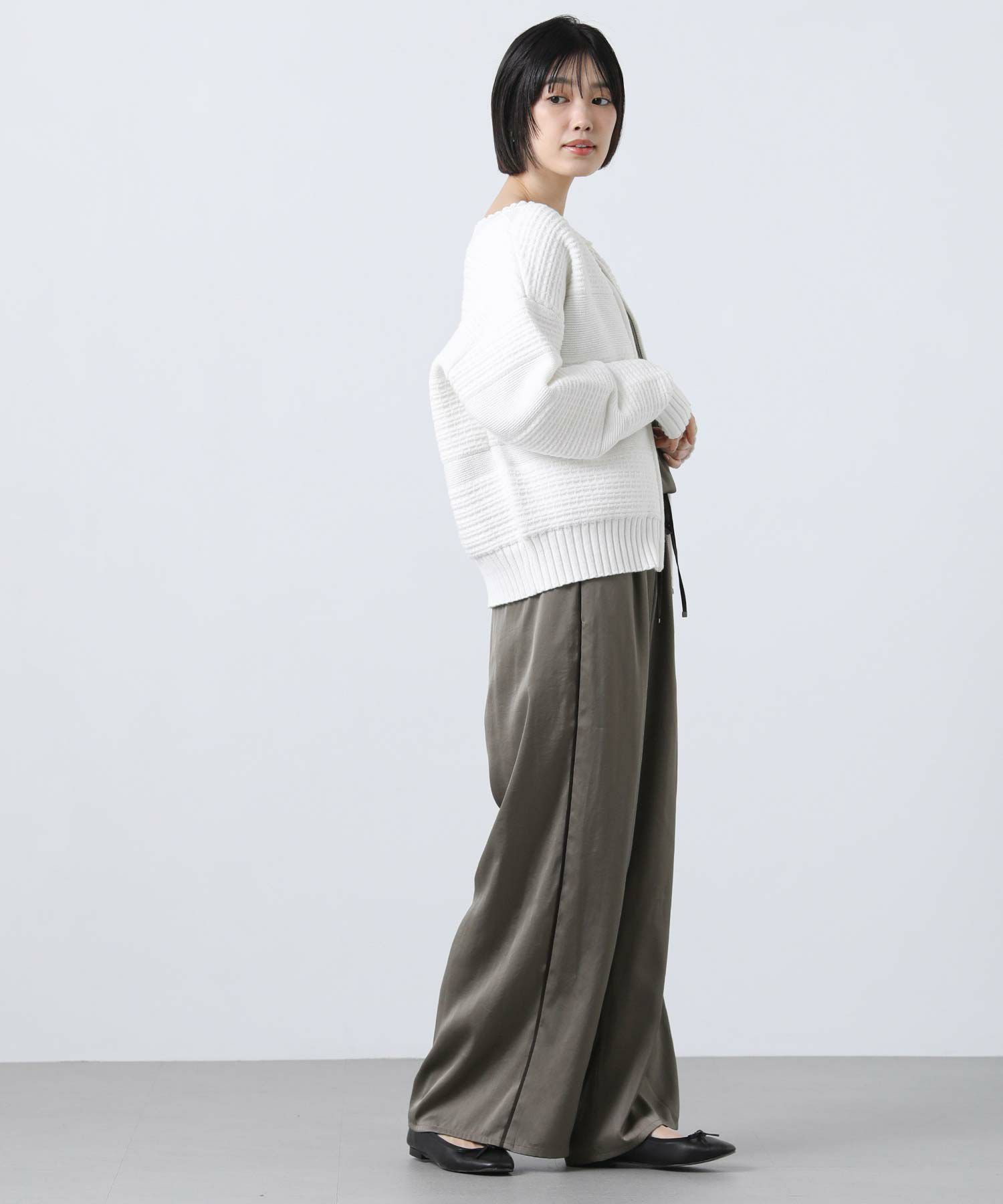 トレンドのサテン素材を使用し、品のある艶と落ち感を表現。