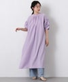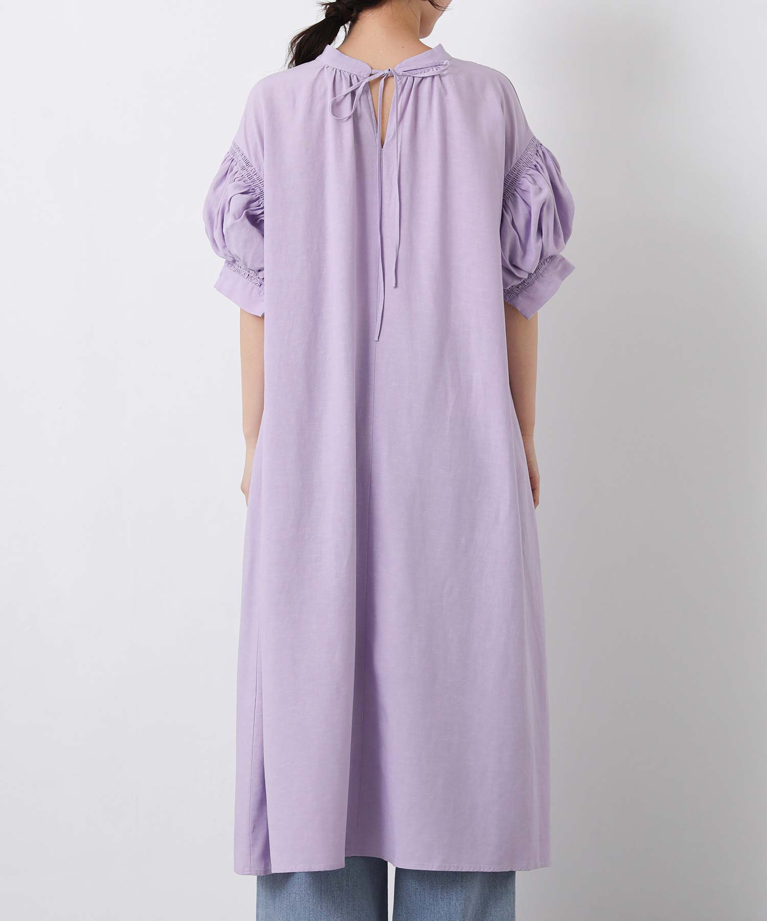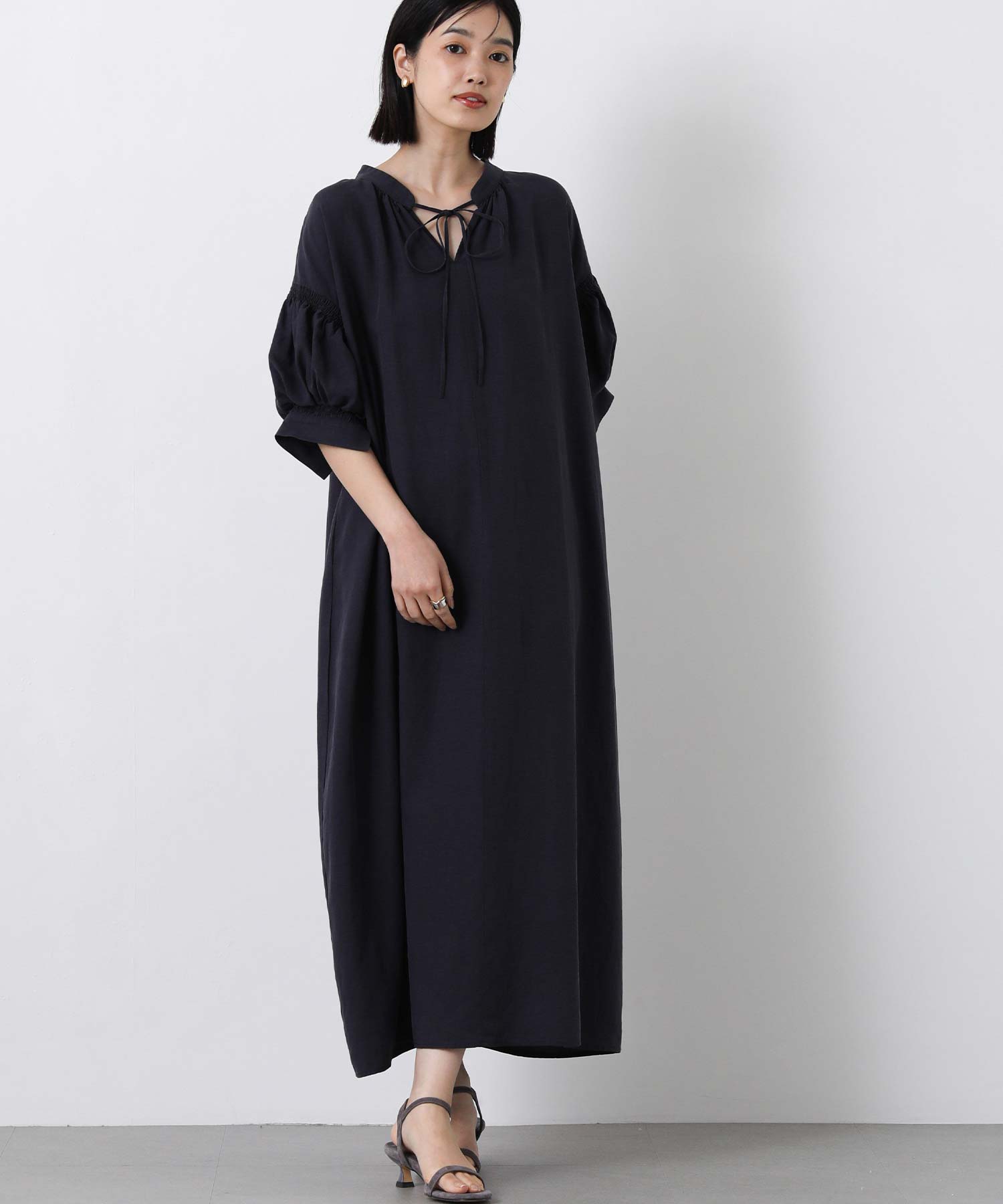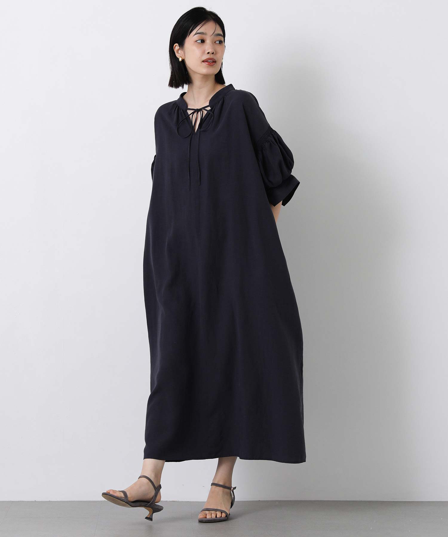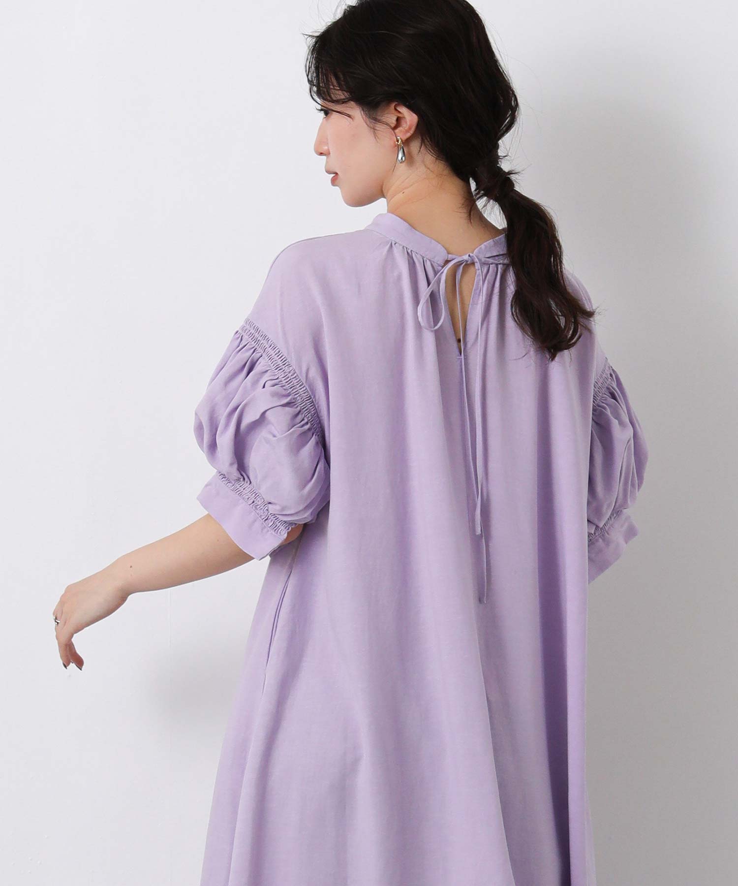 シンプルながらもデザイン性の高いパフスリーブと、顔回りをすっきりみせてくれるキーネックでこなれ感を演出。