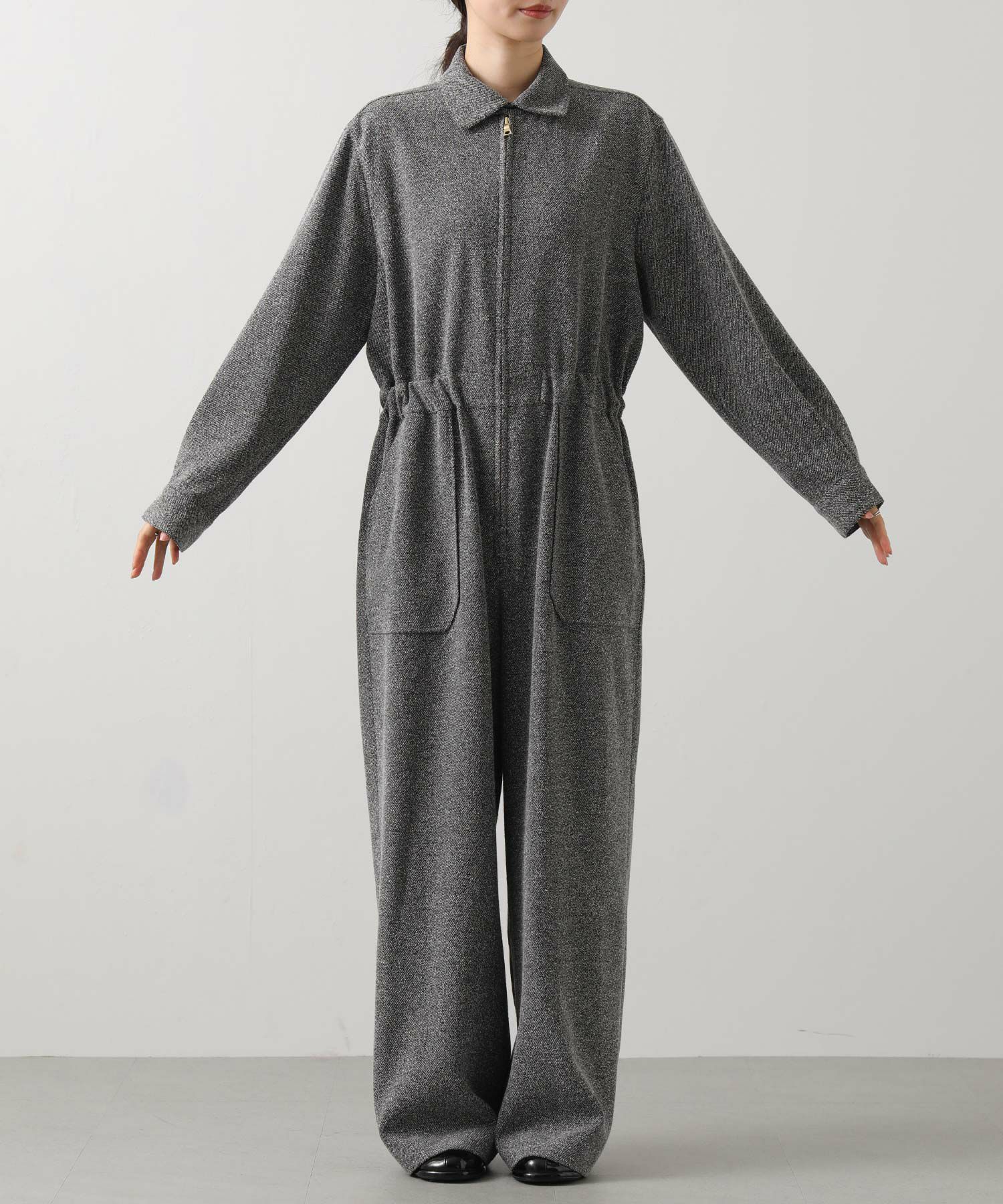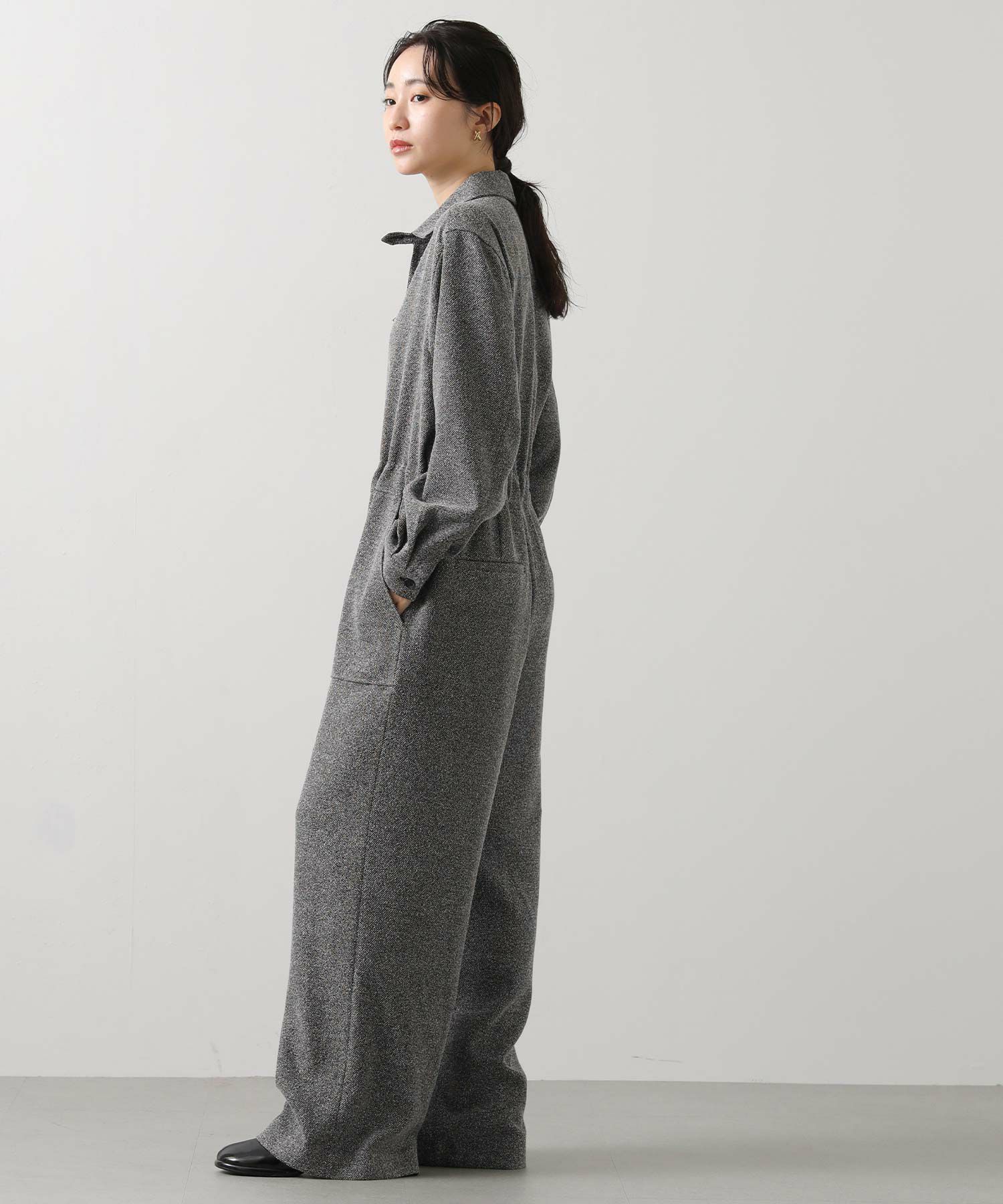 上品なツイード素材を贅沢に使ったクラシックなオールインワン。