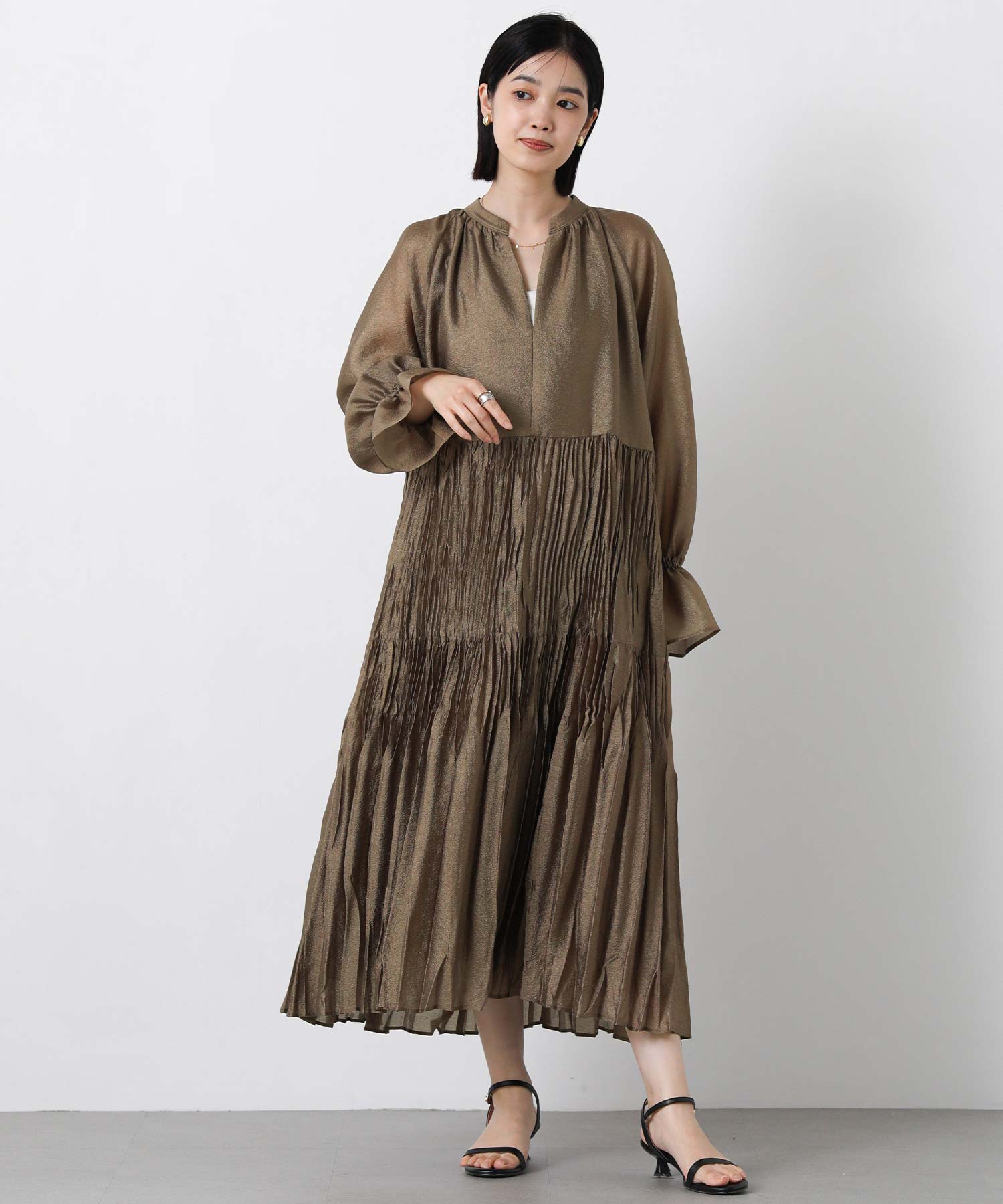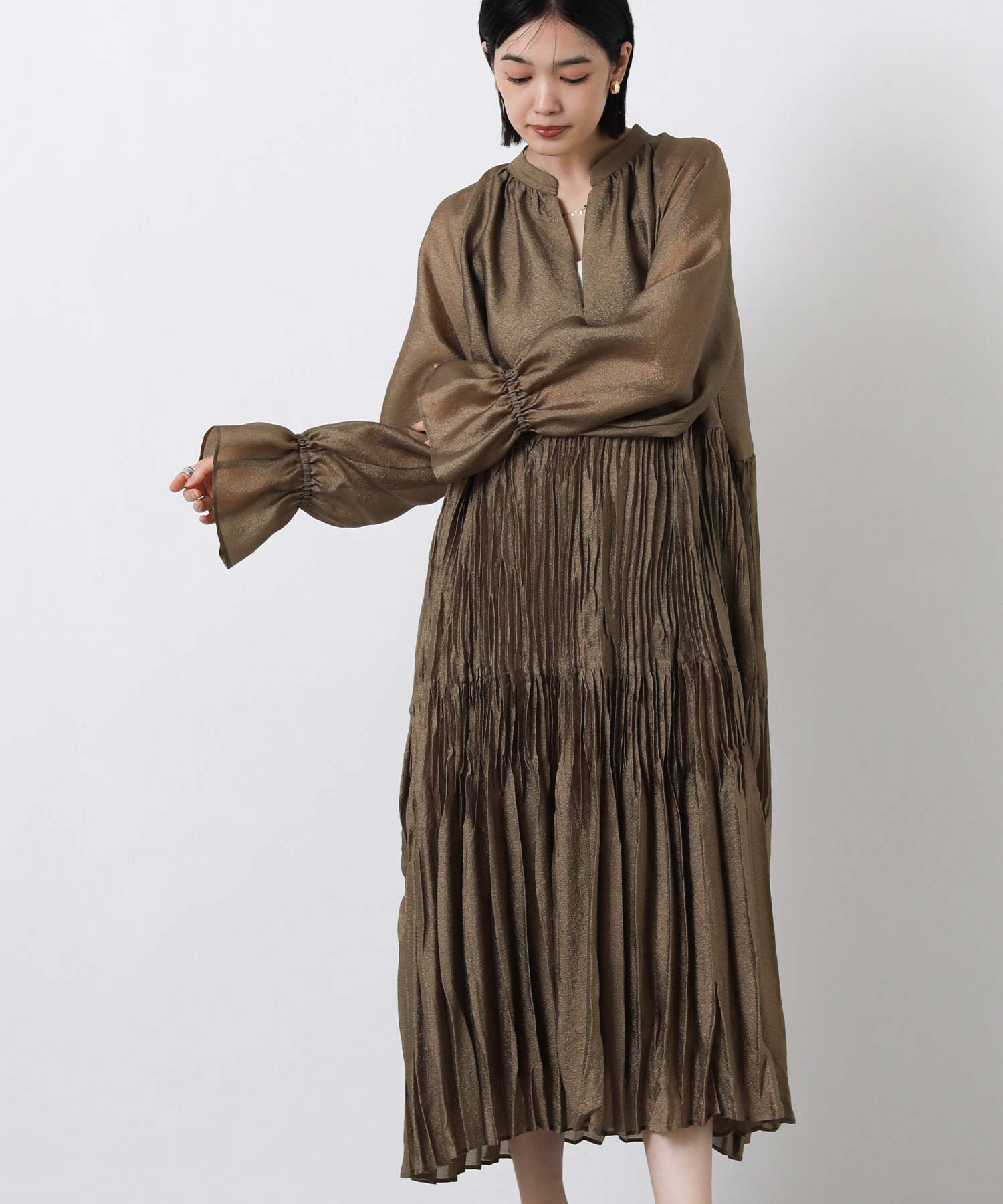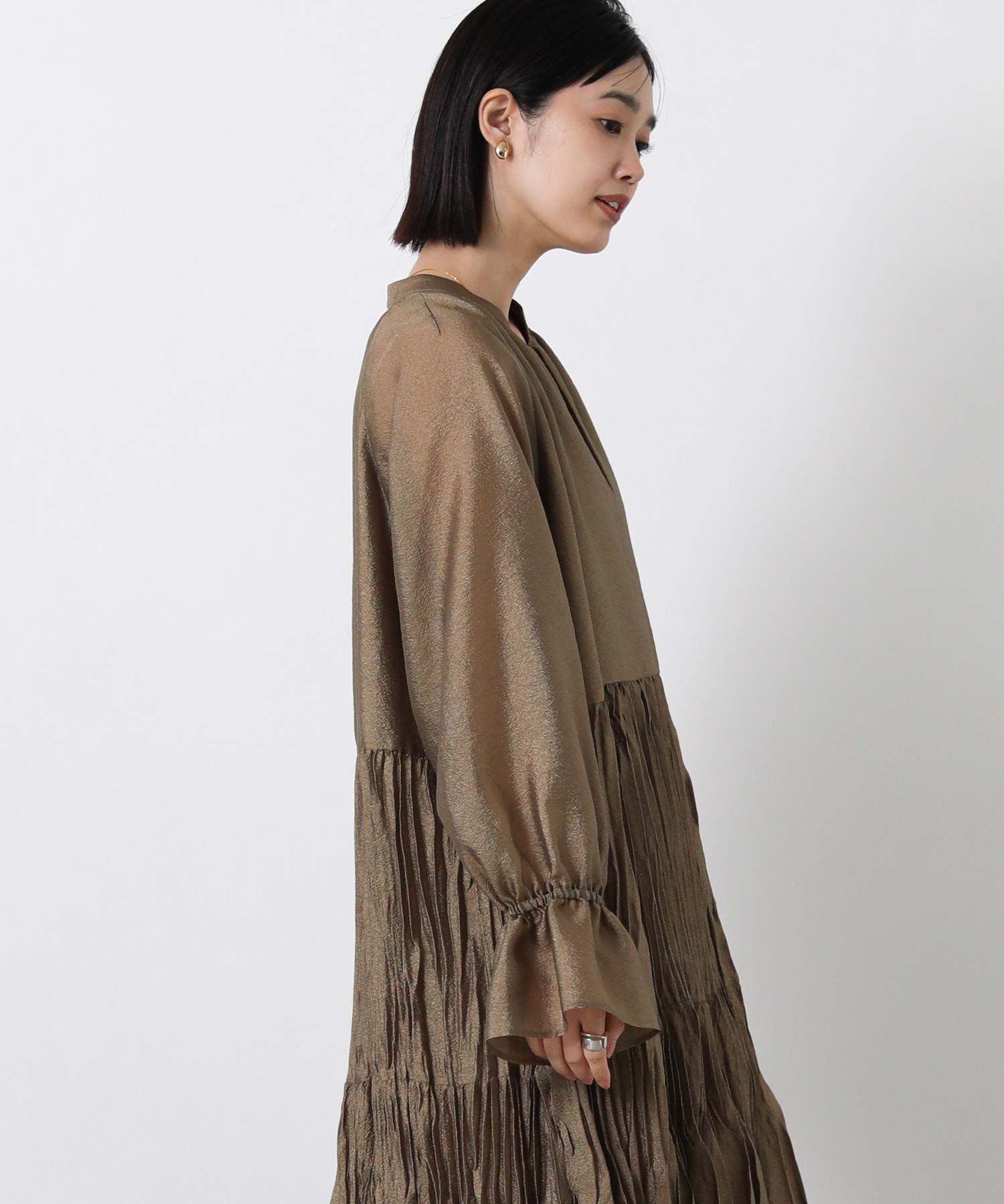 ボリュームのあるシルエットが印象的なティアードワンピース。