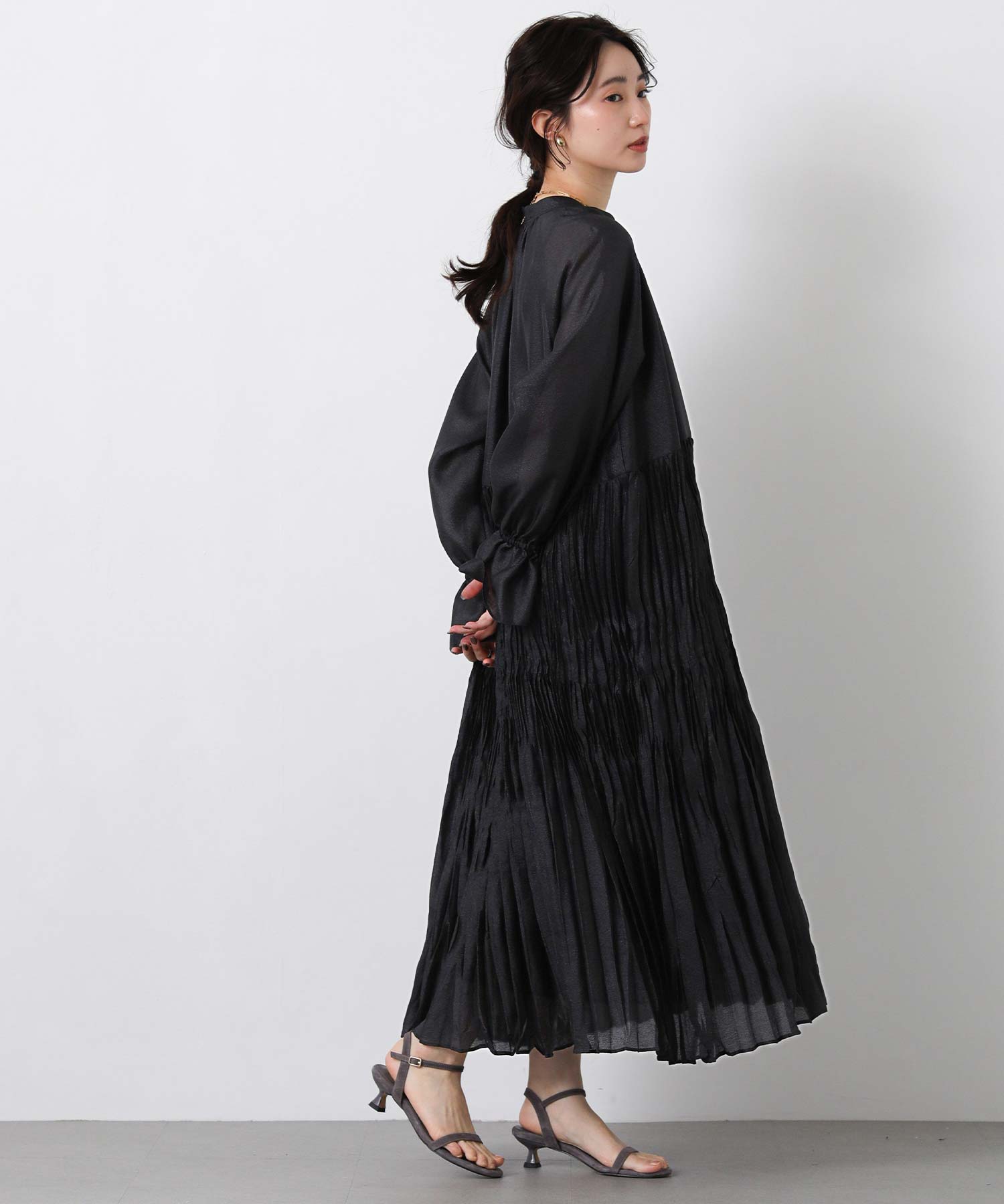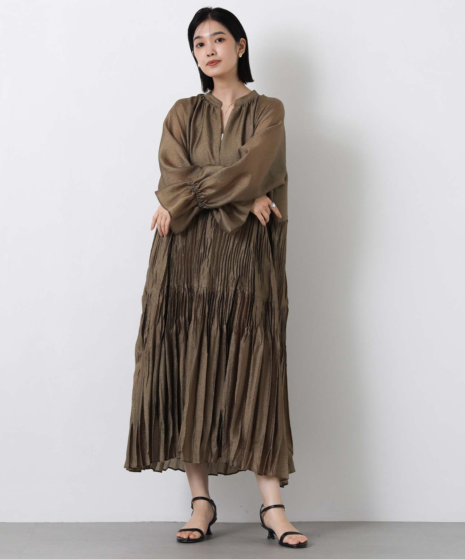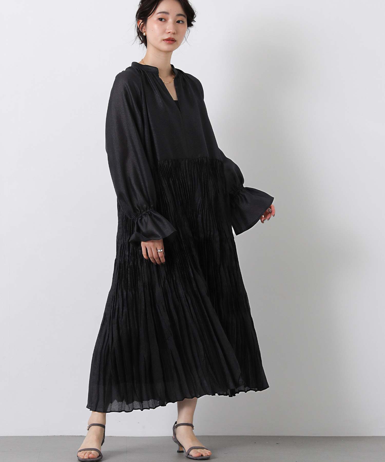 ボリュームのあるシルエットが印象的なティアードワンピース。