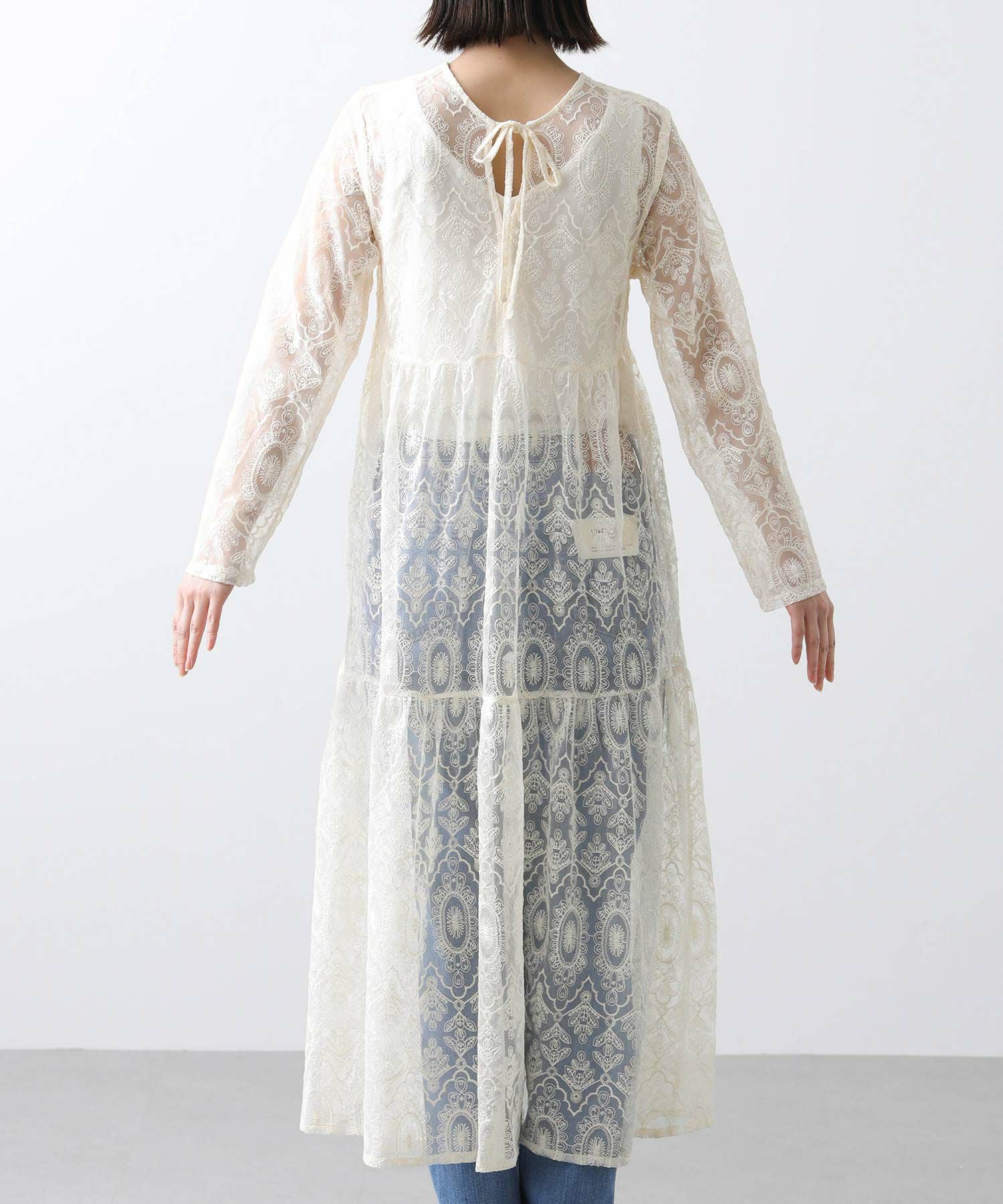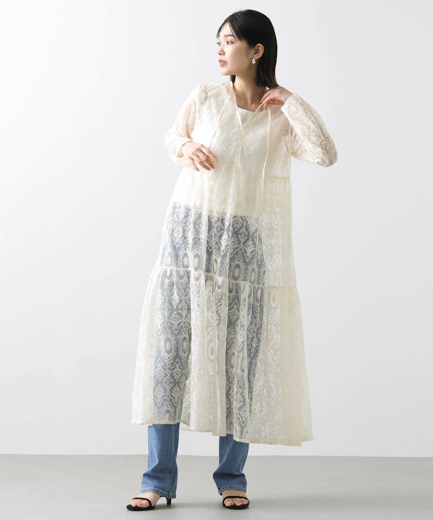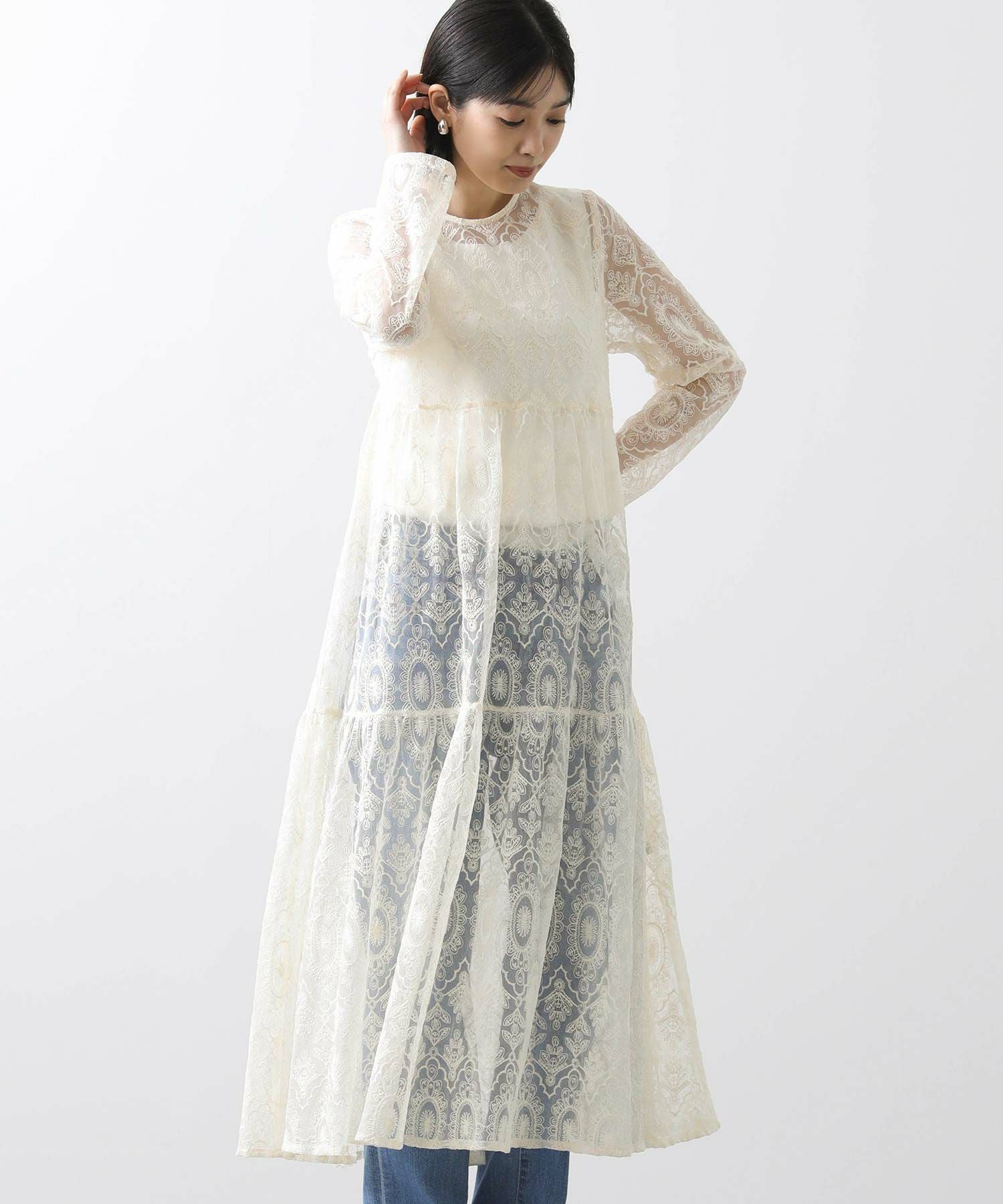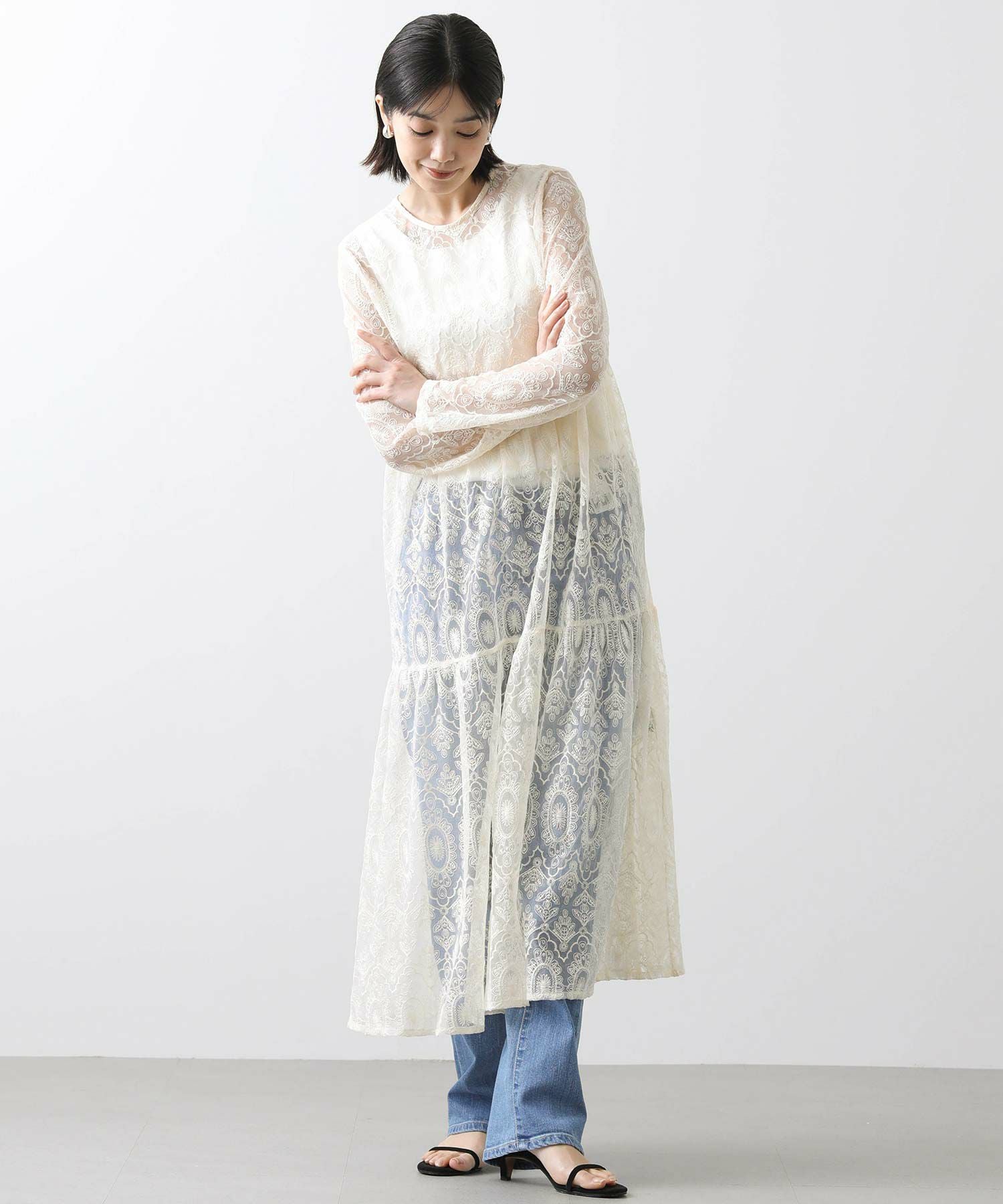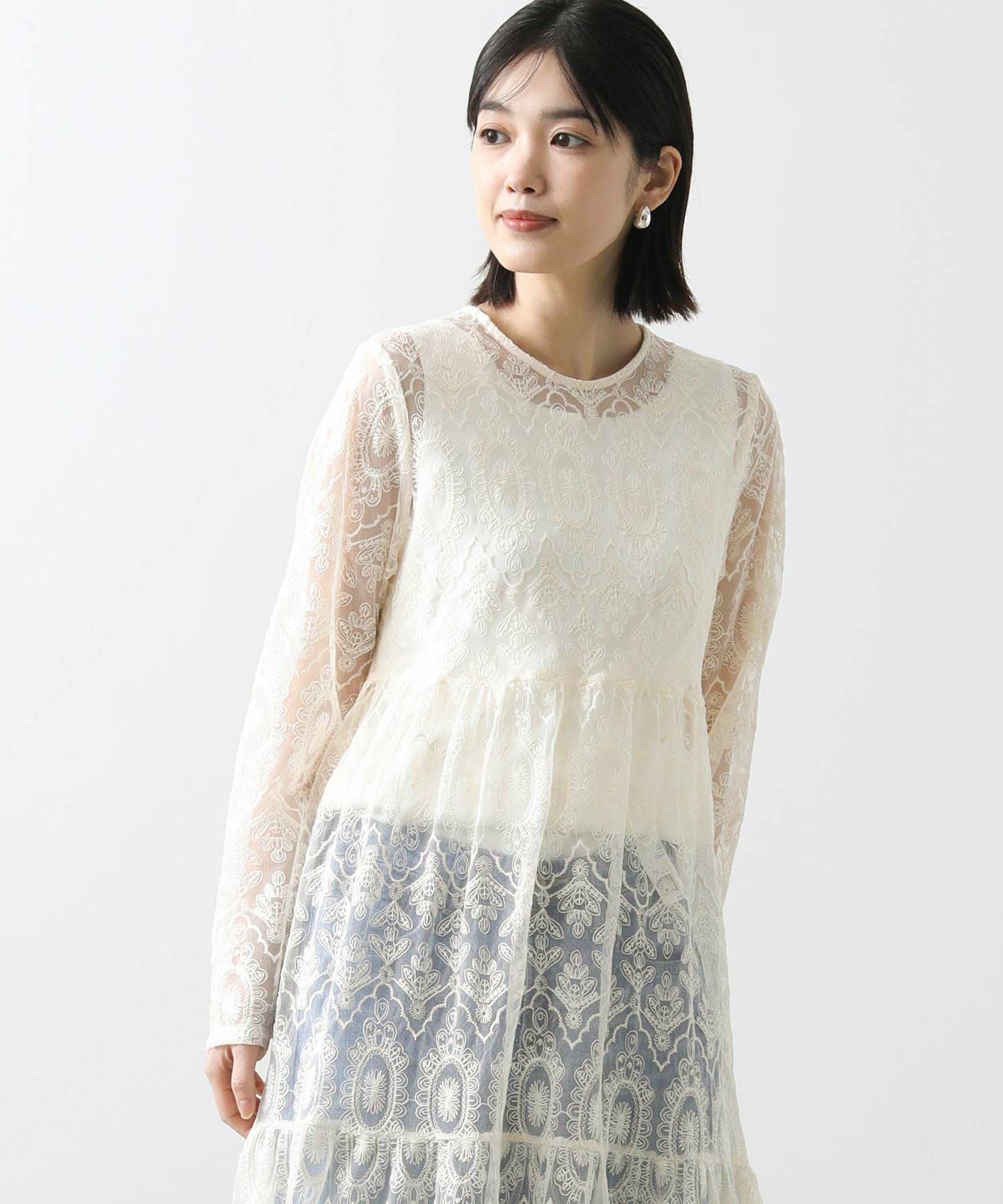【TorrazzoDonna(トラッツォドンナ)】から、メッシュに刺繍を施した繊細なレースを使用したティアードワンピースをセレクト。