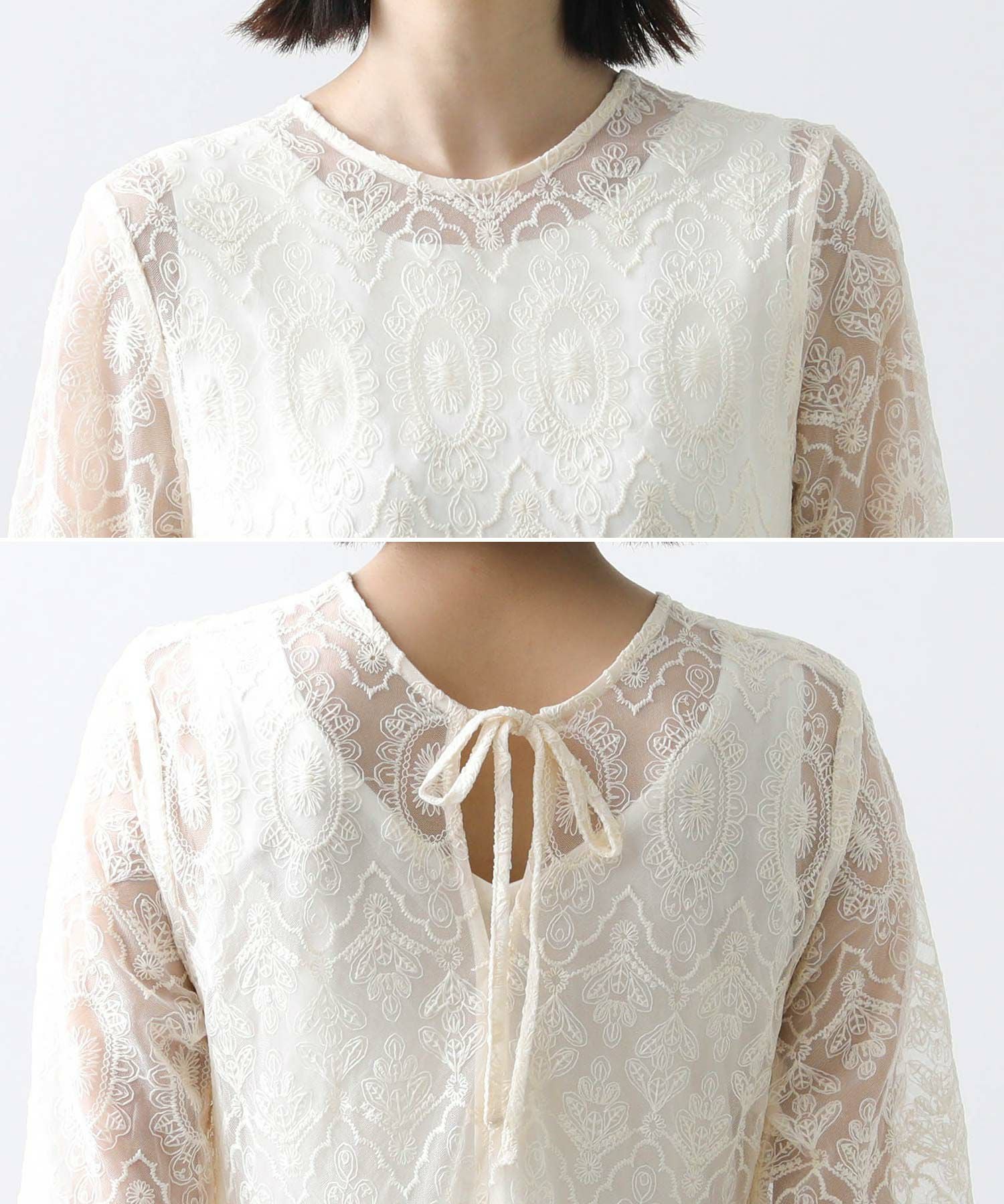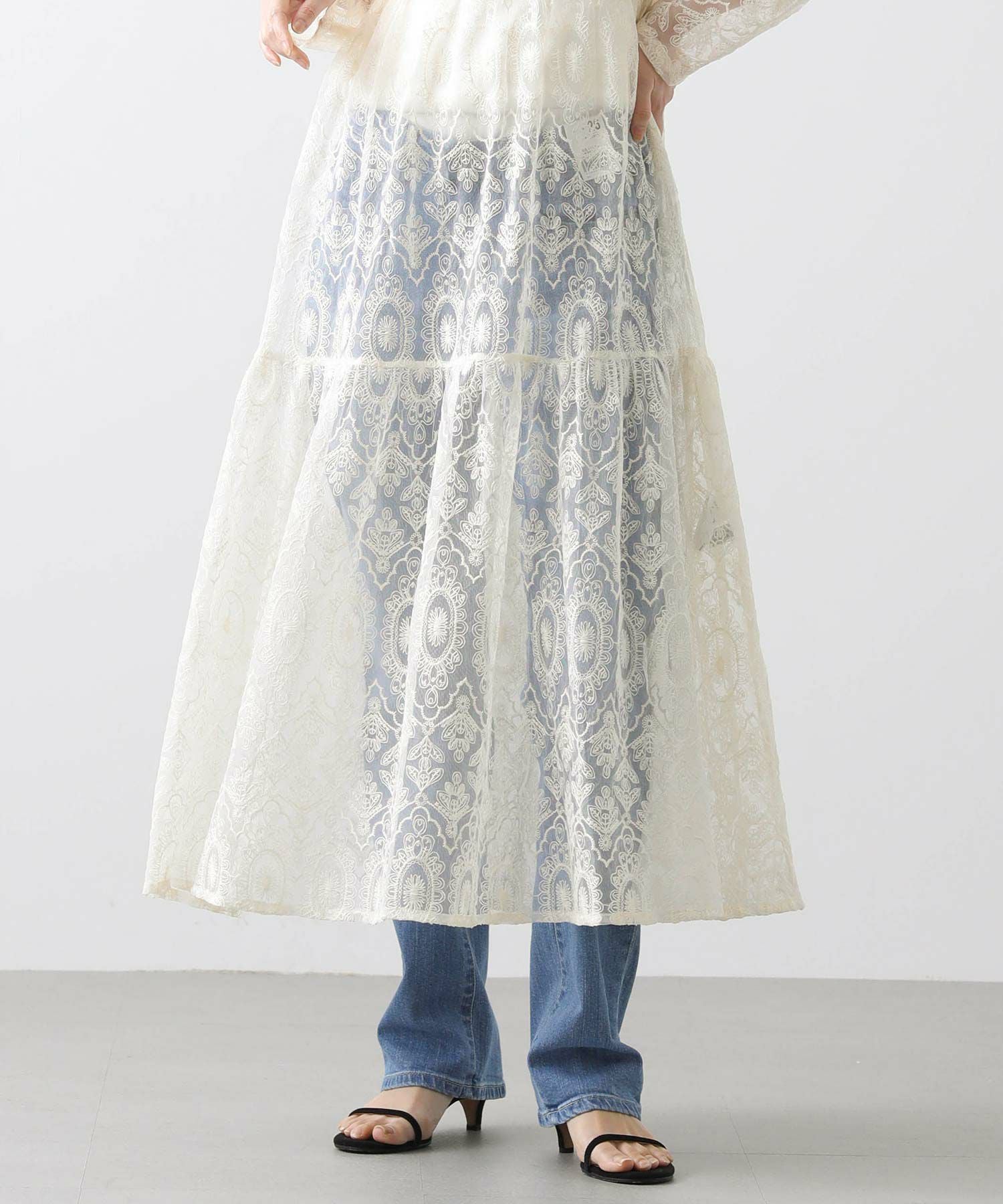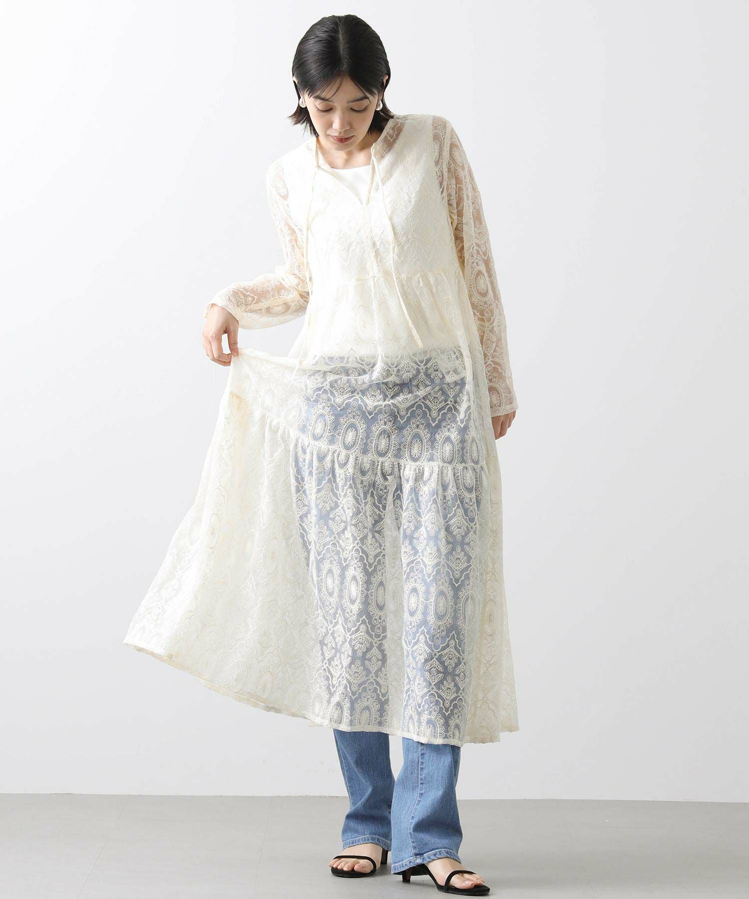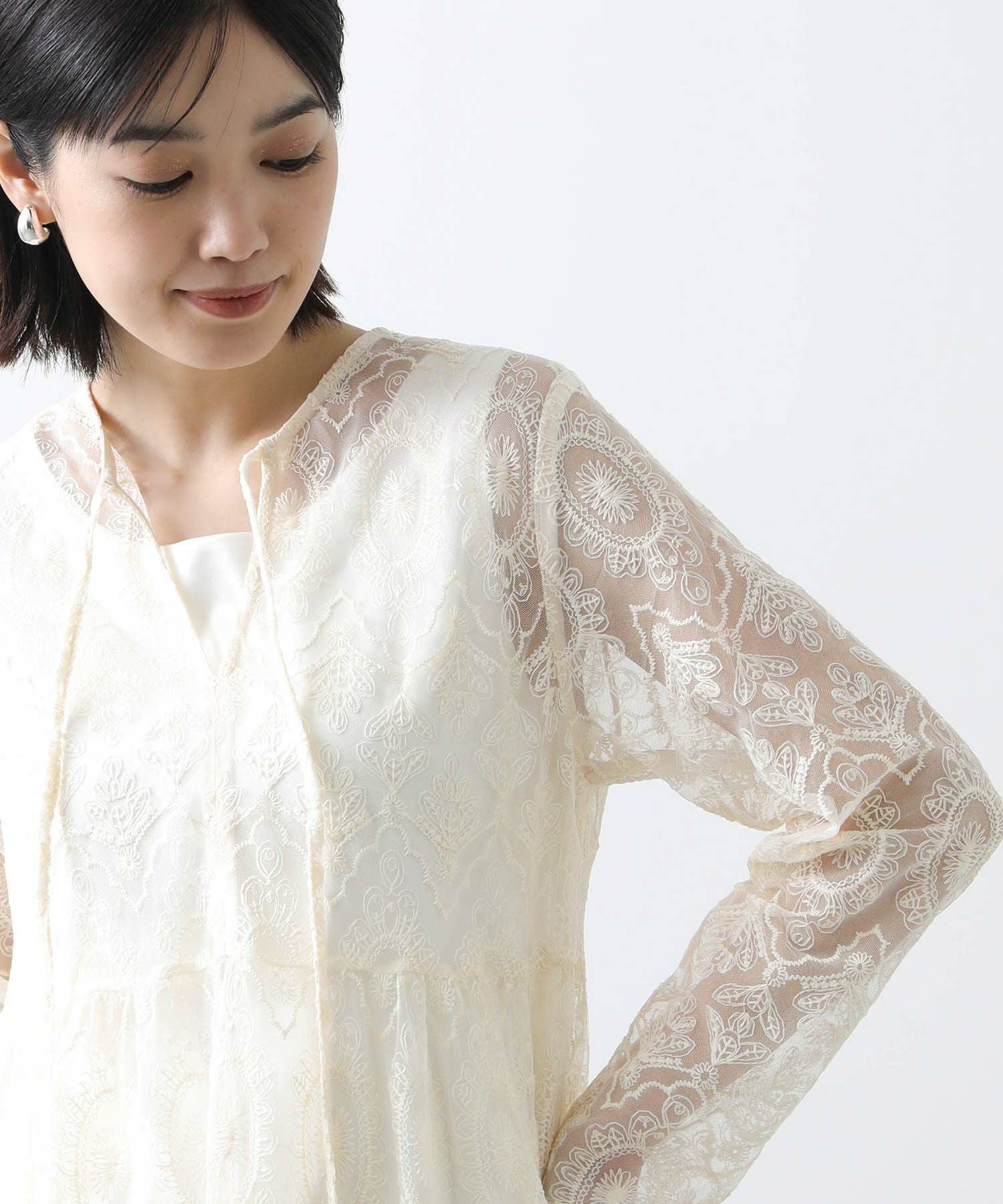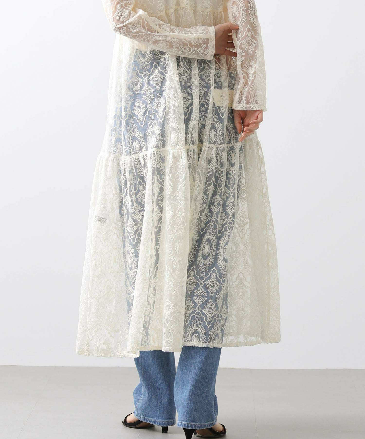 【TorrazzoDonna(トラッツォドンナ)】から、メッシュに刺繍を施した繊細なレースを使用したティアードワンピースをセレクト。