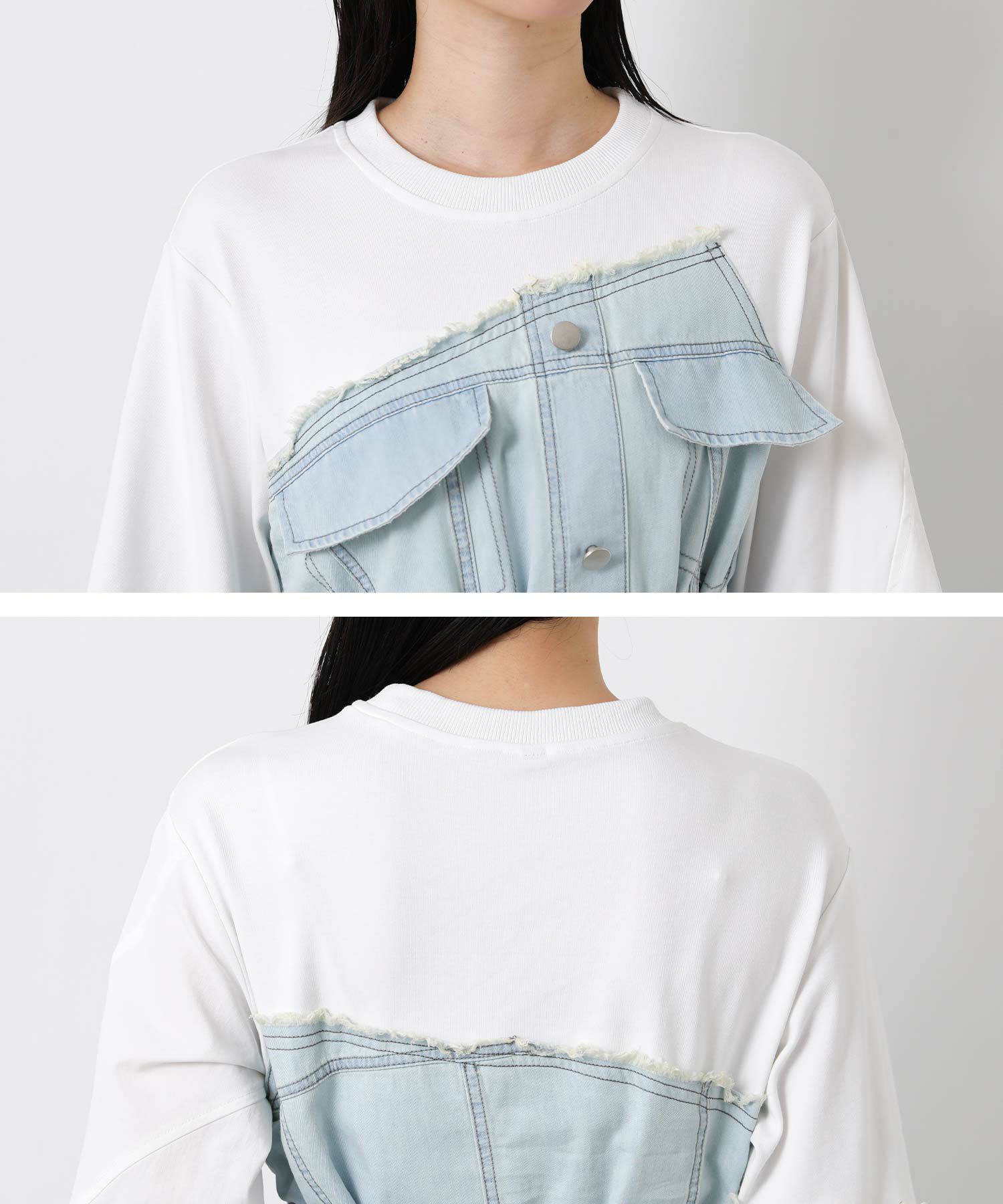デニム部分は、Gジャンをリメイクしたかのようなデザインが目を引き、左袖はシャツのようなディテールをプラス。