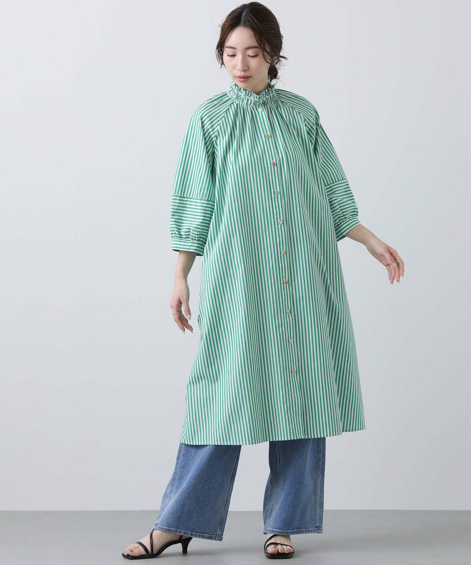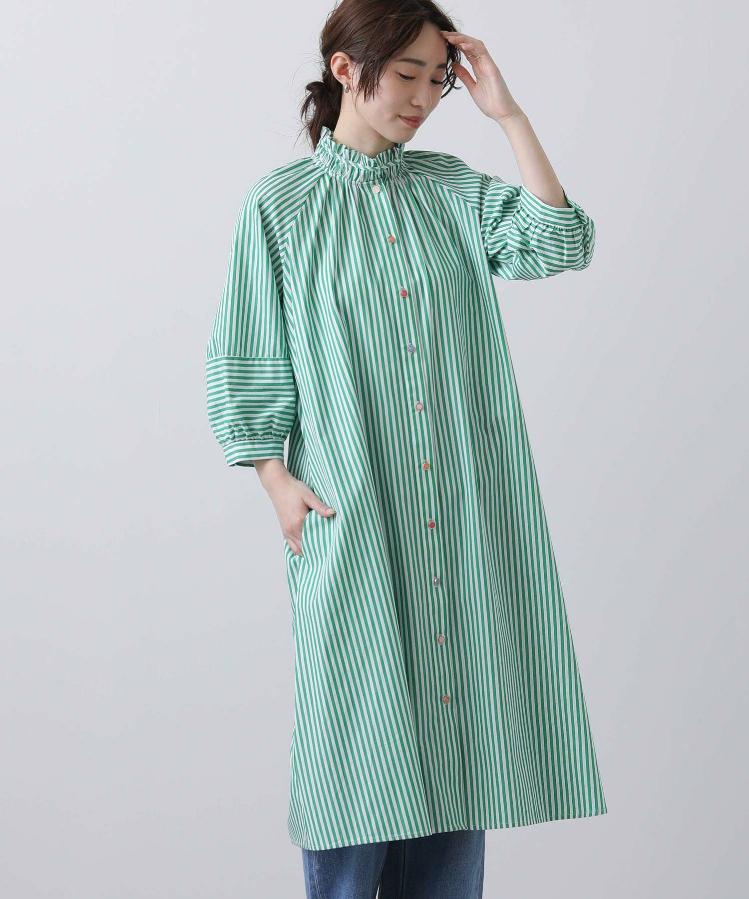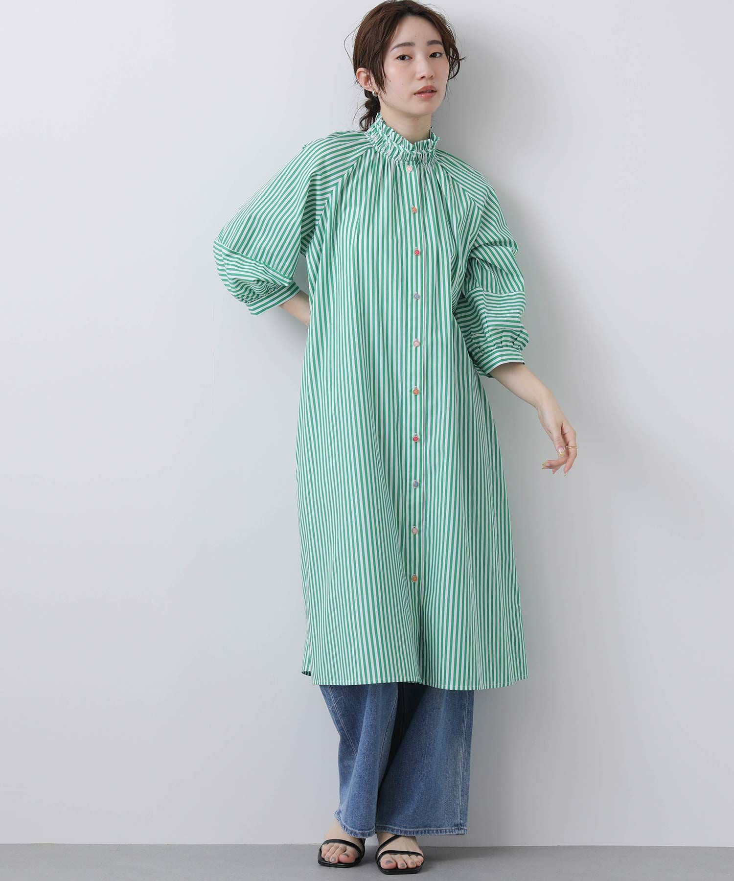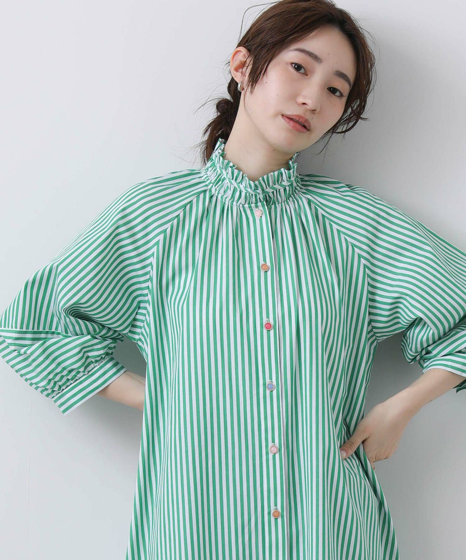 【Nümph/ニンフ】から、軽やかなストライプシャツワンピースをセレクト。