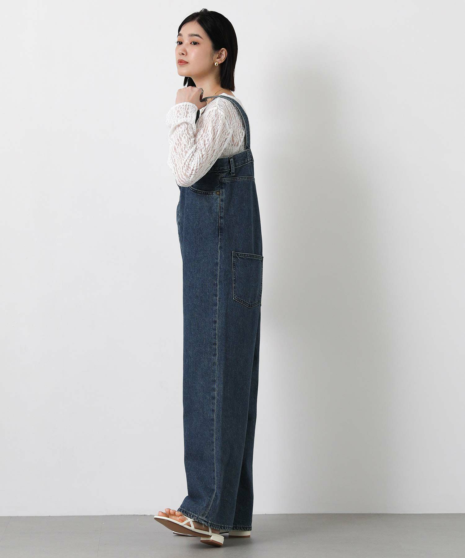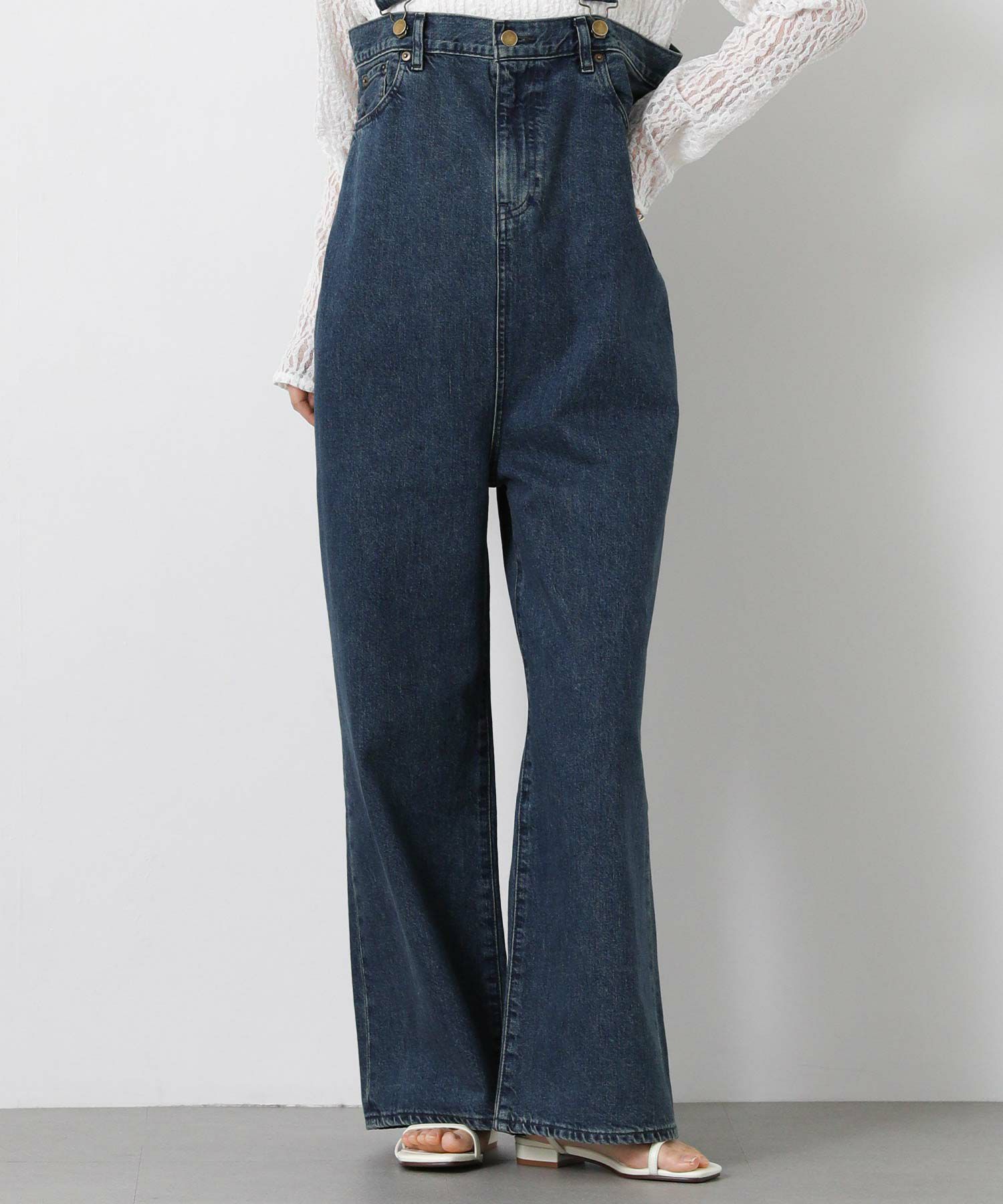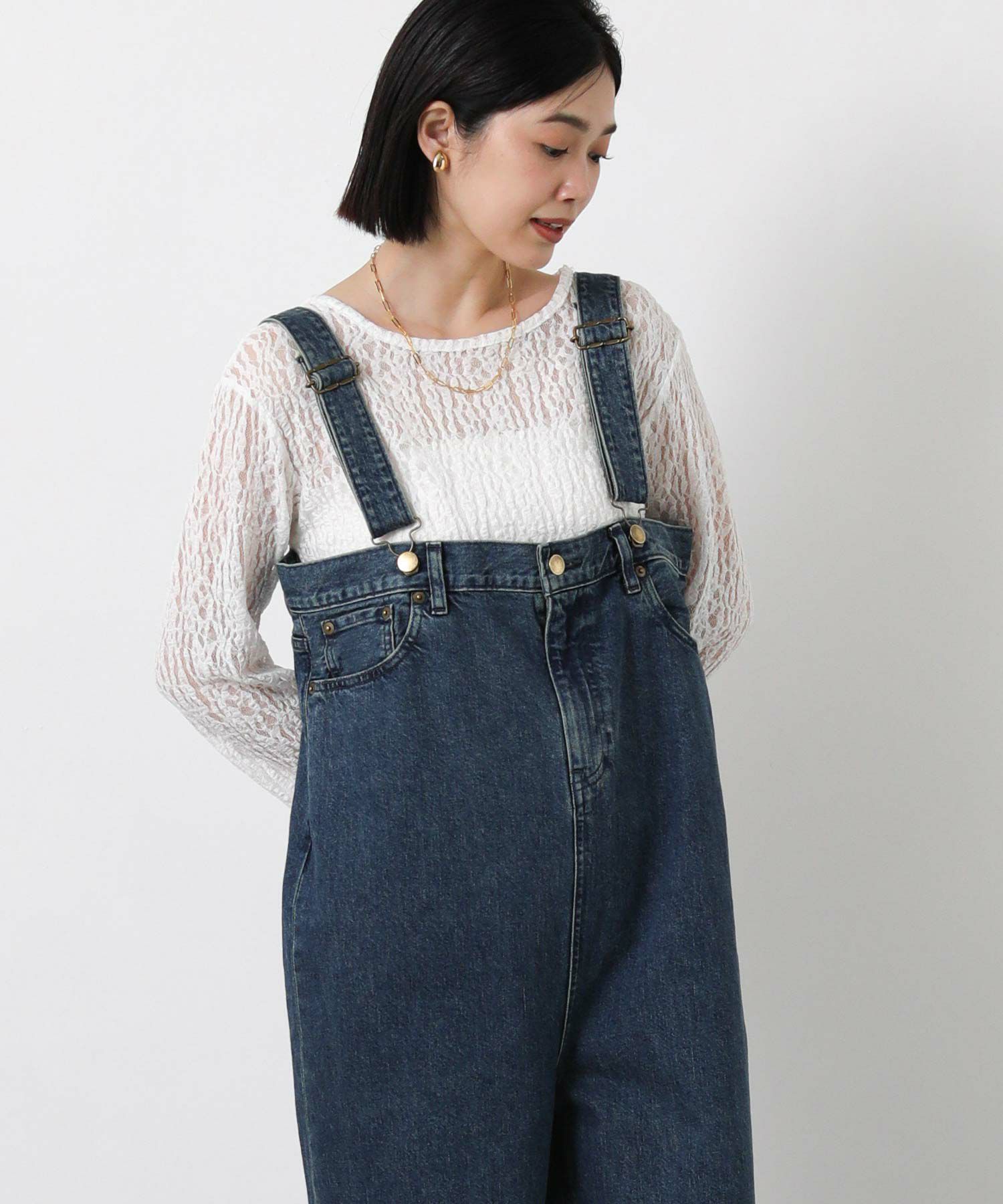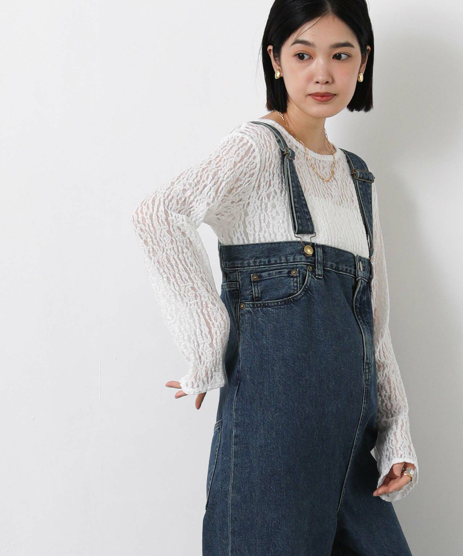 Leminor(ルミノア)のファイブポケットデニムを胸下まで穿いたようなデザインのサロペットをセレクト。
