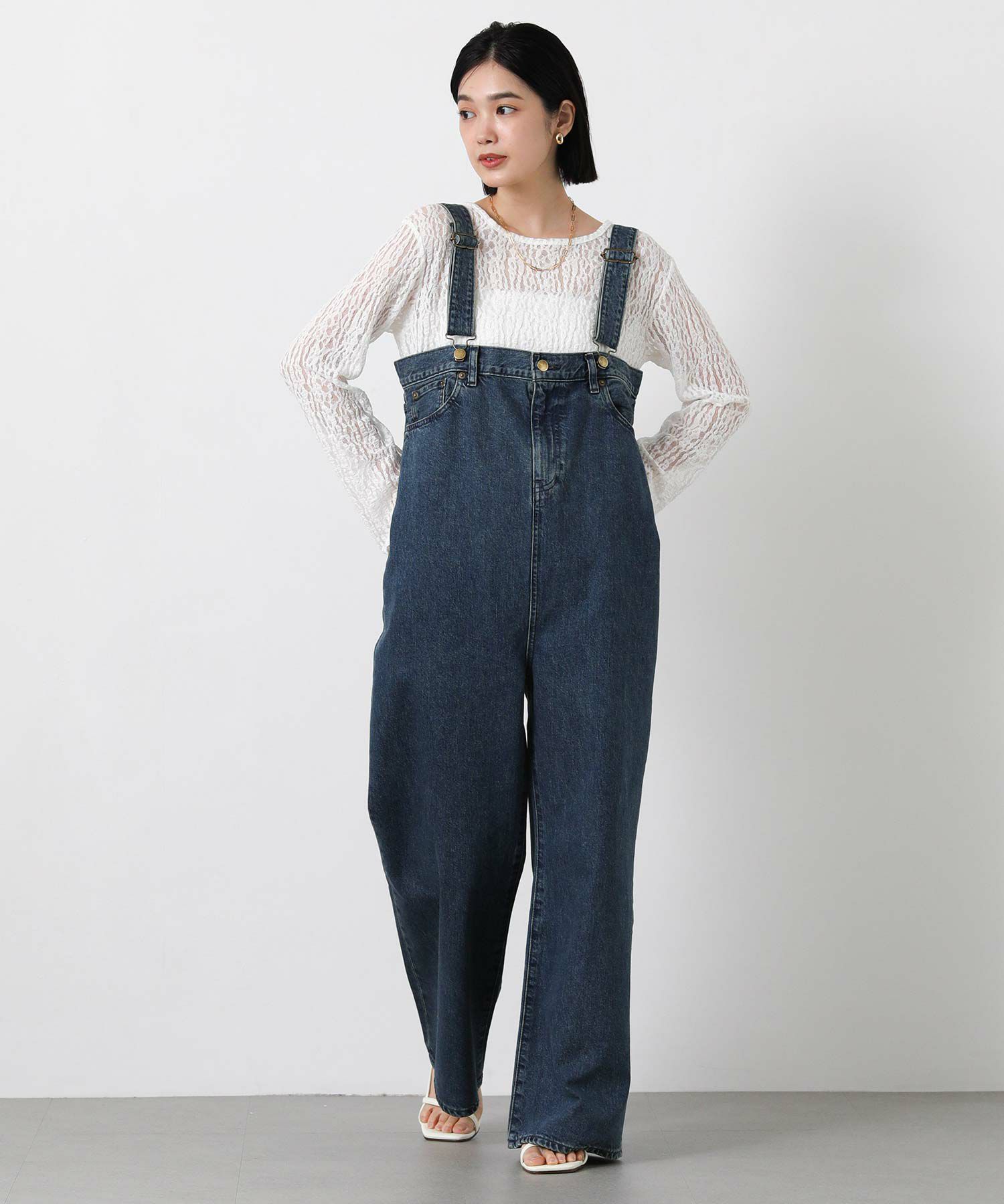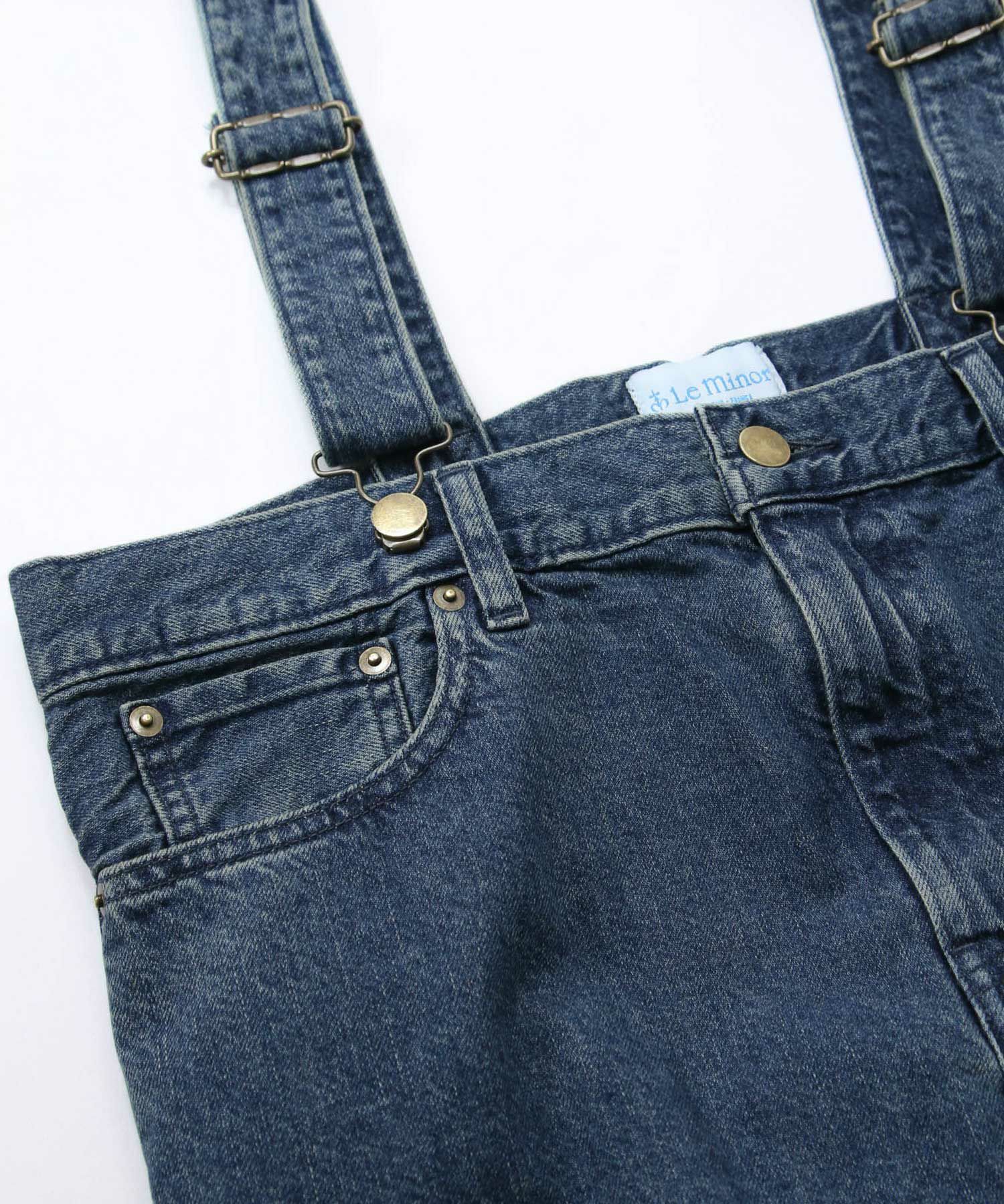 Leminor(ルミノア)のファイブポケットデニムを胸下まで穿いたようなデザインのサロペットをセレクト。
