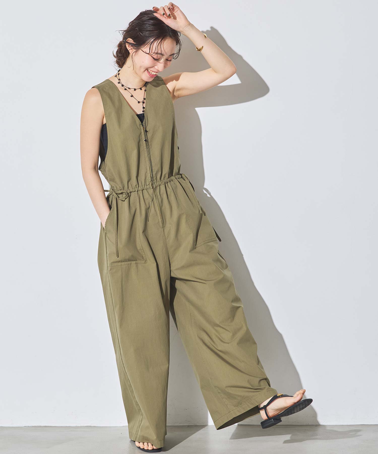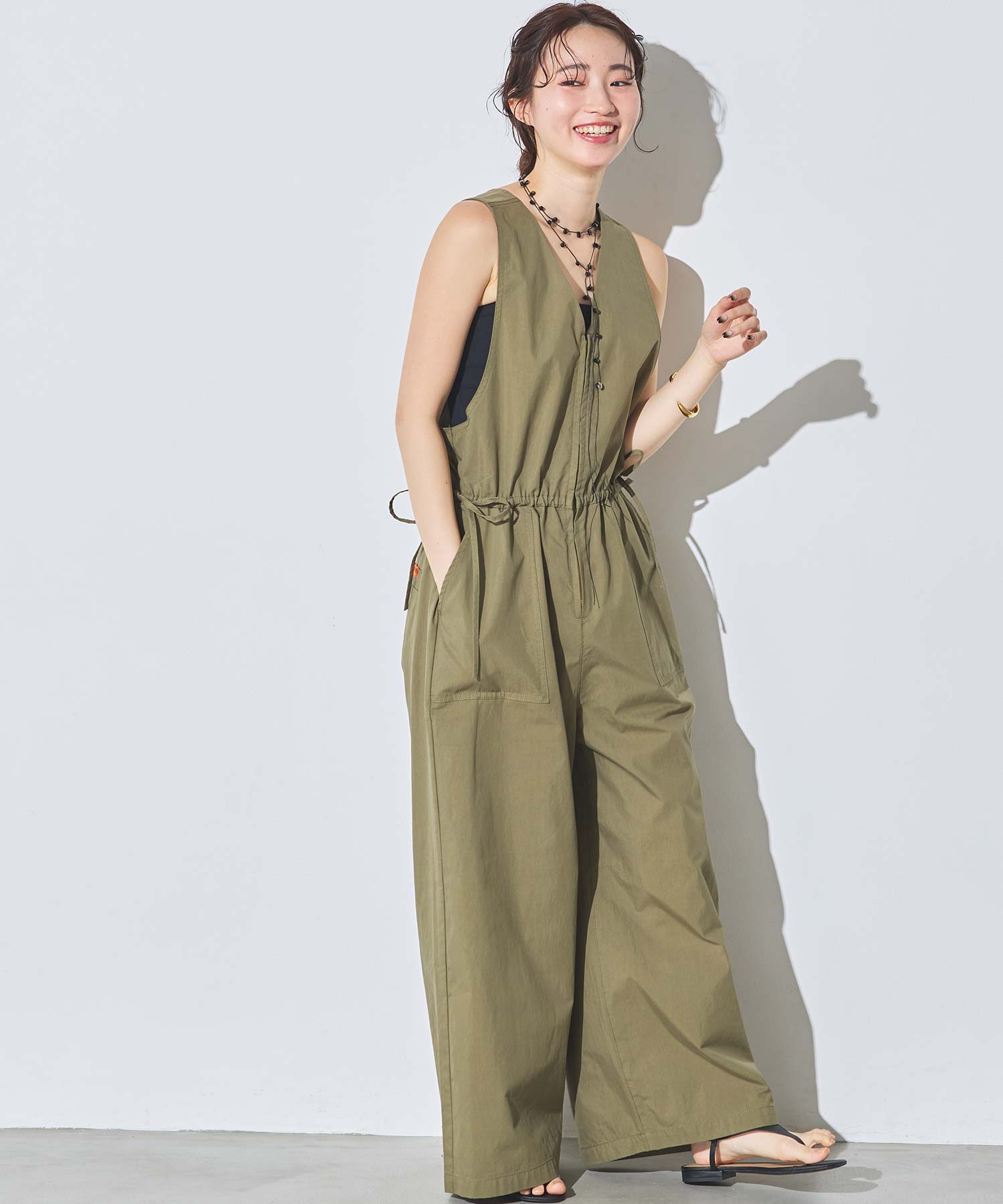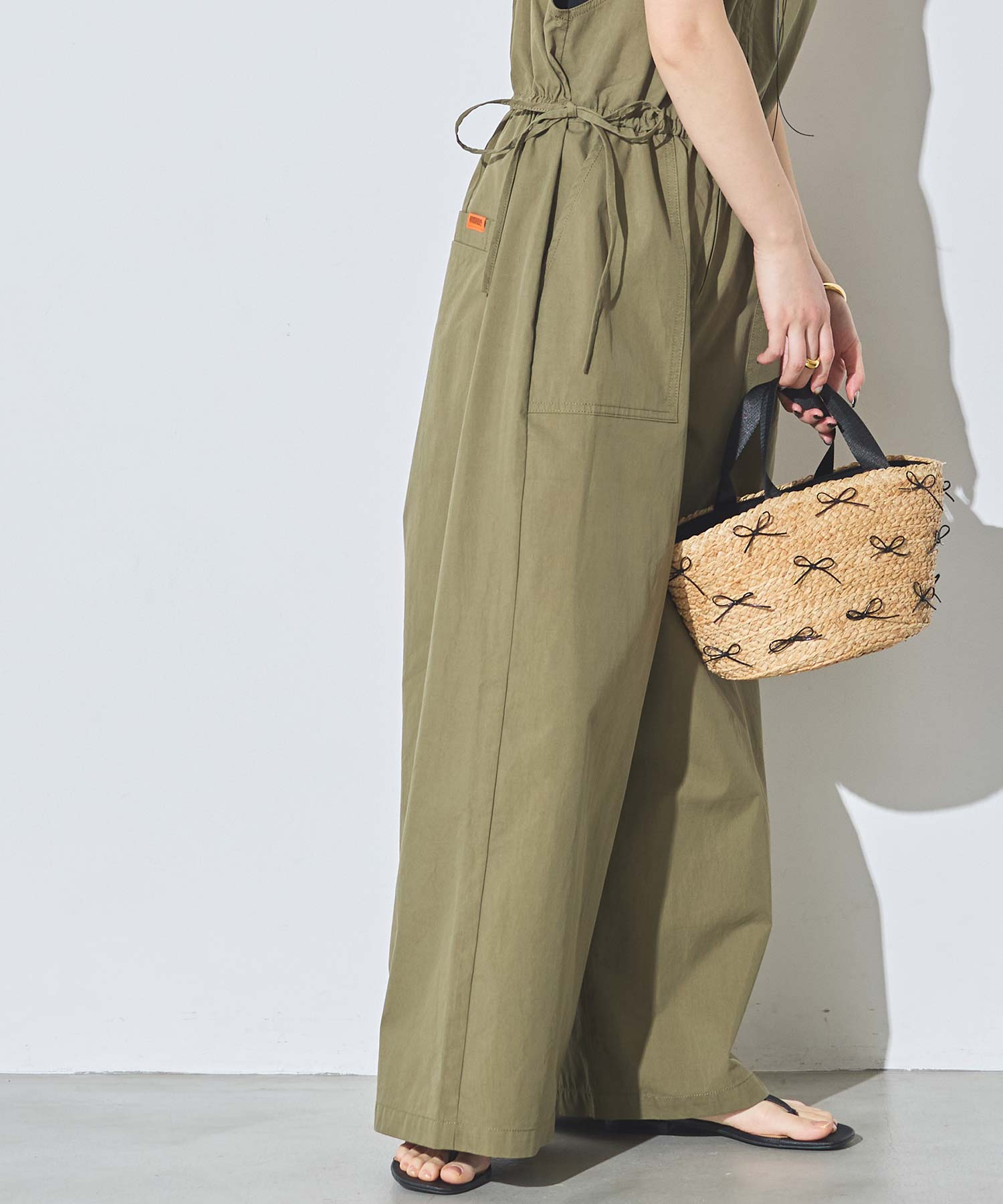 サイドの紐がデザインのアクセントになり、カジュアルながらもフェミニン感を演出。