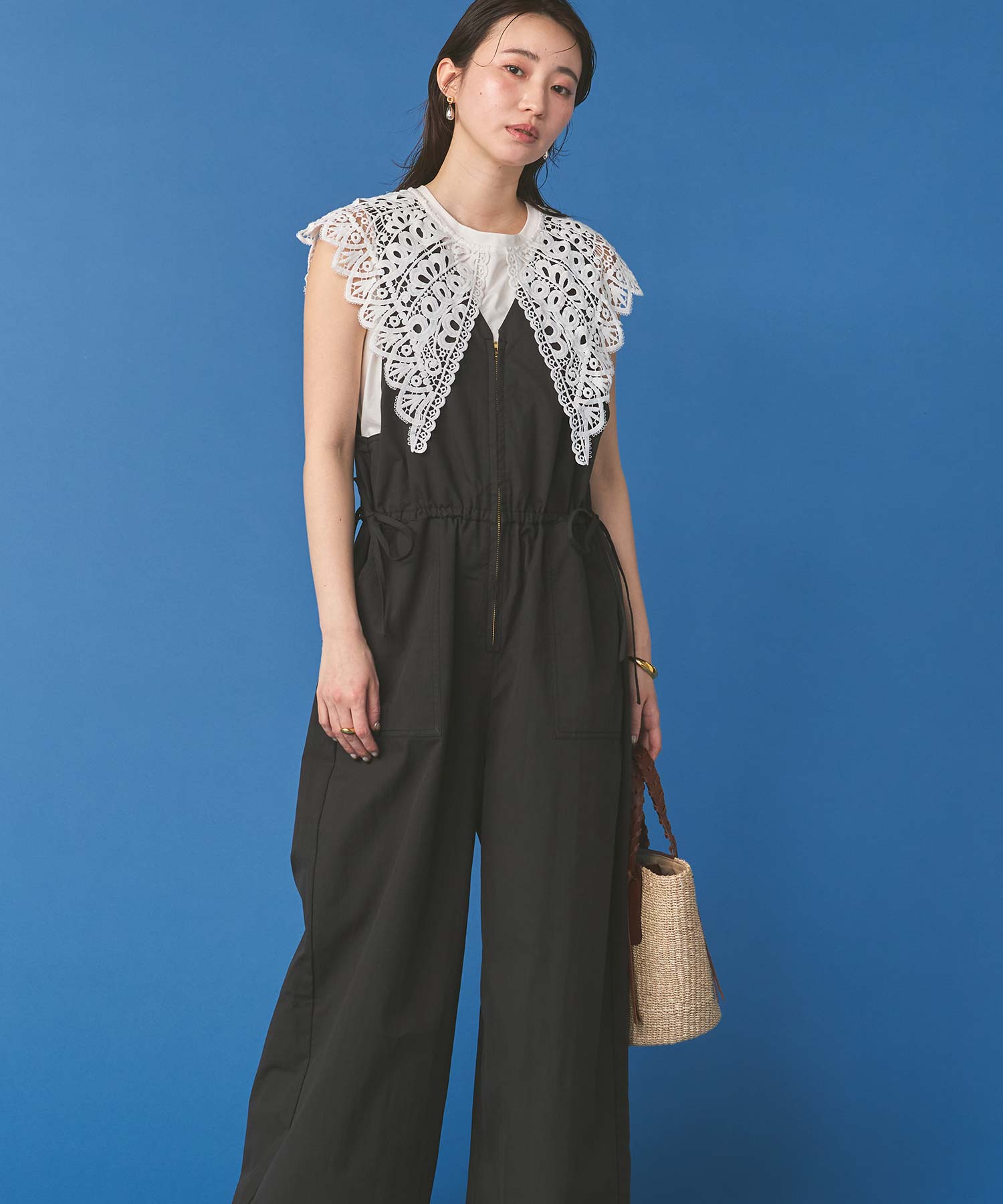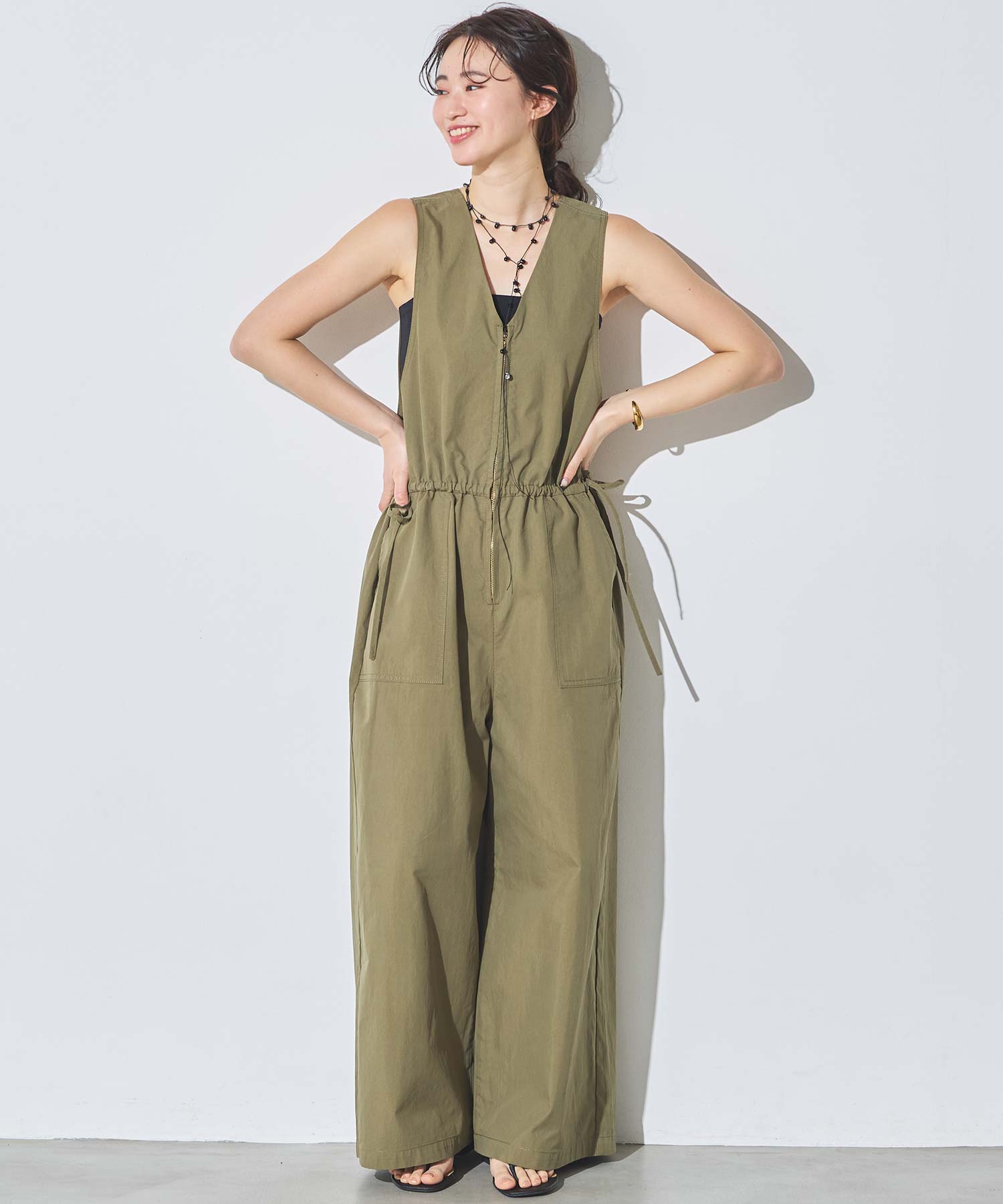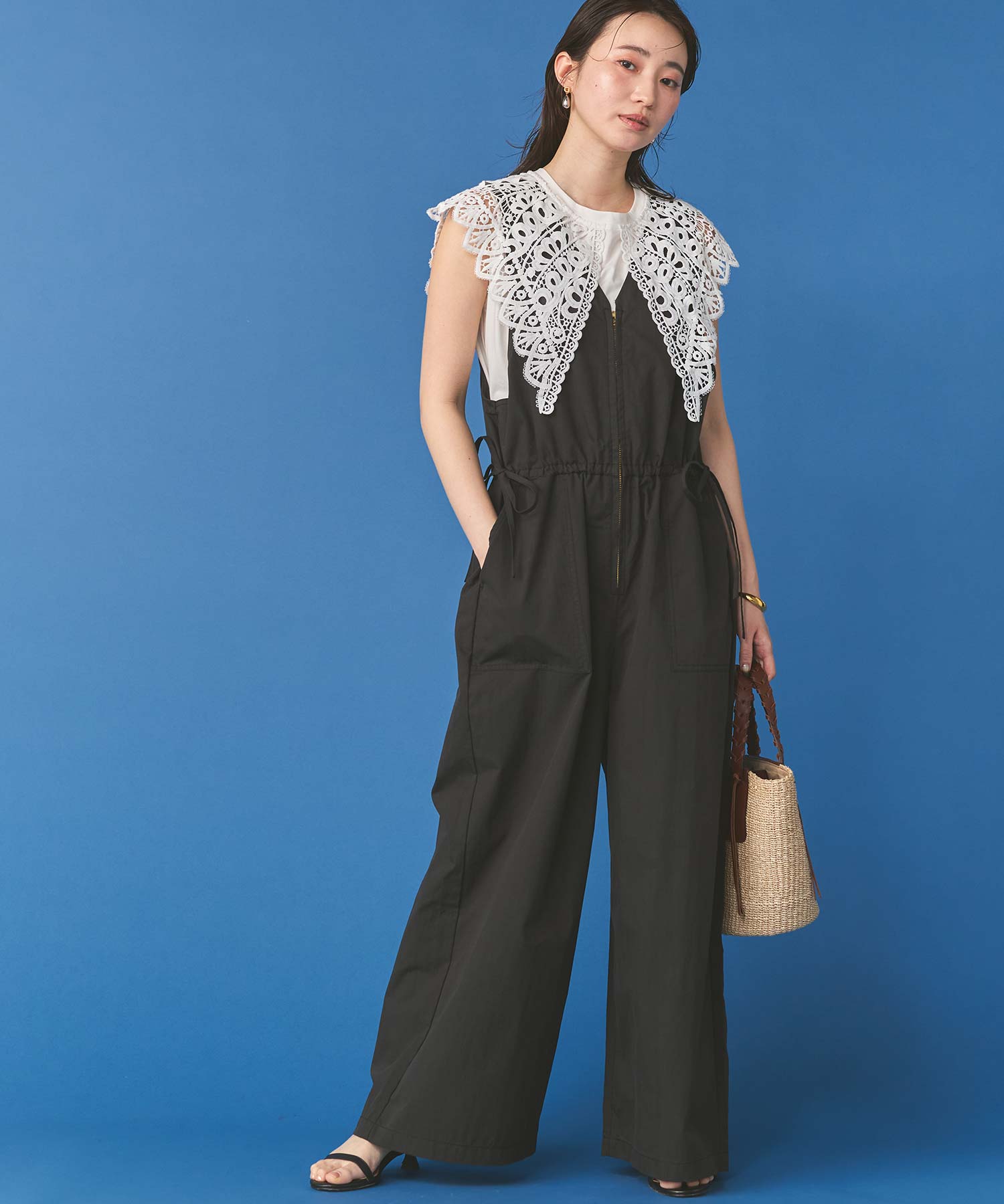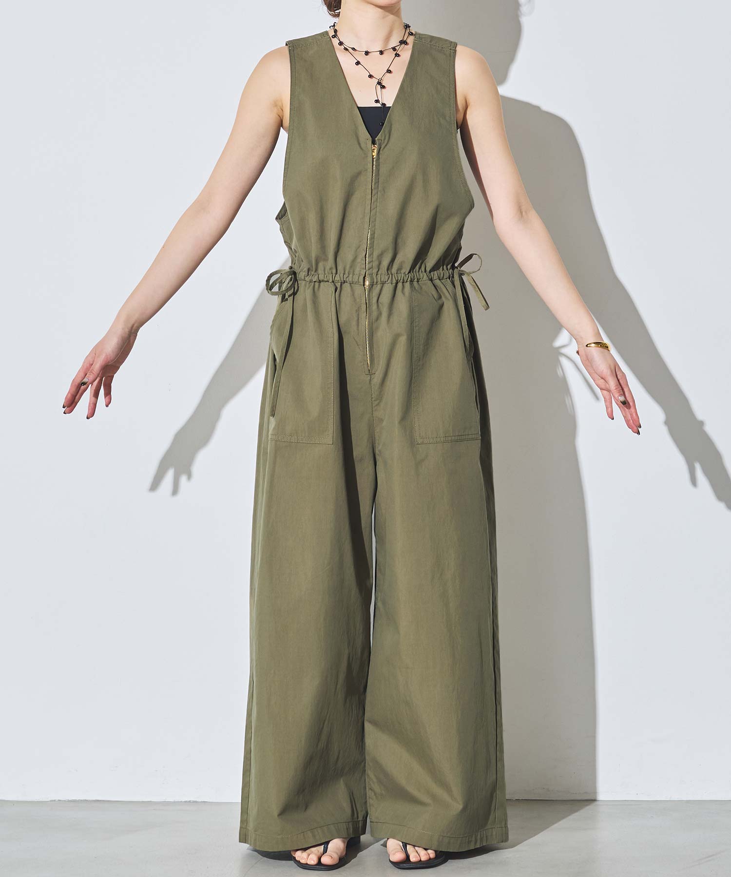 サイドの紐がデザインのアクセントになり、カジュアルながらもフェミニン感を演出。