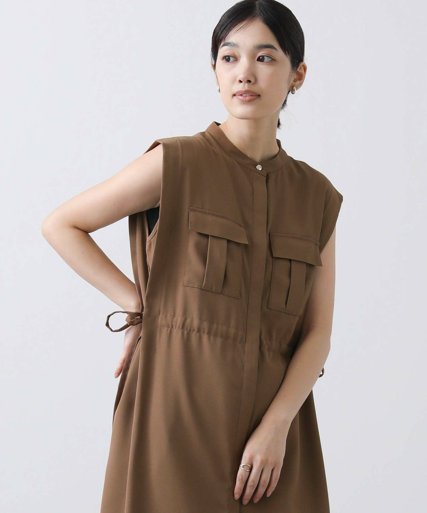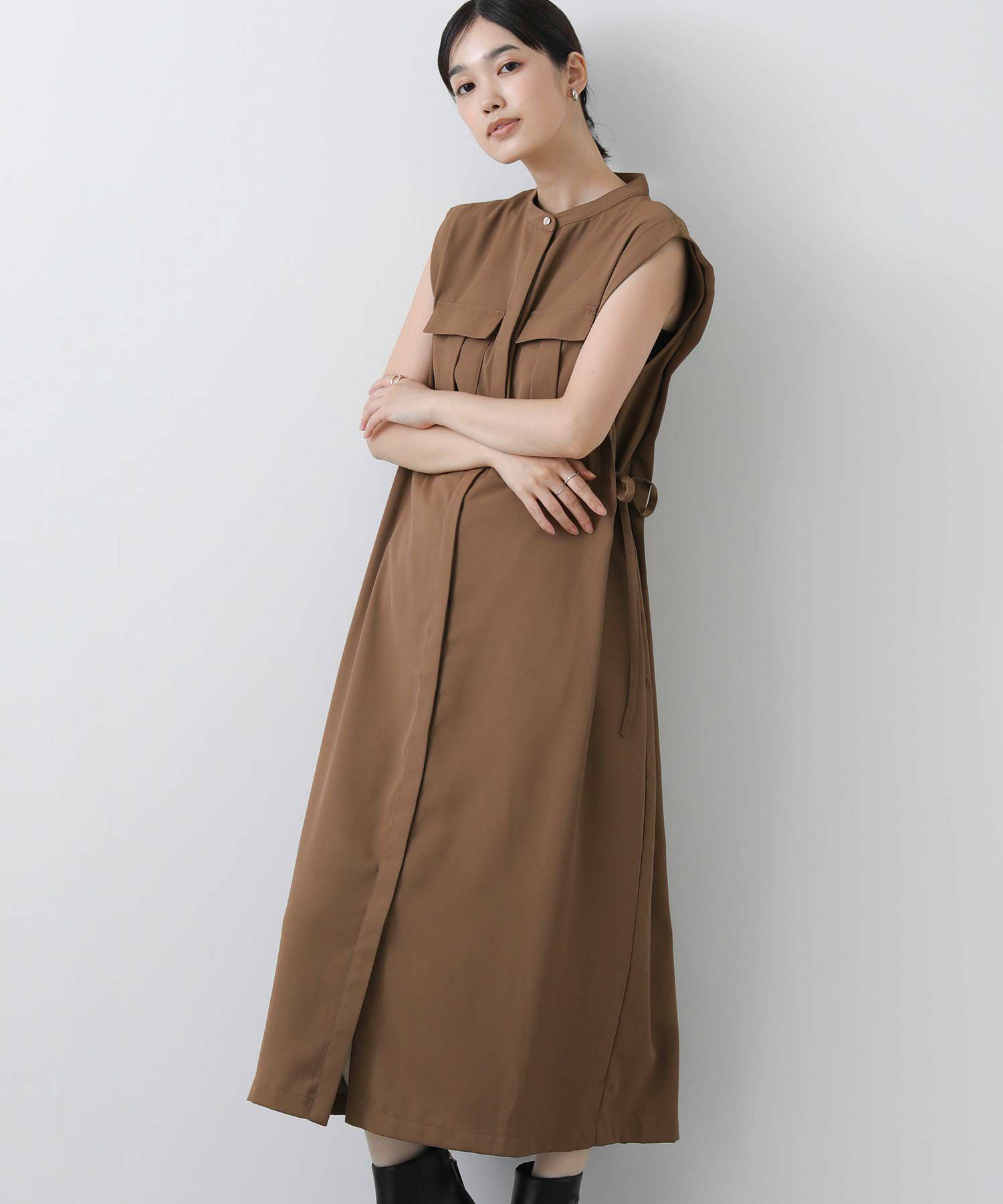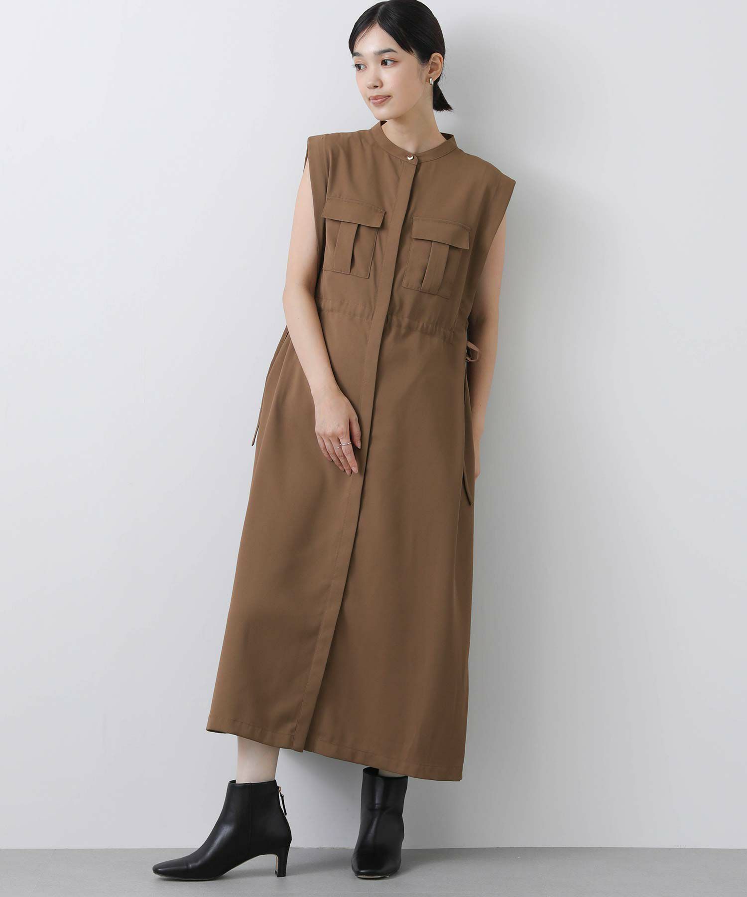 人気のサファリワンピースは、程よい厚みと落ち感の良い素材にアップデートされ、上品な印象に。