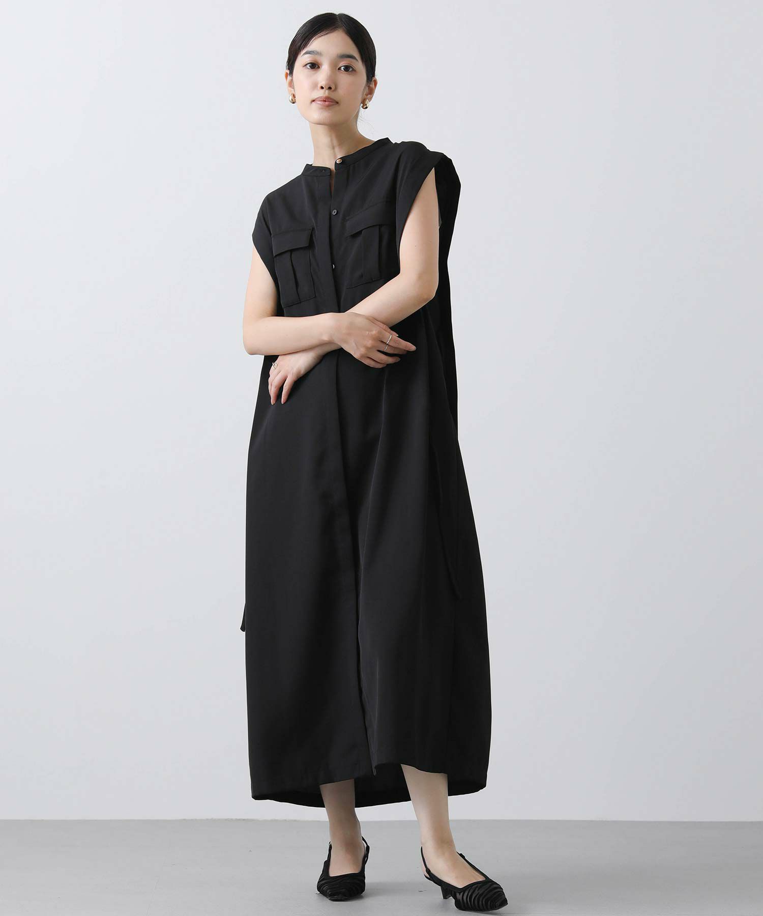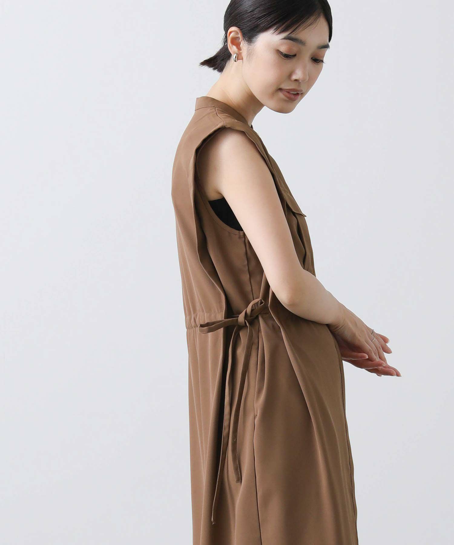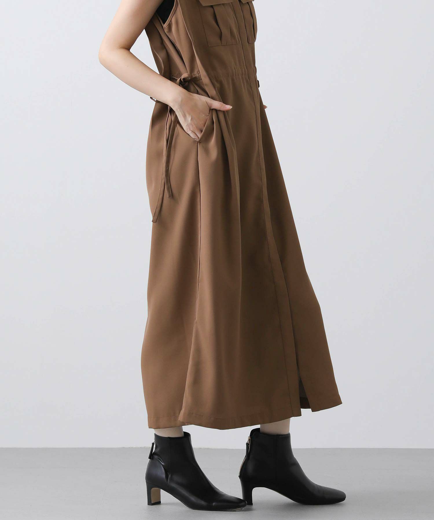 人気のサファリワンピースは、程よい厚みと落ち感の良い素材にアップデートされ、上品な印象に。