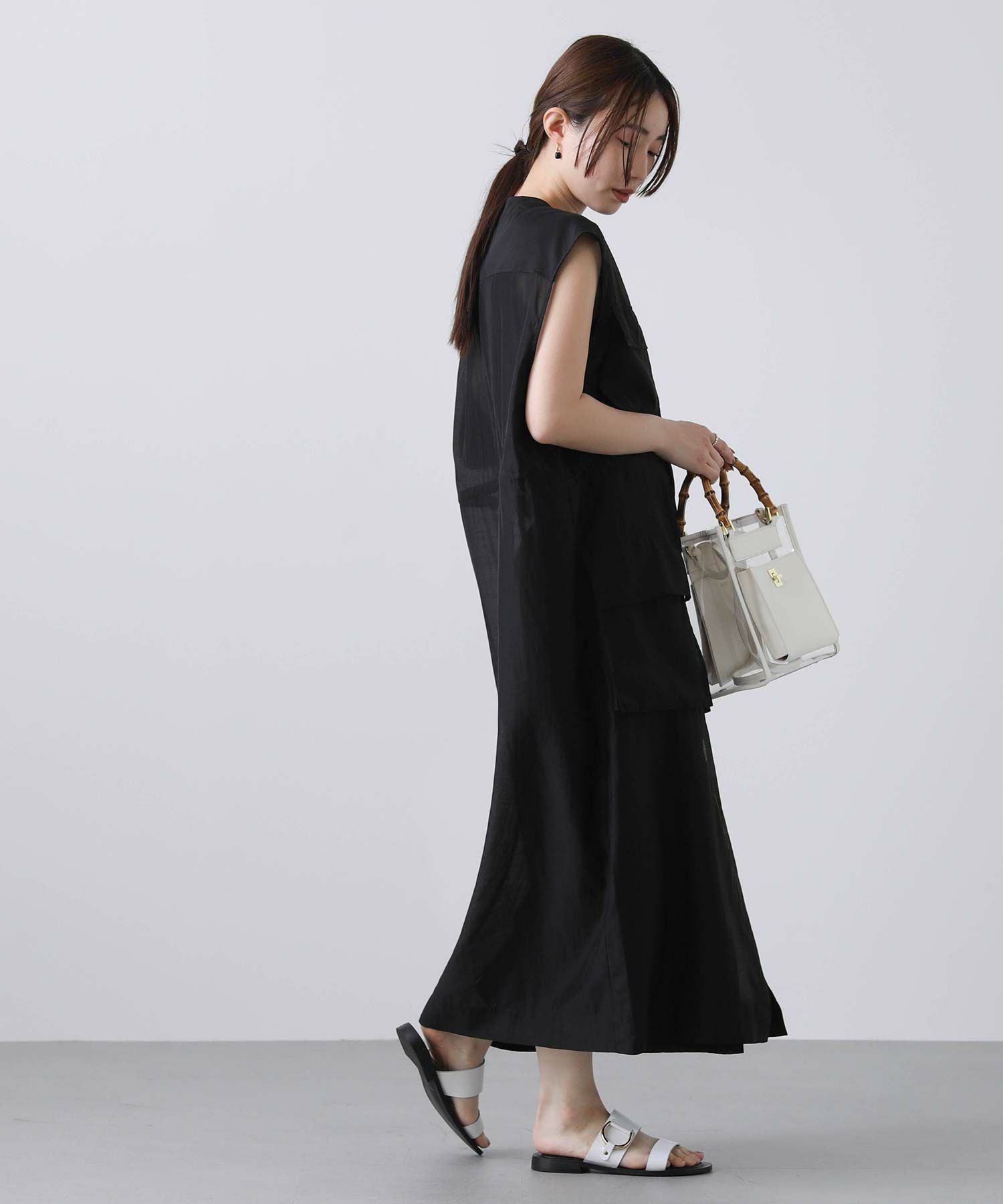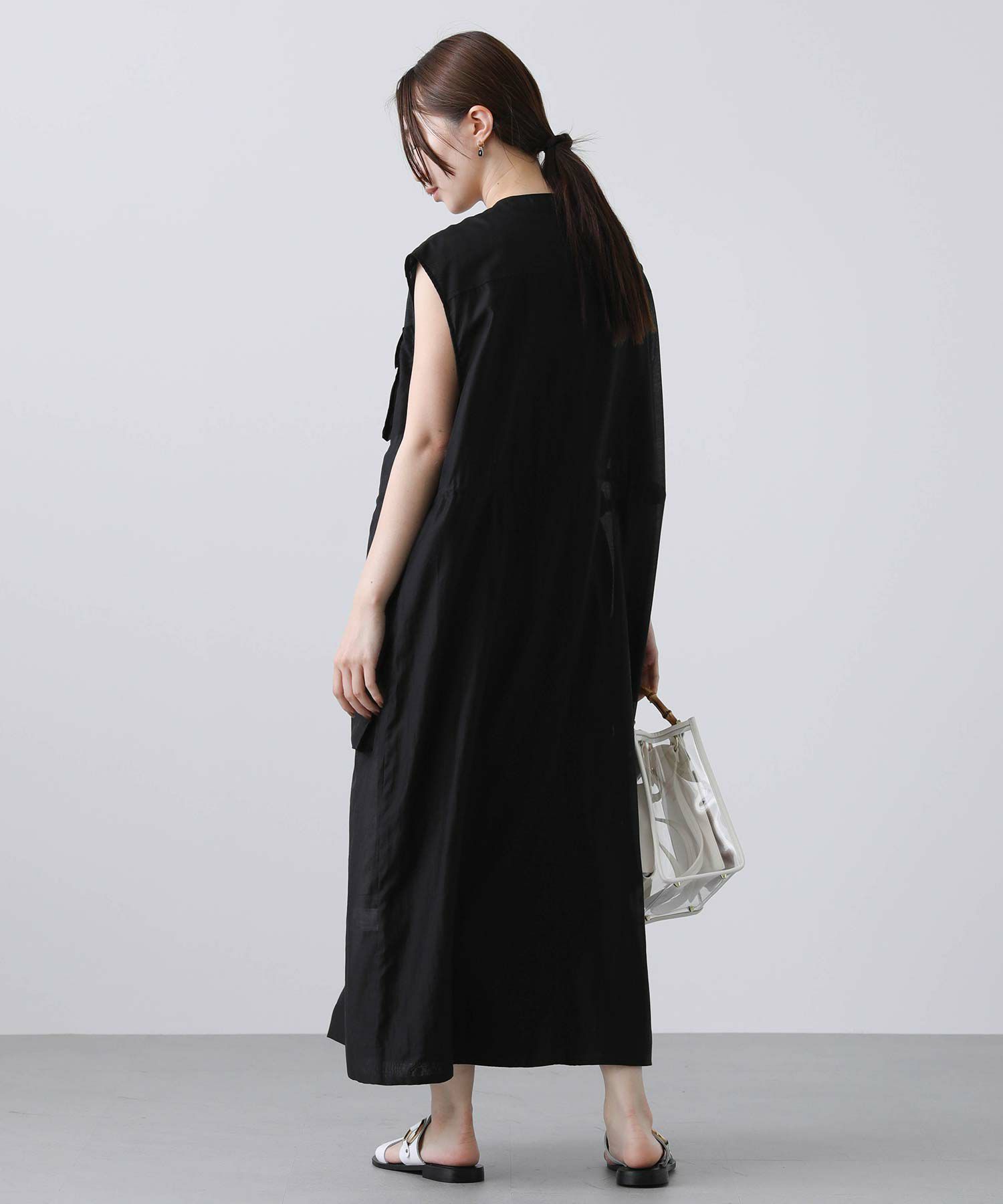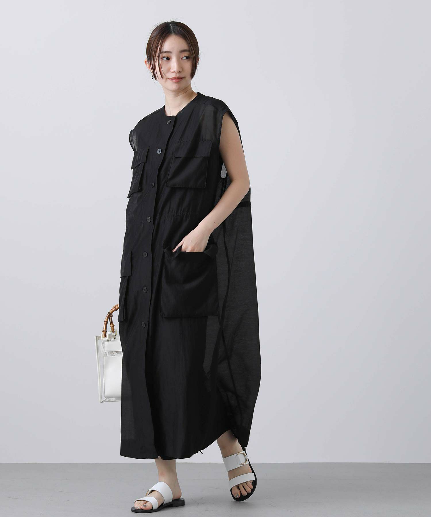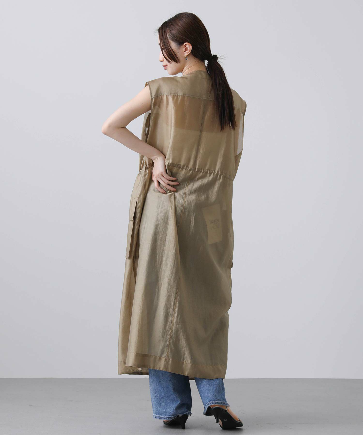 フロントはボタンを留めてワンピースとしても、開けてジレとしても着られます。