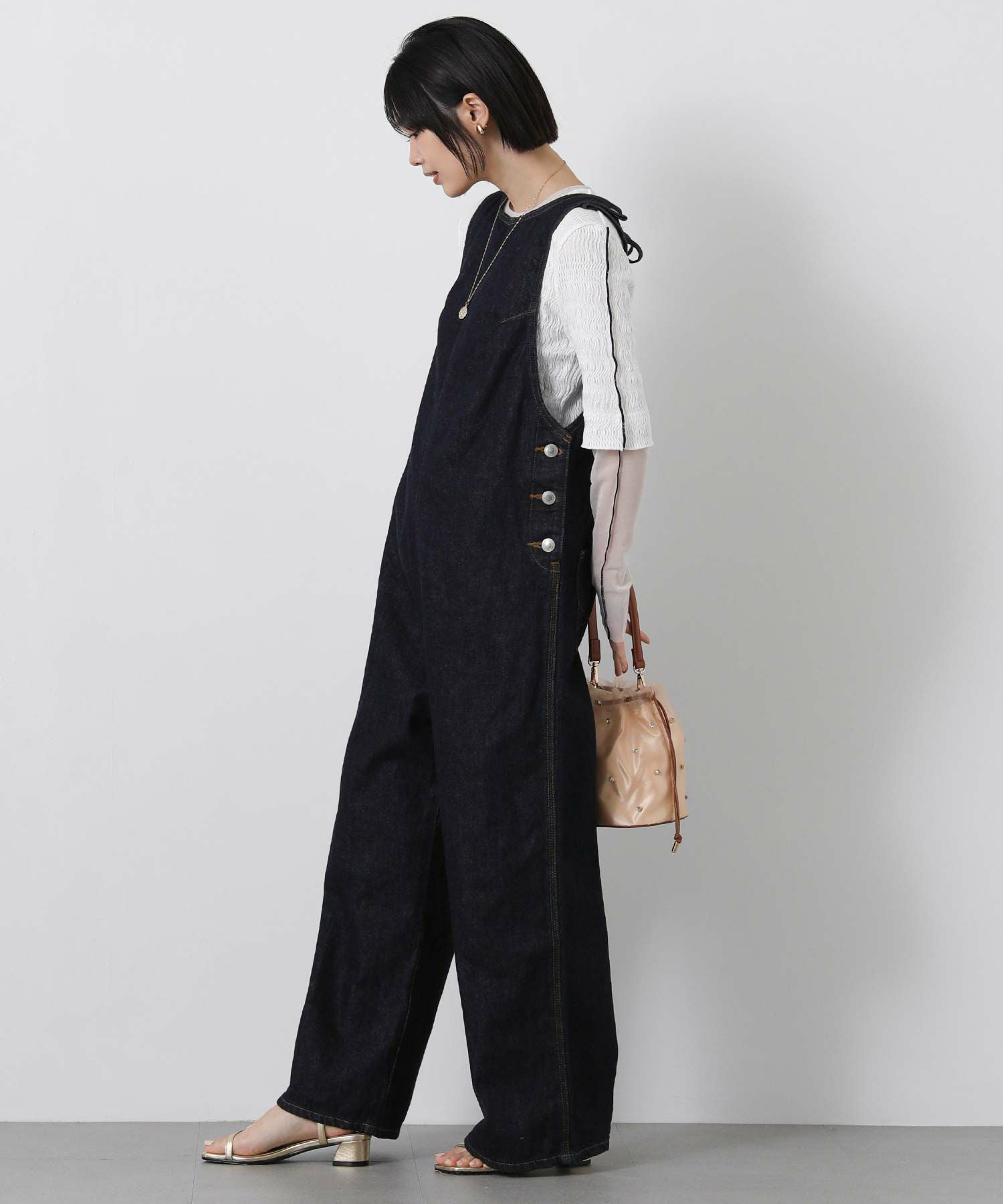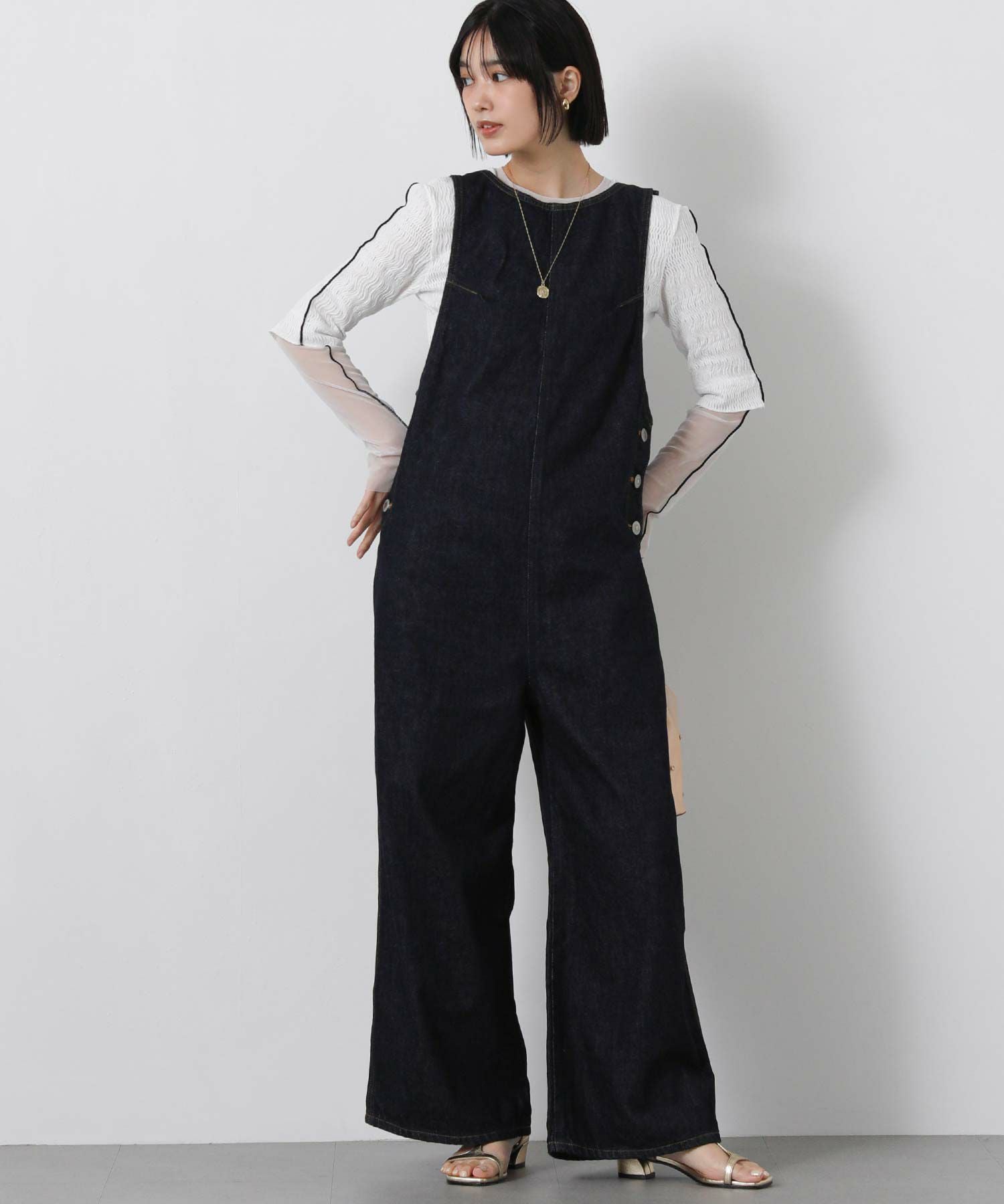 【atelierSOMETHINGアトリエサムシング】から、洗練されたシルエットが特徴の大人なアメスリオールインワンをセレクト。
