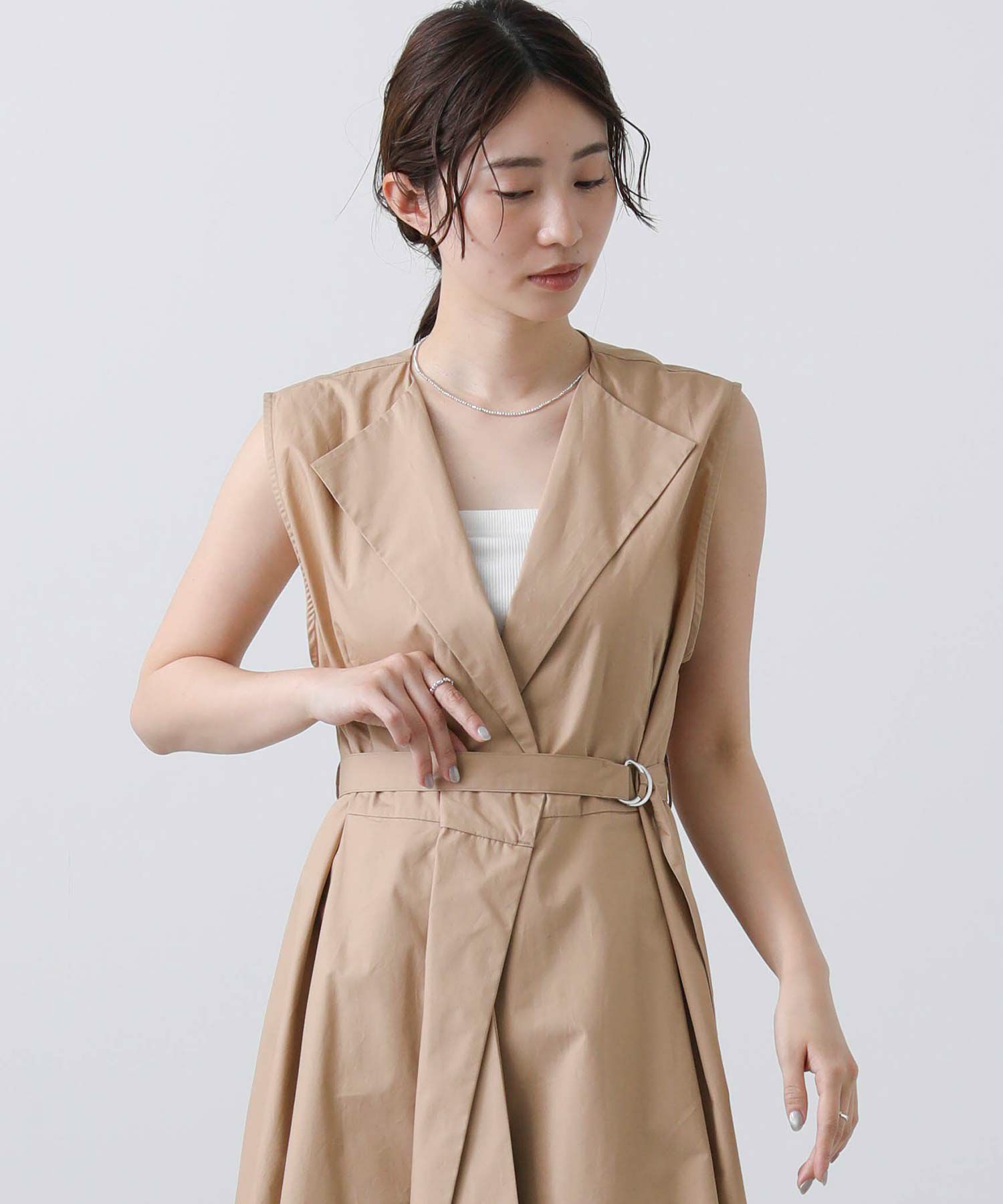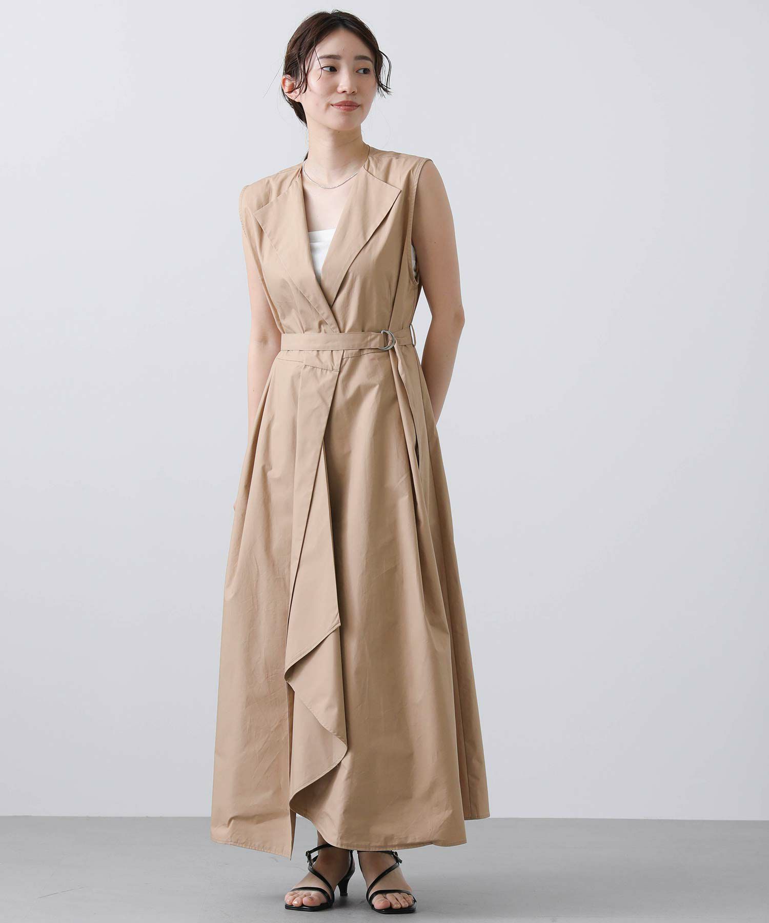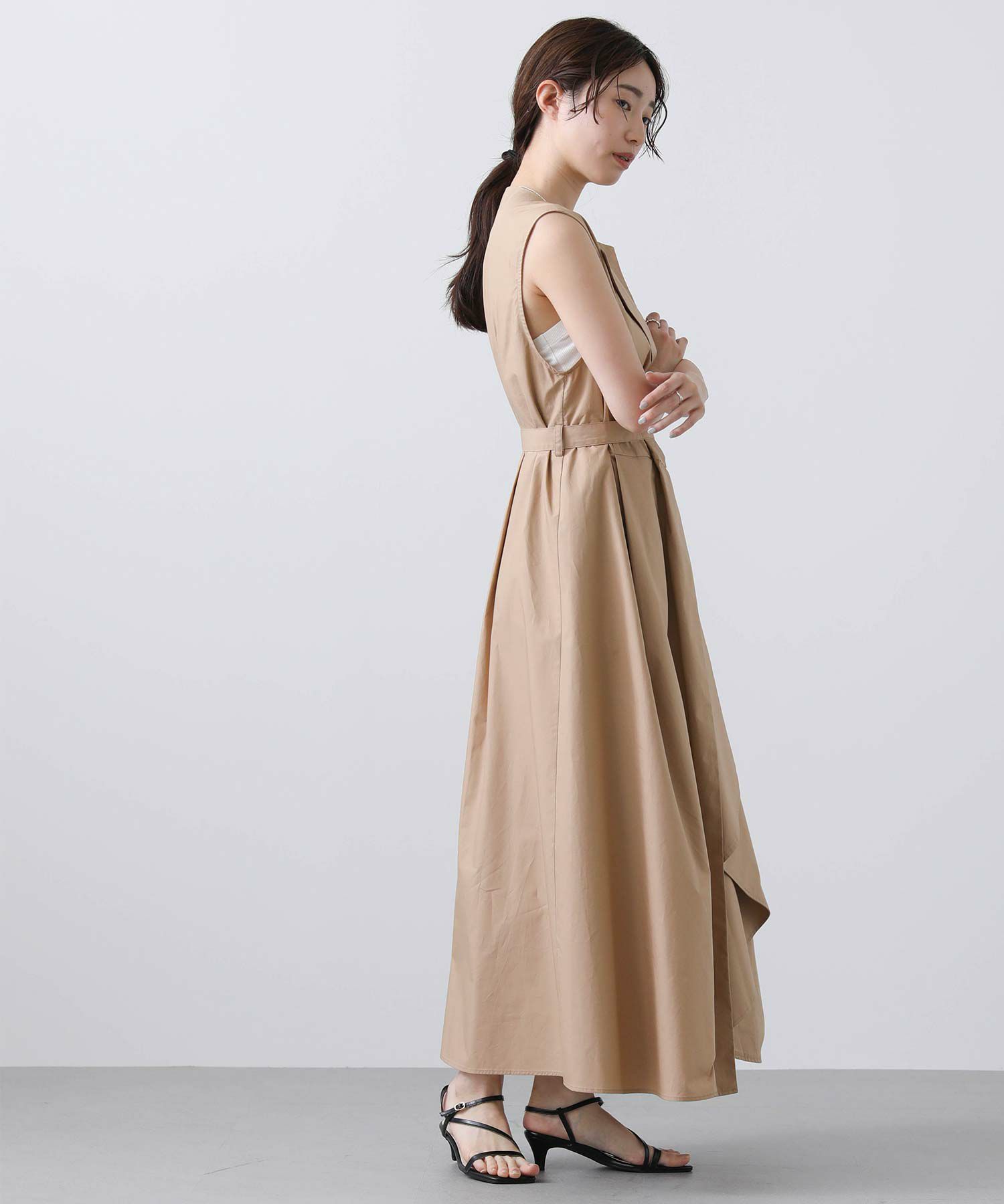長めの細ベルトがウエスト位置を高く見せ、よりスタイルアップを叶えてくれます。