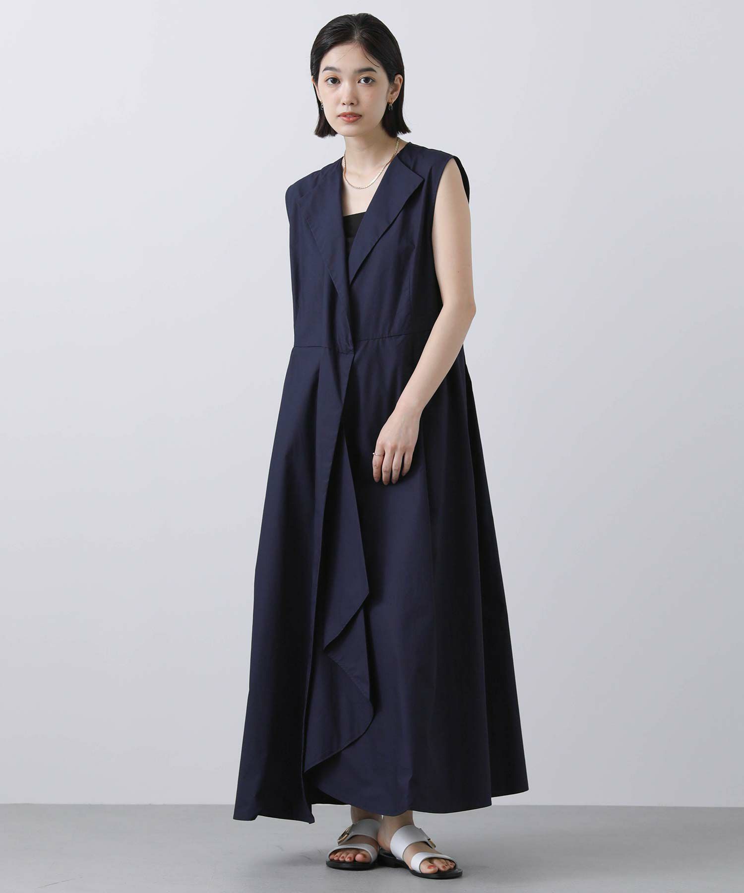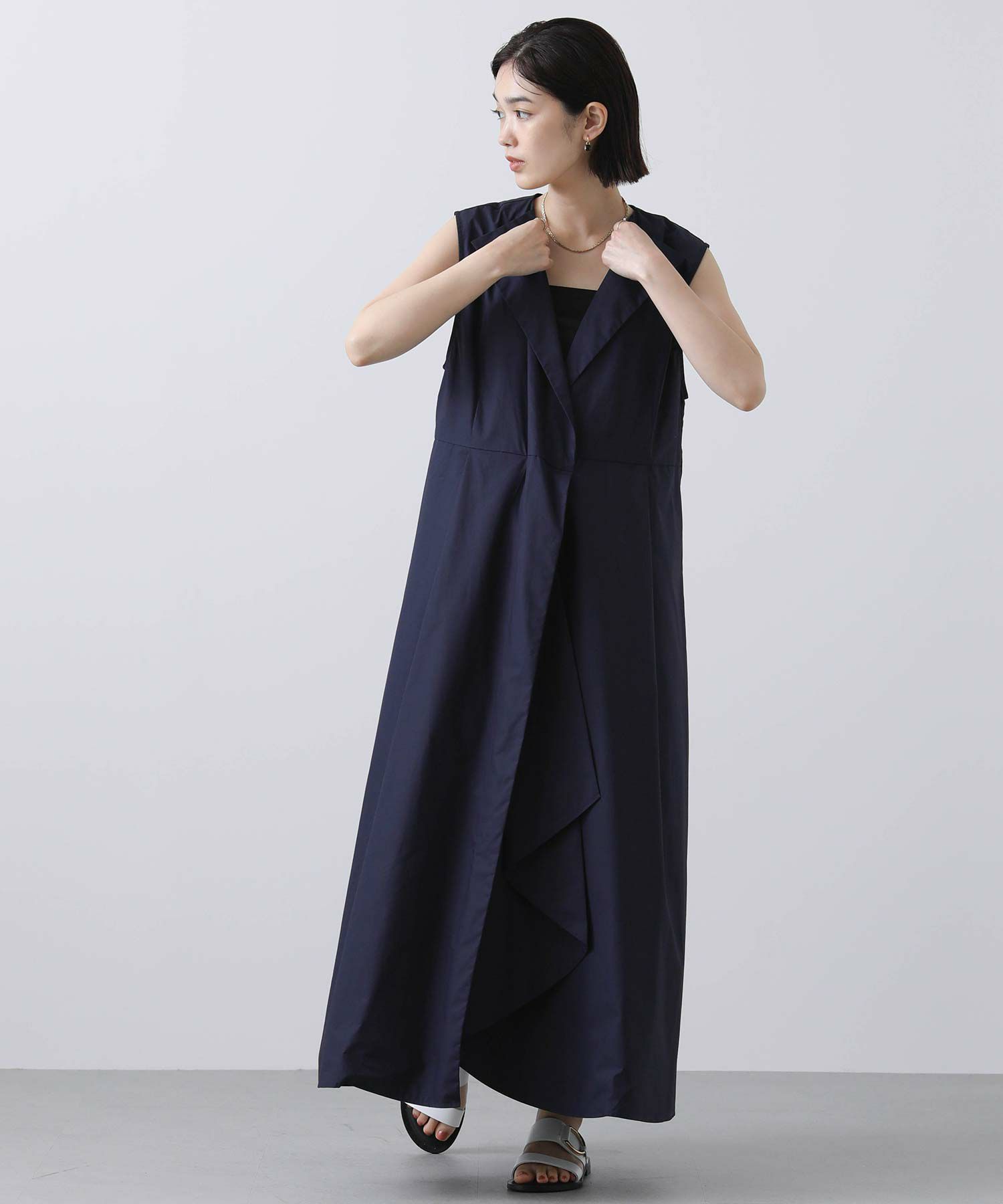 s.CアシメタックヘムV衿ワンピース