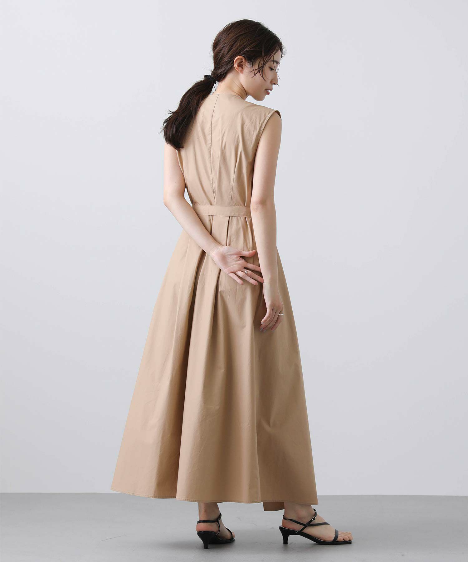 ウエストラインからタックを入れることで洗練された細見えのシルエットに◎