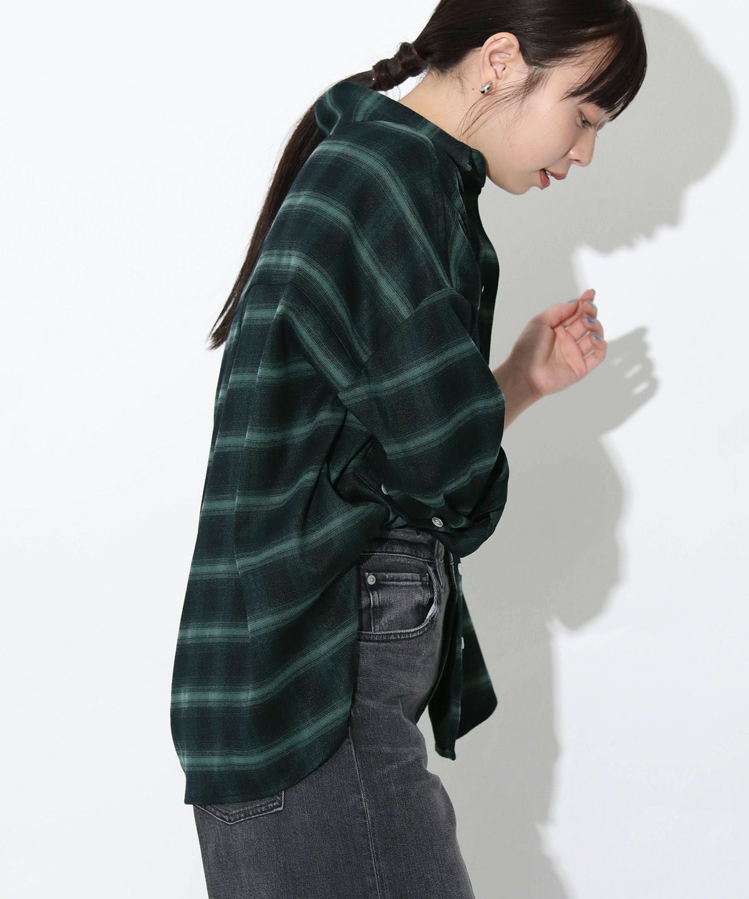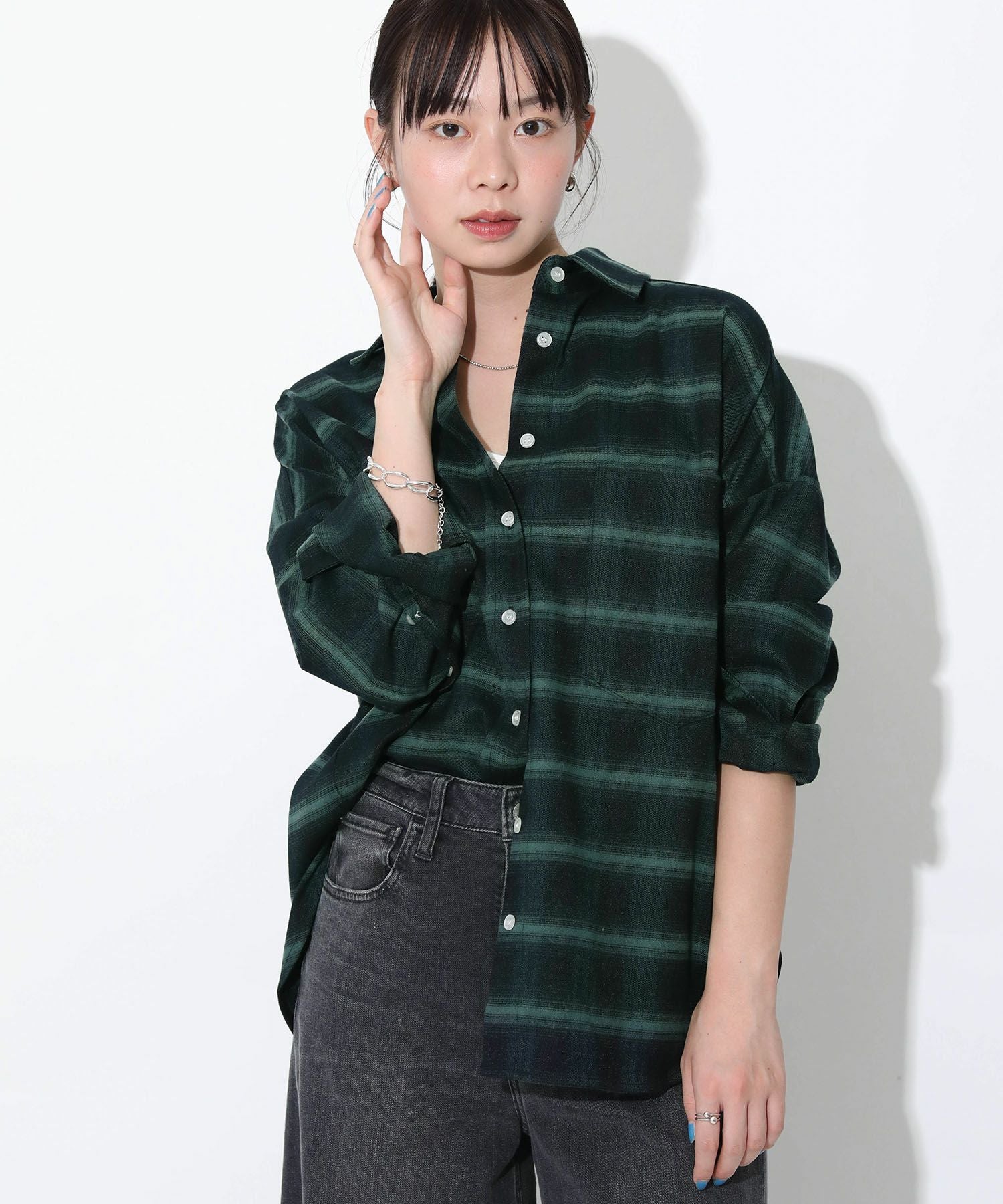 シーズンレスで活躍するオンブレチェック柄シャツ。