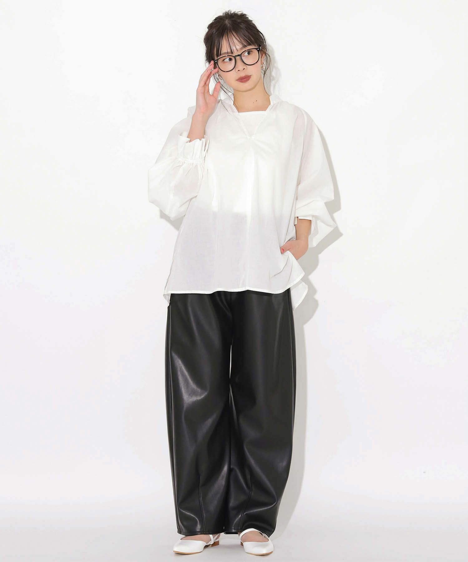ふんわりとしたシルエットが魅力のエアリーギャザーブラウス。