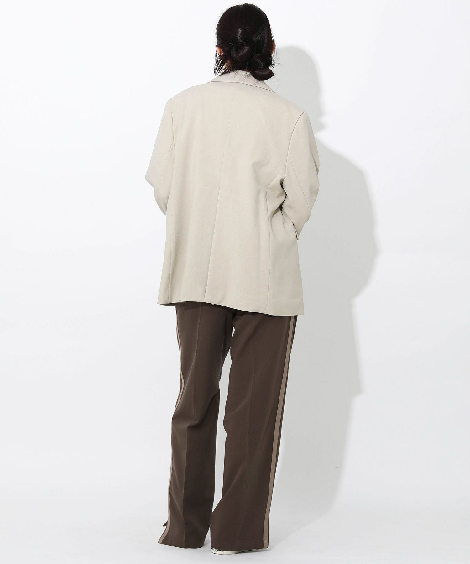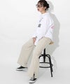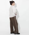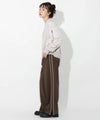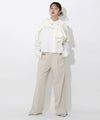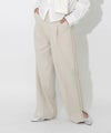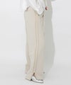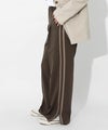 程よいルーズ感とトレンド感があり、動くたびに広がる美脚シルエットが魅力的です。サイドに施されたラインがスタイルアップを助け、脚長効果も期待できます。裾サイドにはスリットが入っており、低身長から高身長まで幅広く着用できます。ウエストはバックゴム仕様で、リラックスしたフィット感を提供。スポーティー過ぎないようフロントはベルトホールを施し、スラックスのようなシルエットに。