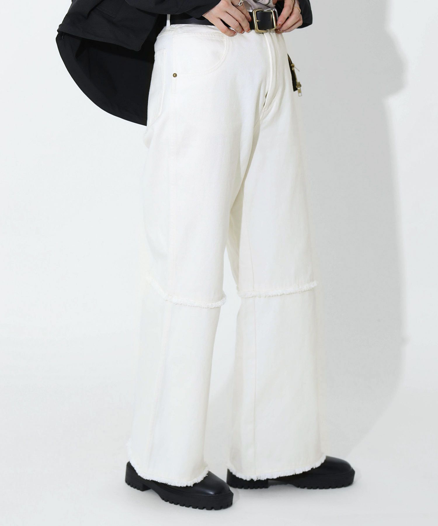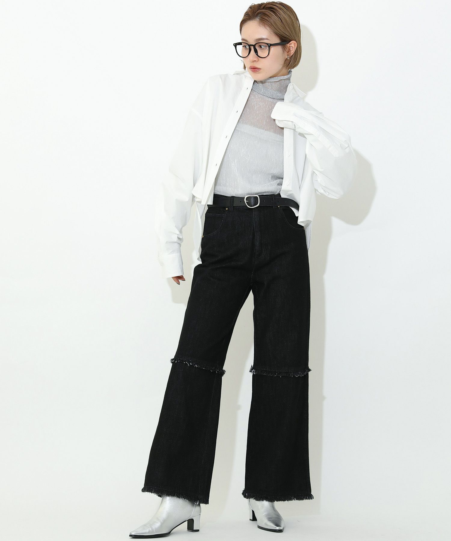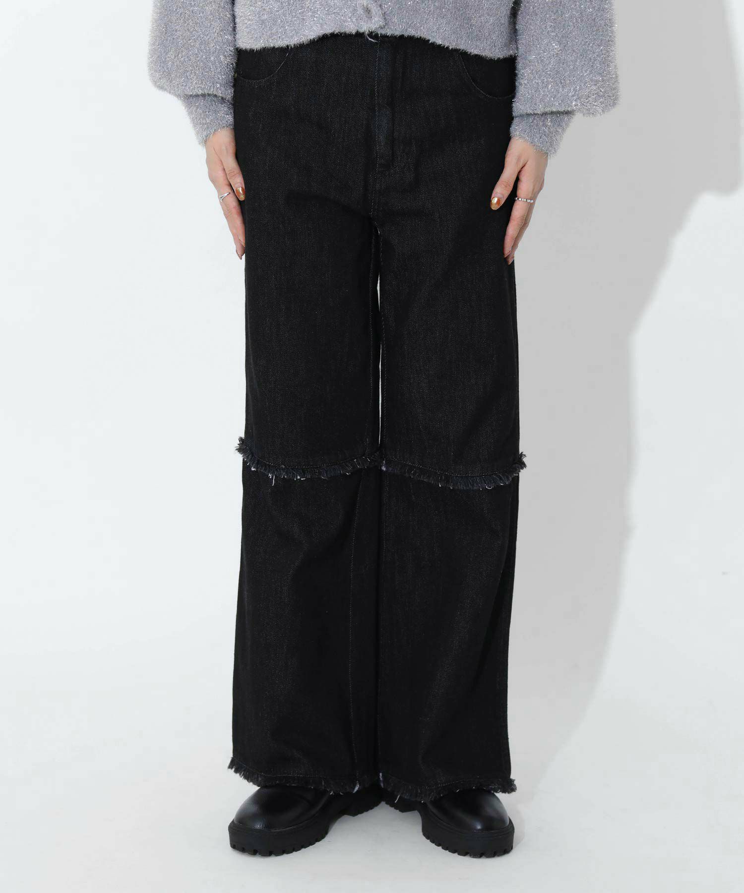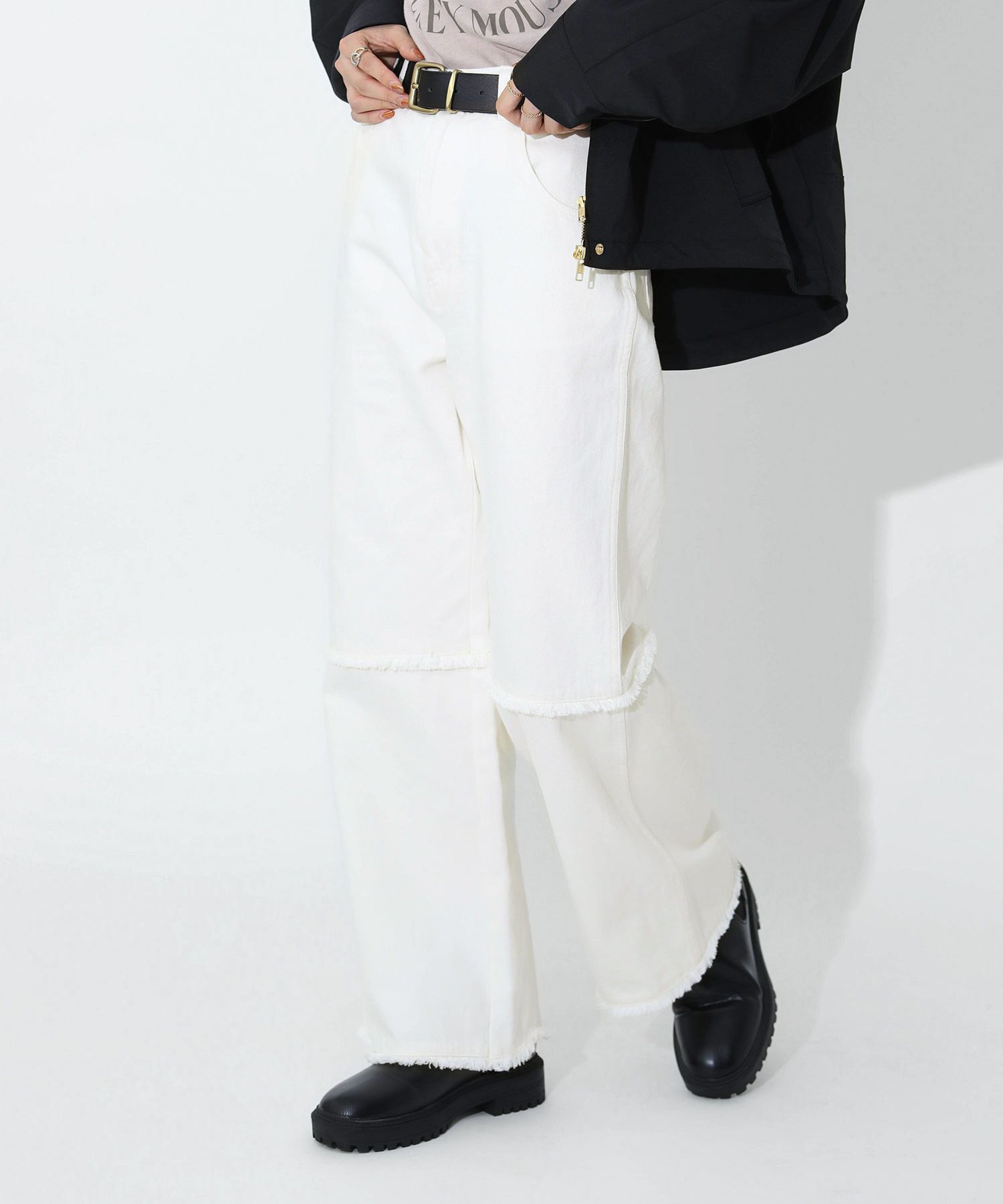 膝と裾のフリンジでカジュアルな抜け感をプラス。同色ステッチでクリーンな印象に仕上げました。定番カラーで着回し力抜群のワードローブに欠かせないアイテムです。