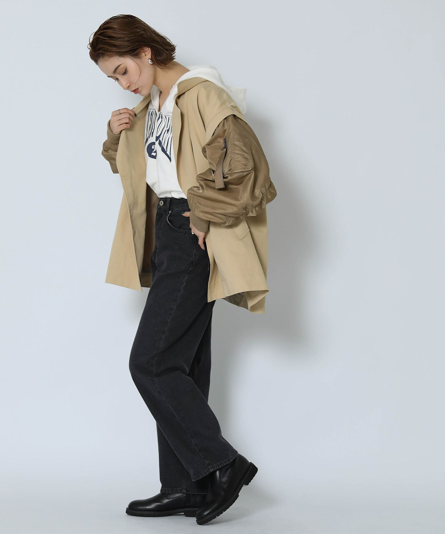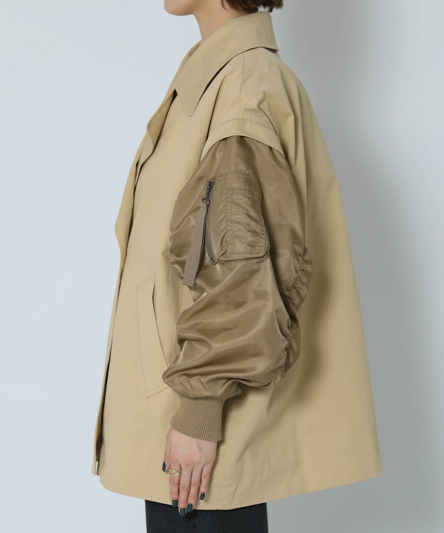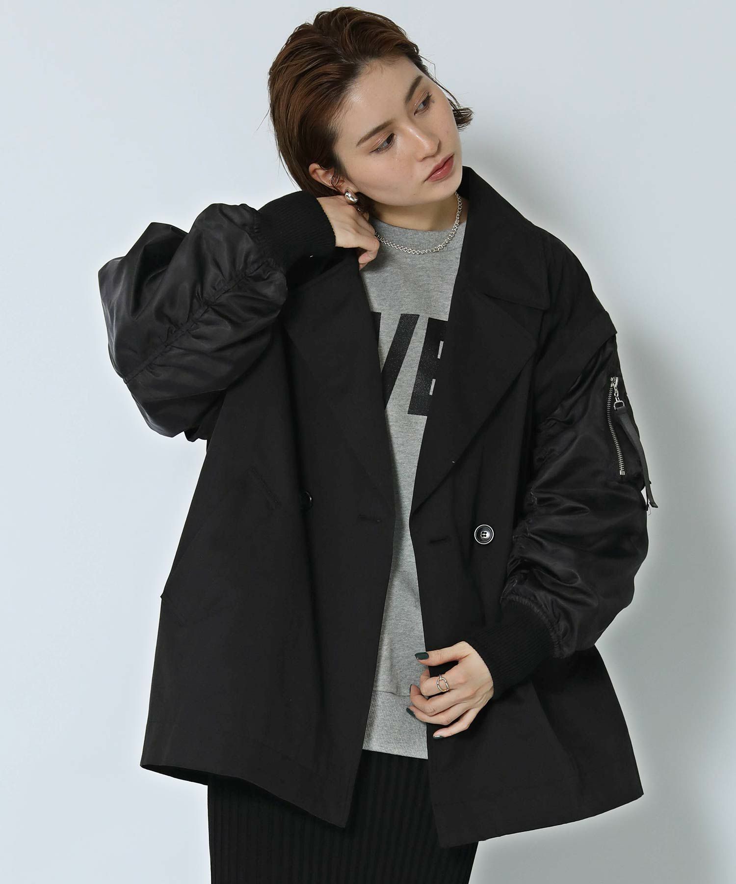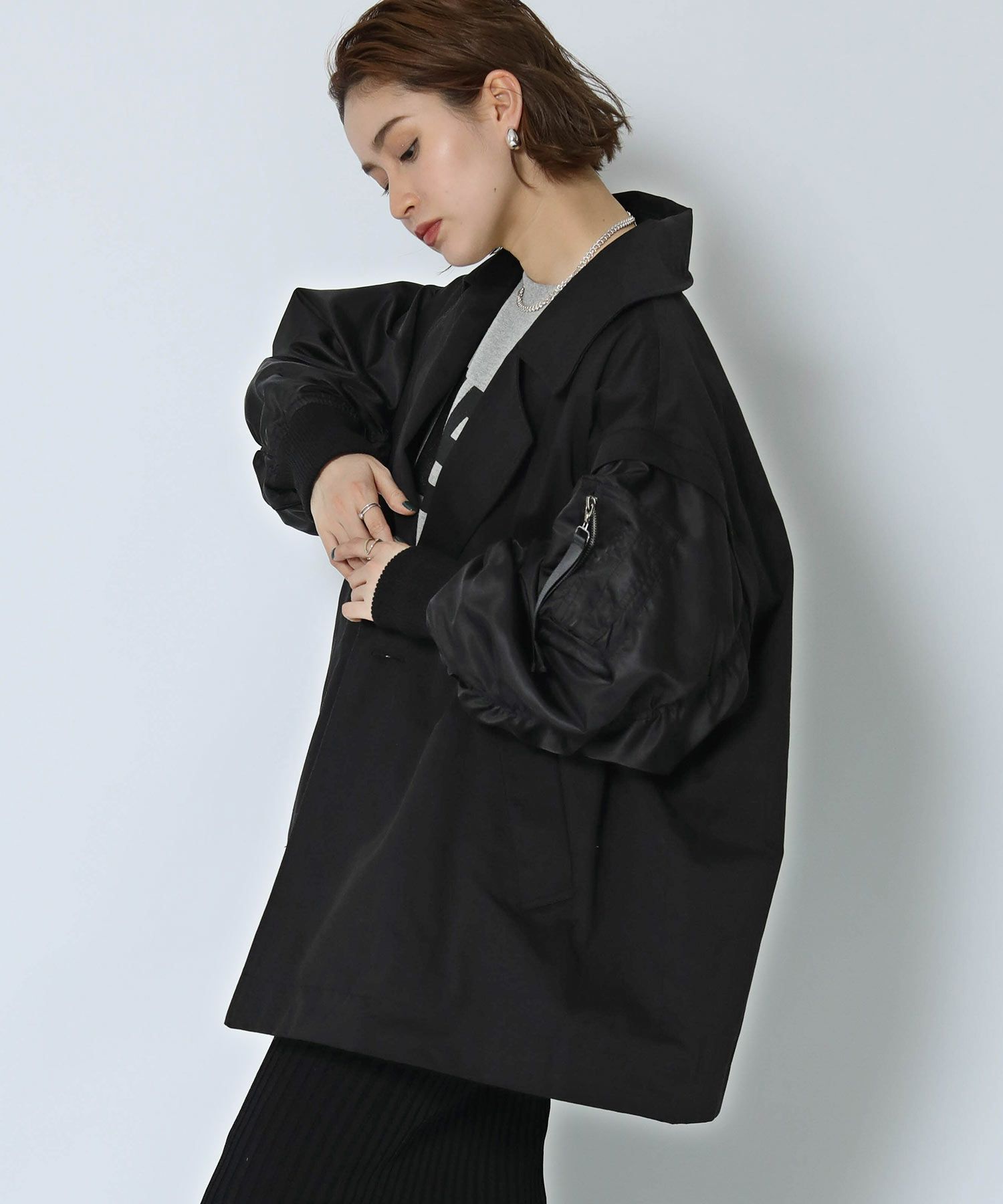 MA-1の袖をドッキングしたデザインが特徴のミドル丈コート。