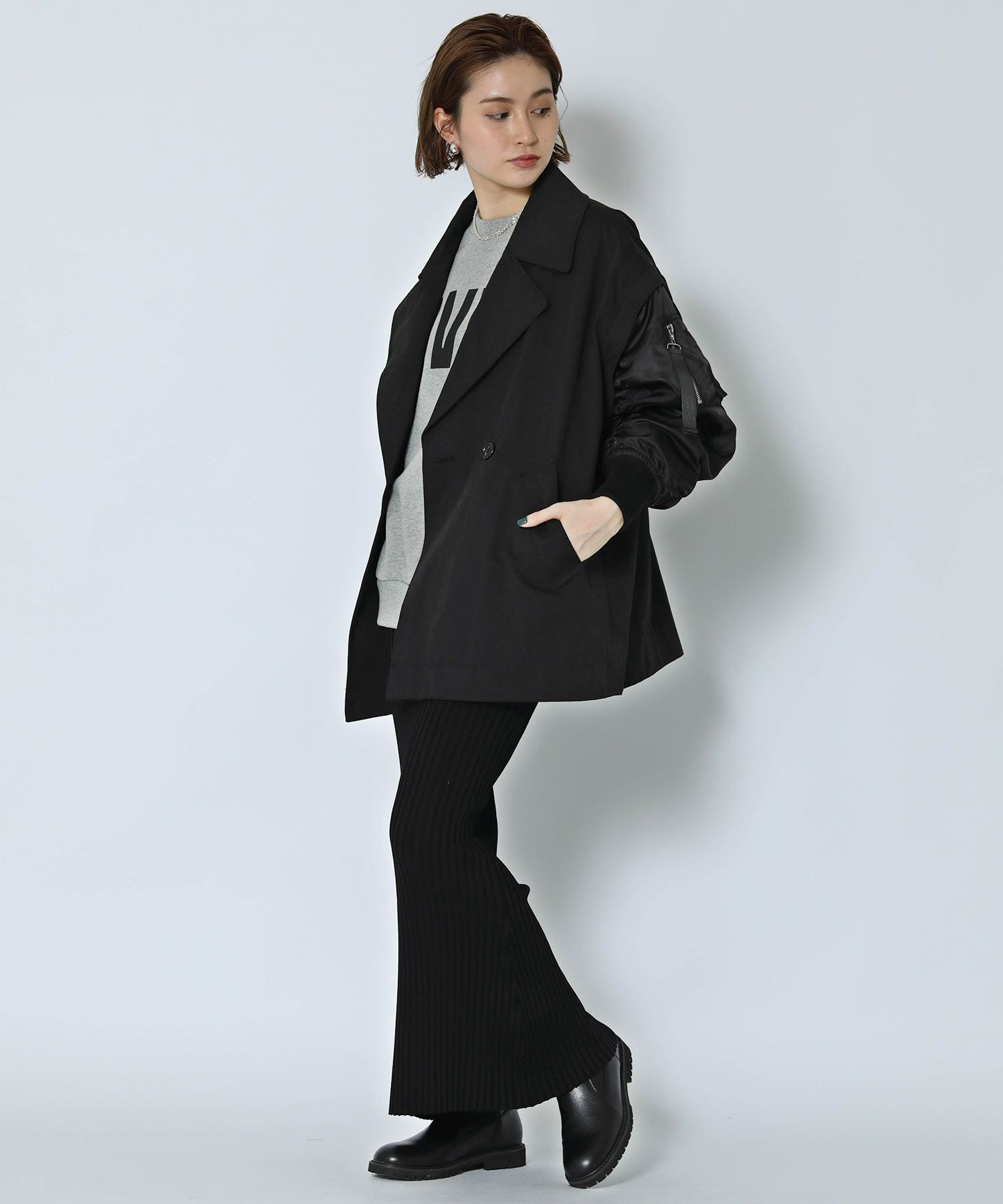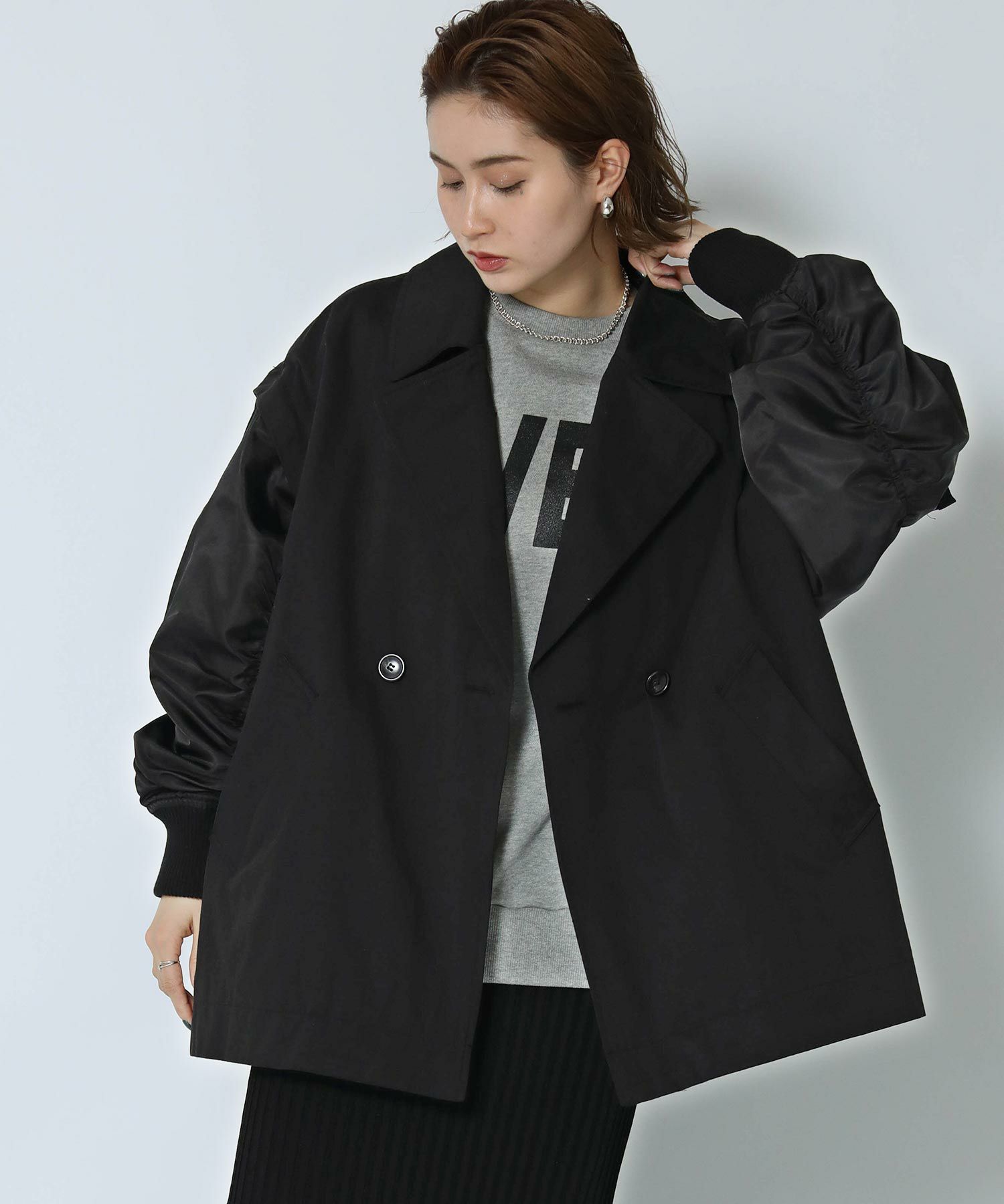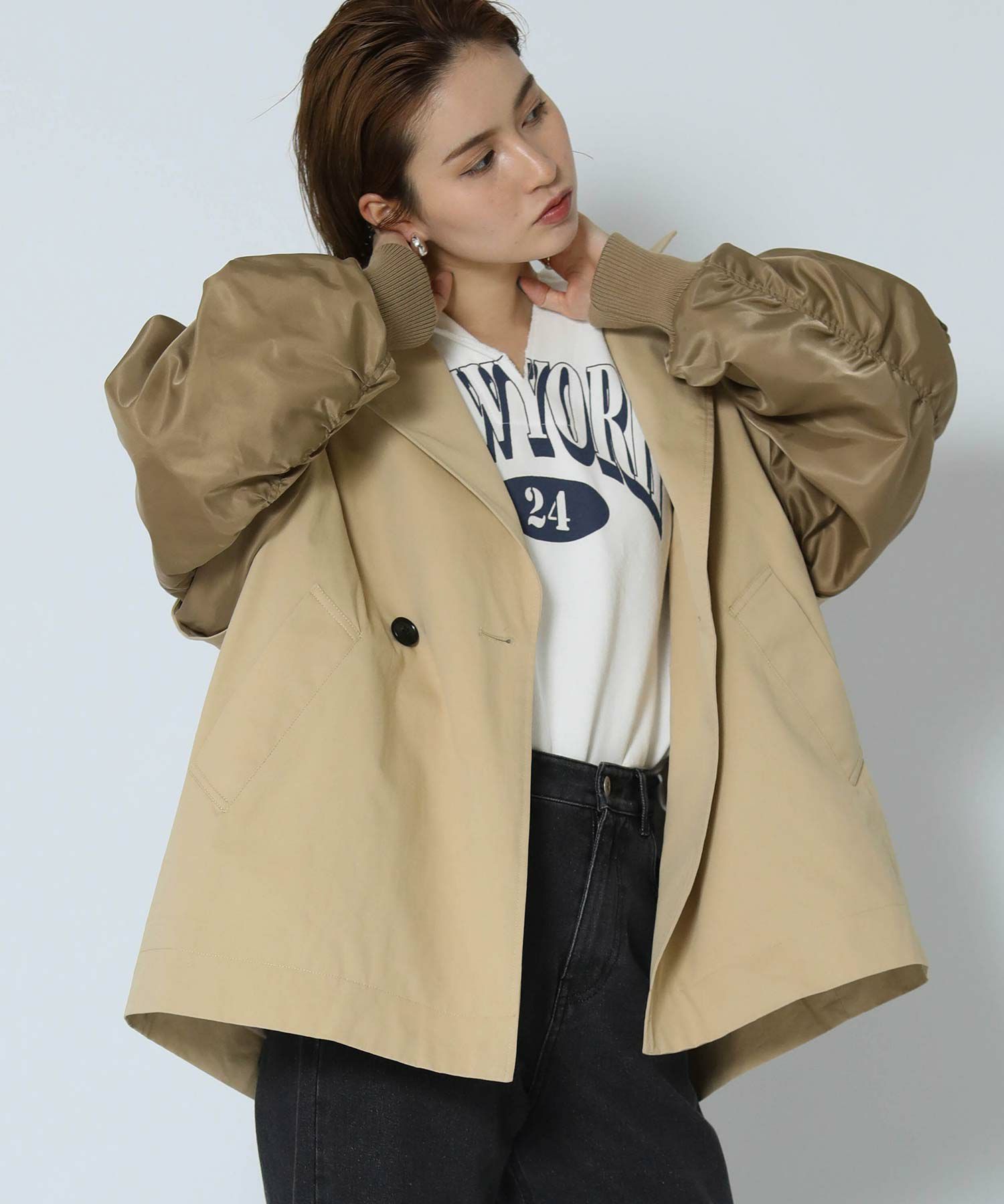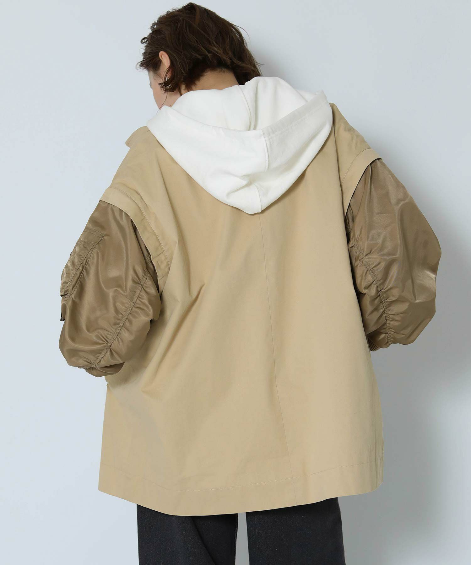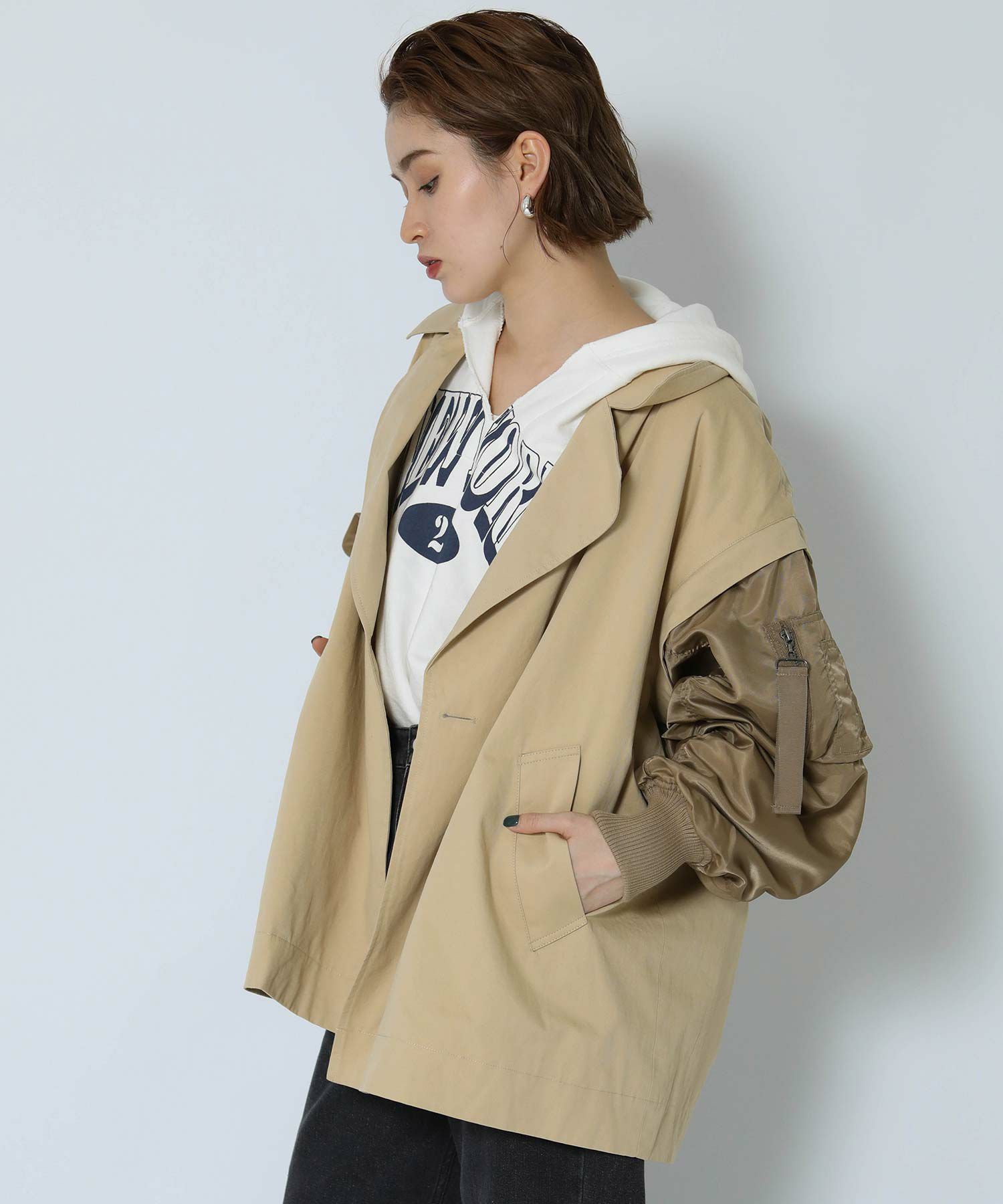 MA-1の袖をドッキングしたデザインが特徴のミドル丈コート。