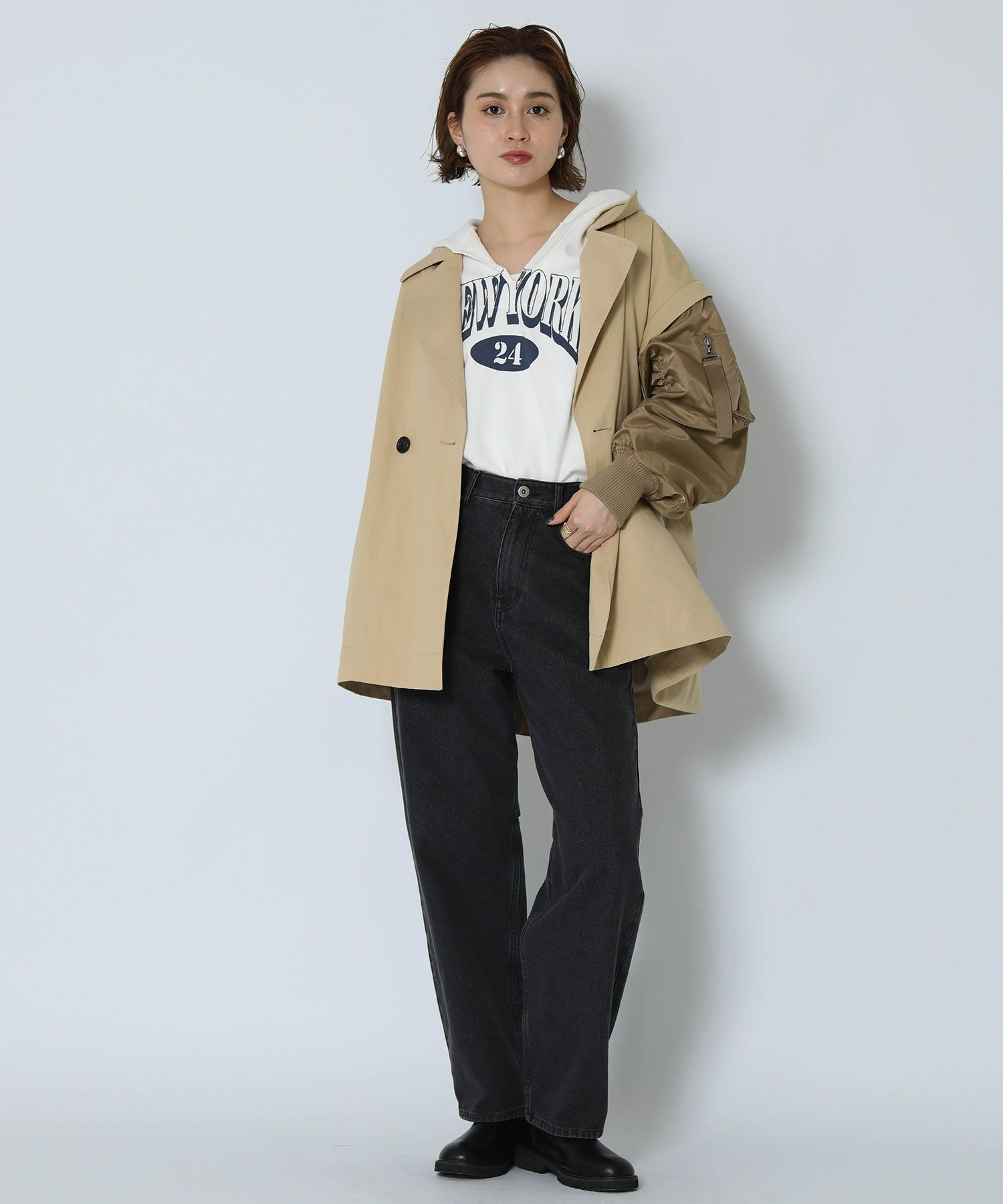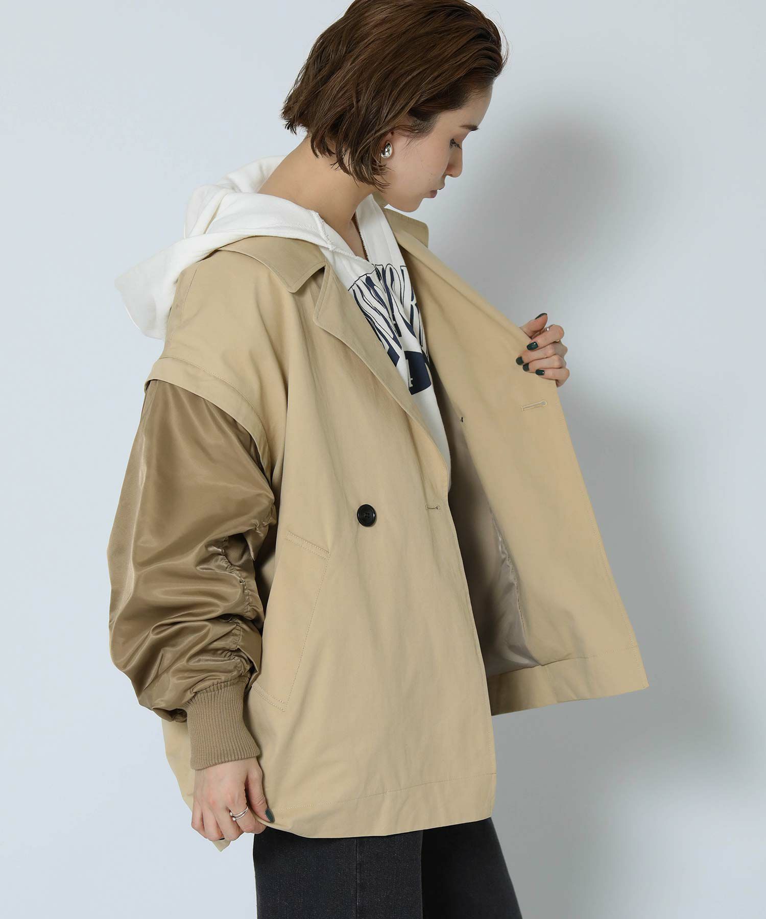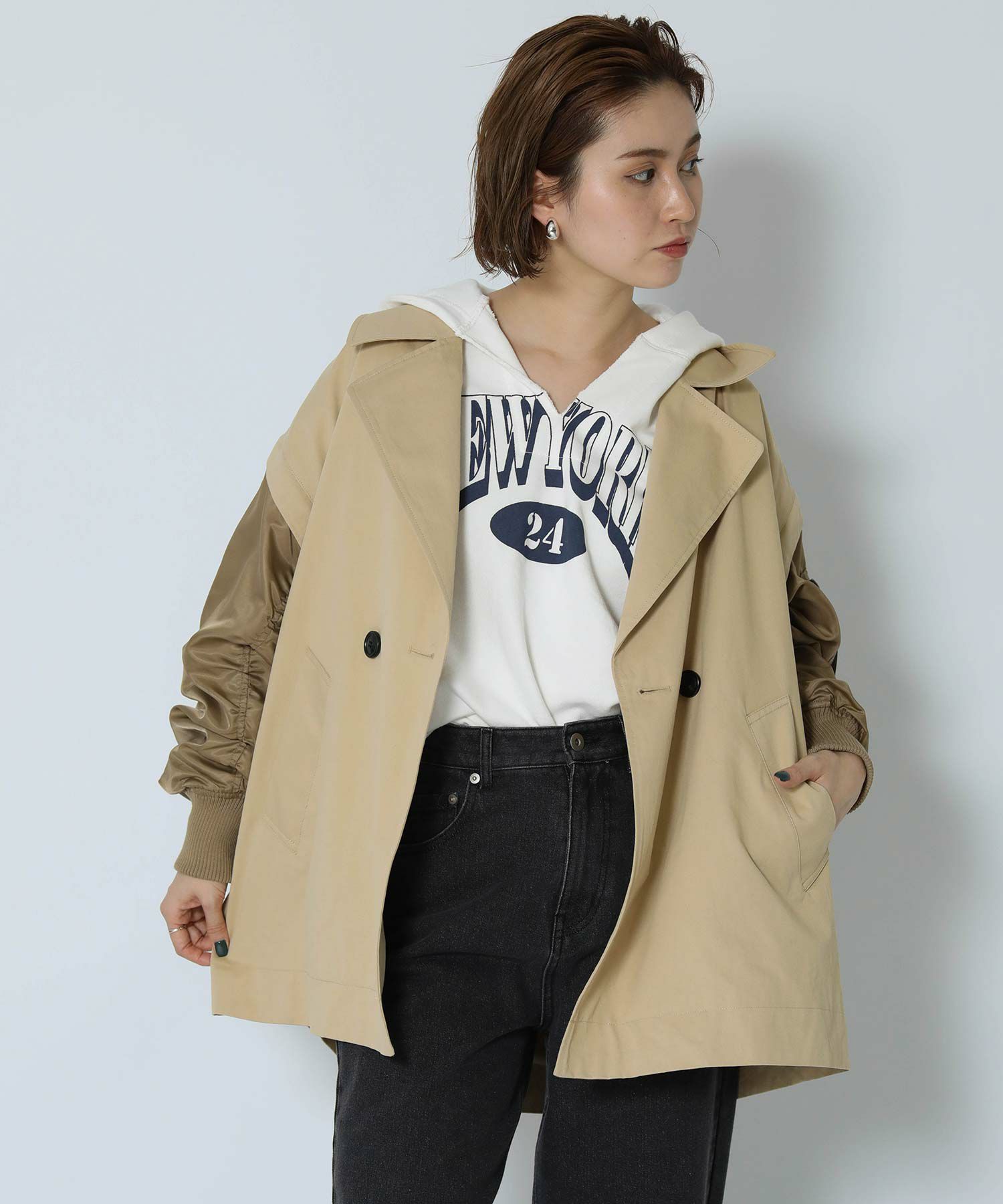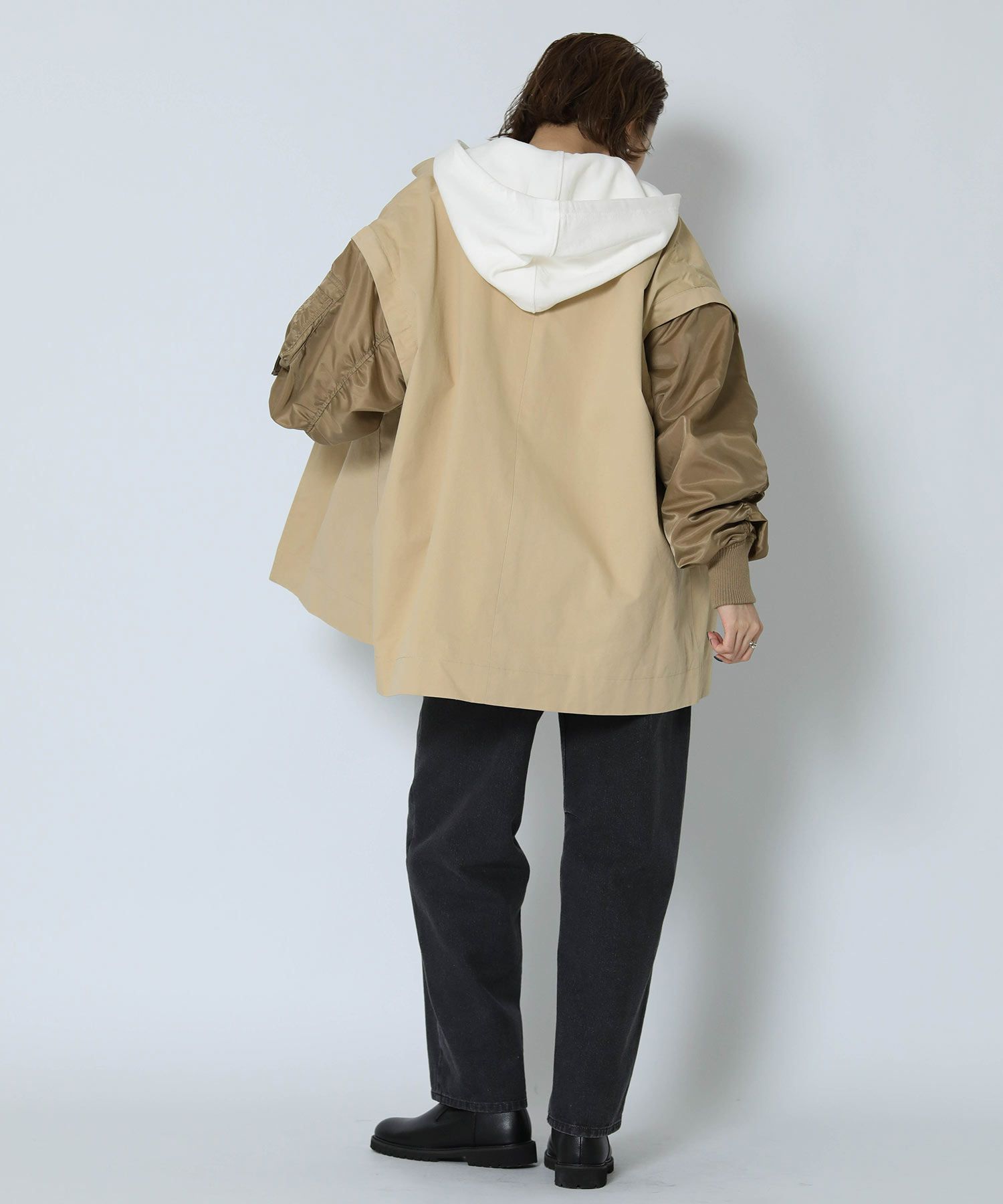 MA-1の袖をドッキングしたデザインが特徴のミドル丈コート。