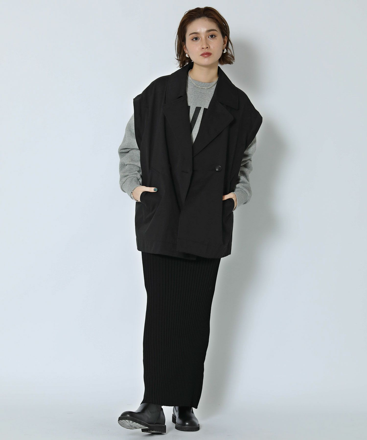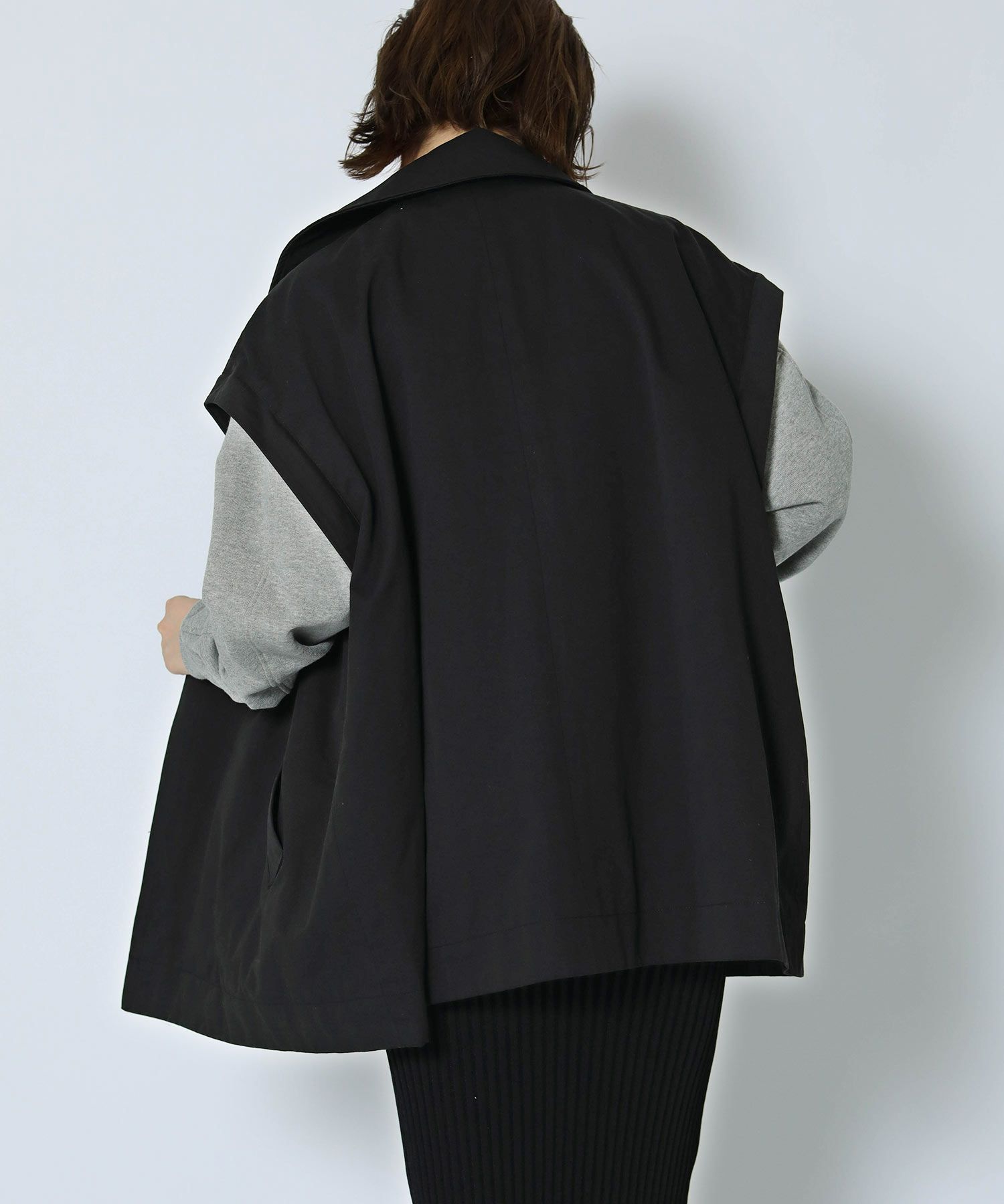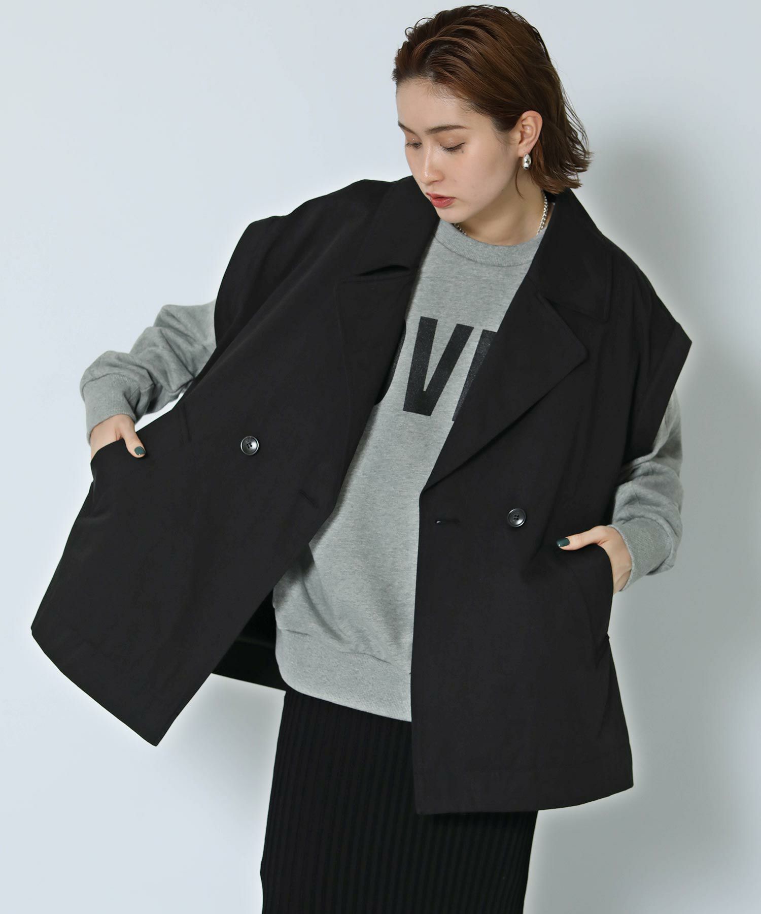 シンプルなスタイリングに合わせるだけでインパクトのある主役級コートです。インナーに厚手のトップスも着られるサイズ感なので季節の端境期におすすめのアイテム。袖を外してジレとしても使える2WAY仕様。合わせやすいベージュとブラックの2色ご用意しました。