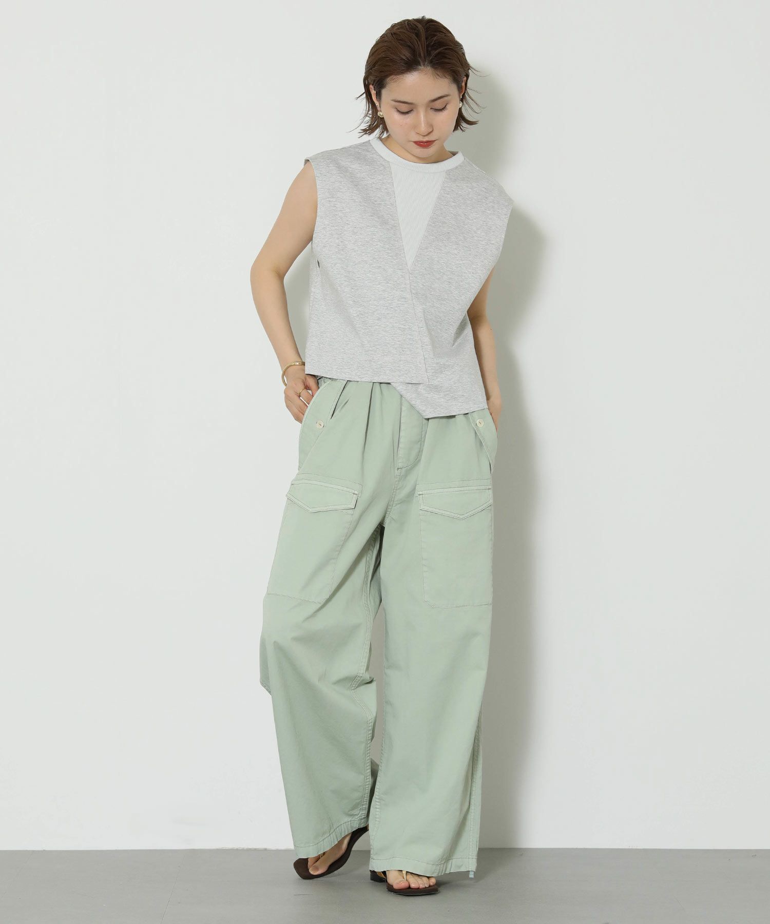 ニュアンスのあるキレイなカラーリングが『ReFiina』らしいワイドカーゴパンツ。