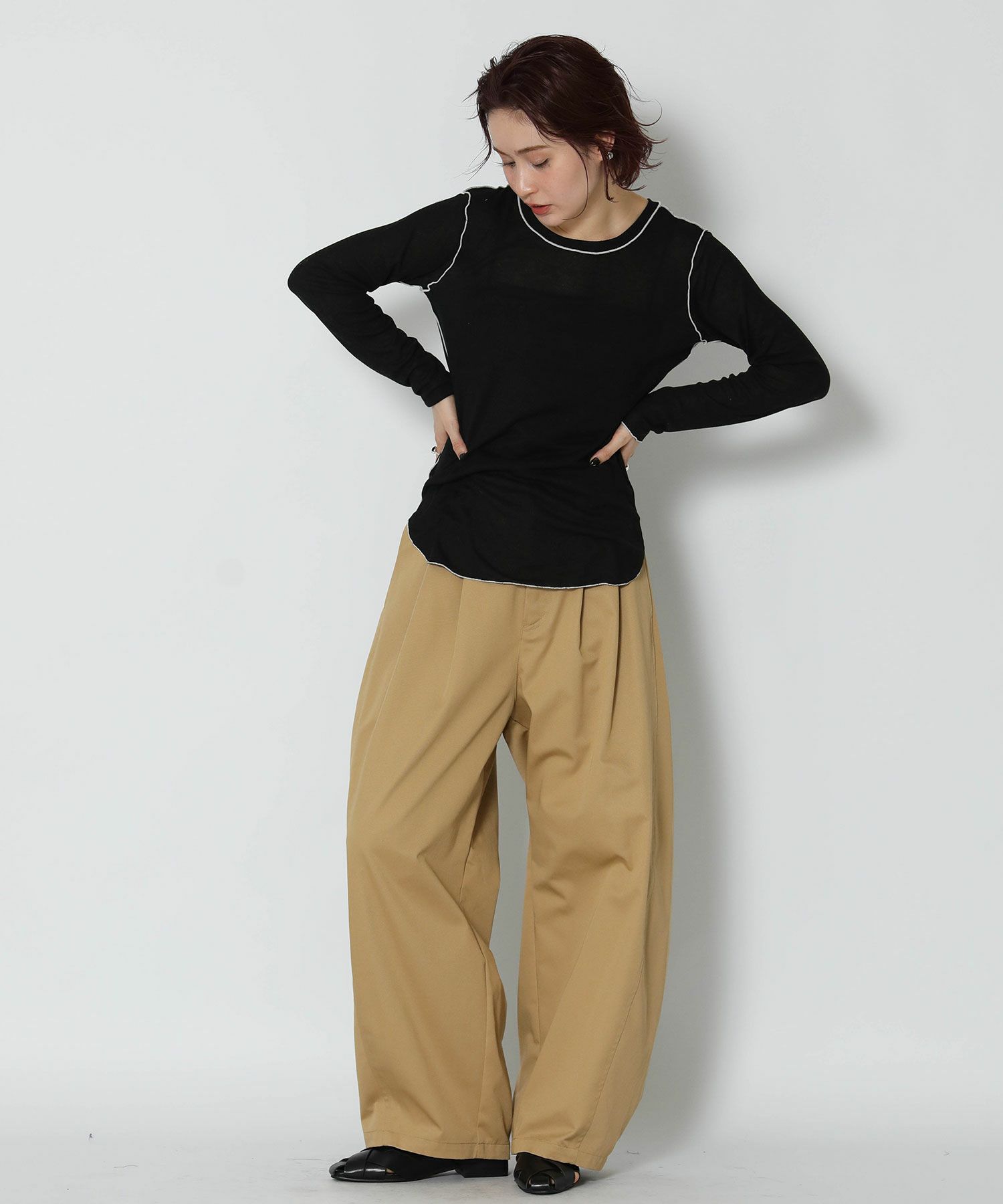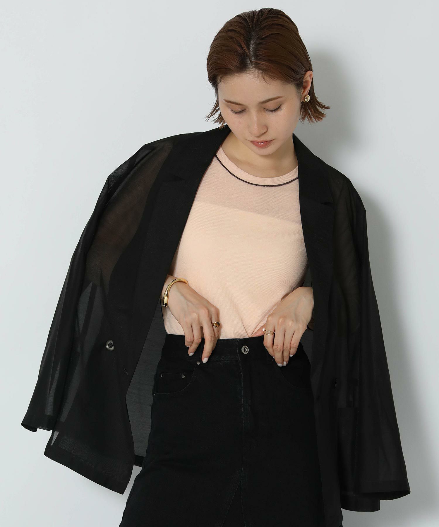 ※着用画像は撮影状況、光の当たり具合で色みが違って見える場合がございます。実際の色みについては、画像一覧の最後に掲載している詳細画像をご参照ください。