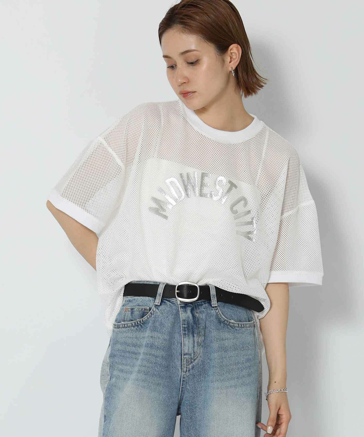 スポーティーなメッシュ素材のオーバーワイドTシャツ。