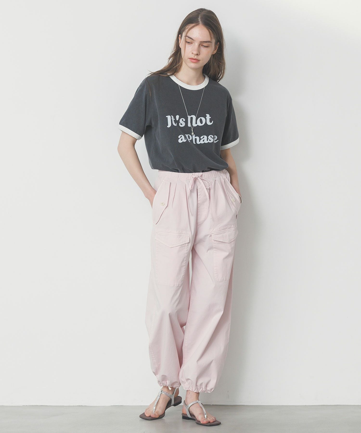 特殊な染色方法で染めるピグメント生地を使用し、ヴィンテージ感あるルックスなのがこだわりのポイント。カーゴパンツにサンダルでカジュアルに楽しんでもらいたい一着。「it’s not a phase」(”これが自分のスタイルなんだ”と自己主張するような時に使うスラング)のメッセージが心くすぐる、遊び心のあるデザインです。