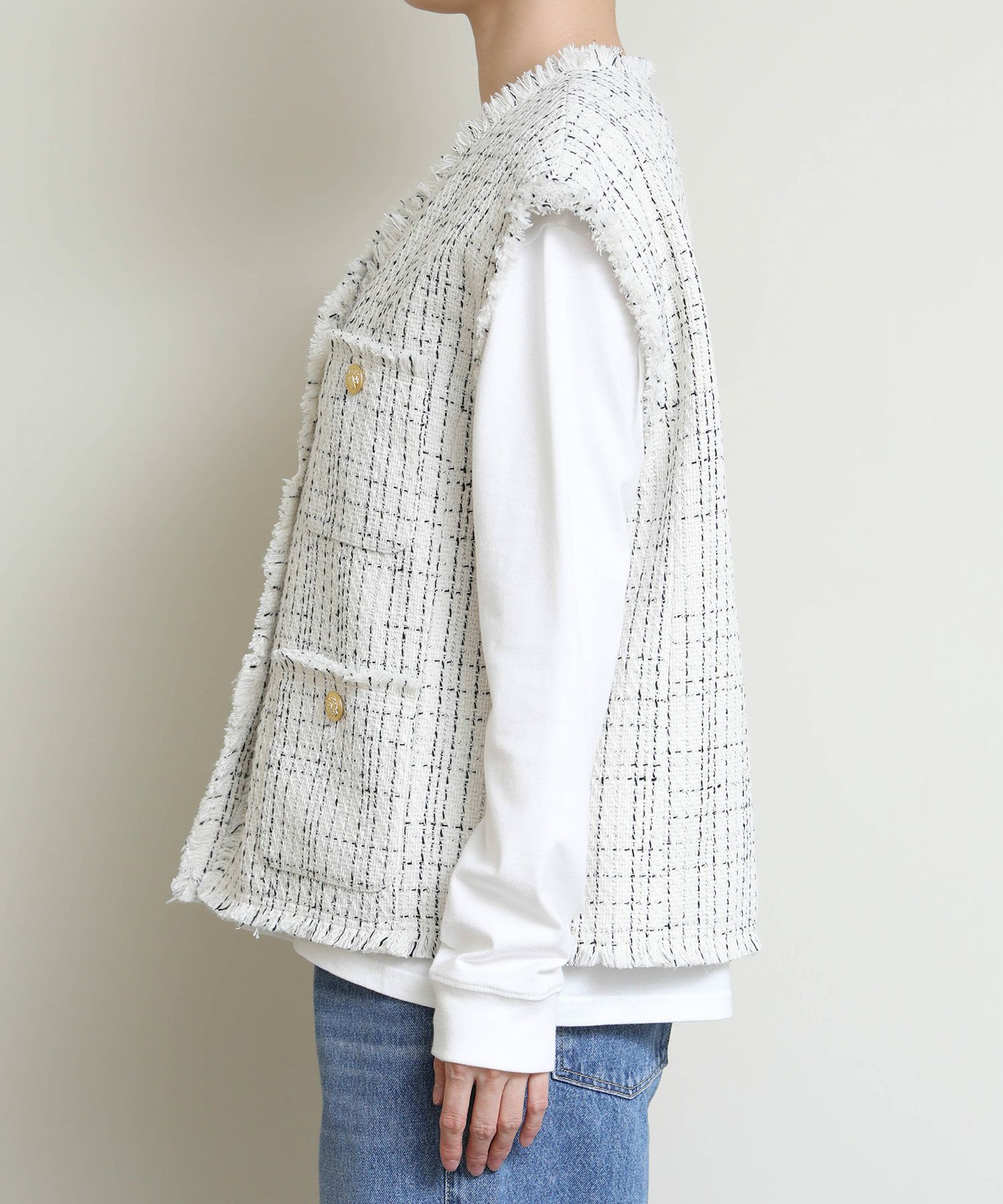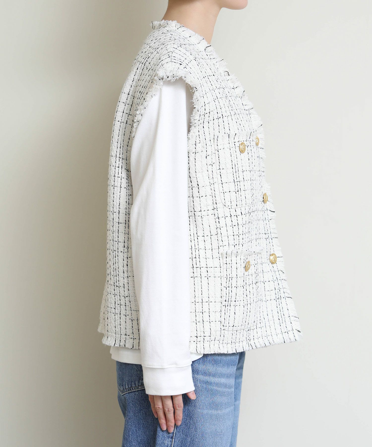 高級感のあるツイード素材のベストが登場。