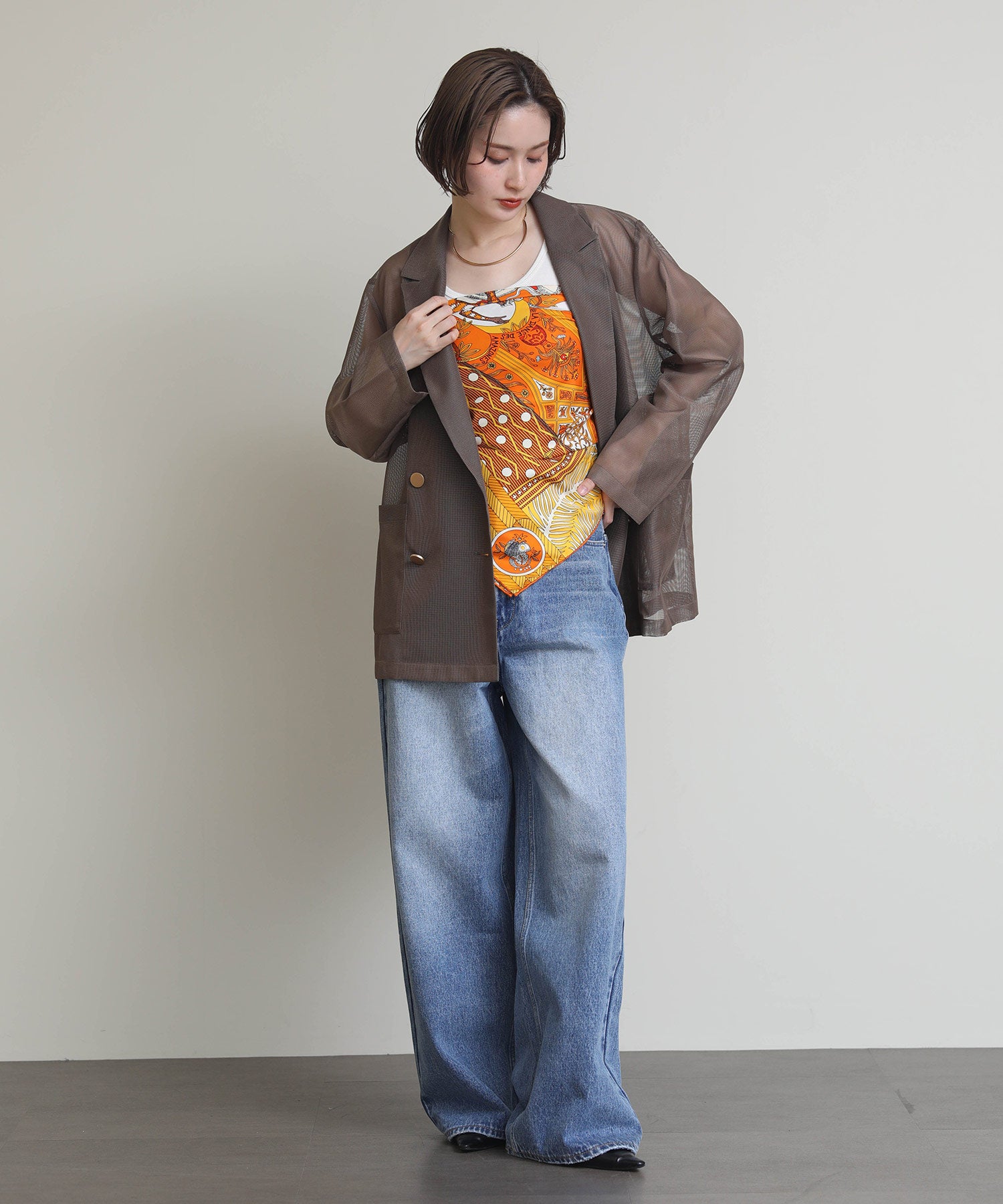 ※着用画像は撮影状況、光の当たり具合で色みが違って見える場合がございます。実際の色みについては、画像一覧の最後に掲載している詳細画像をご参照ください。