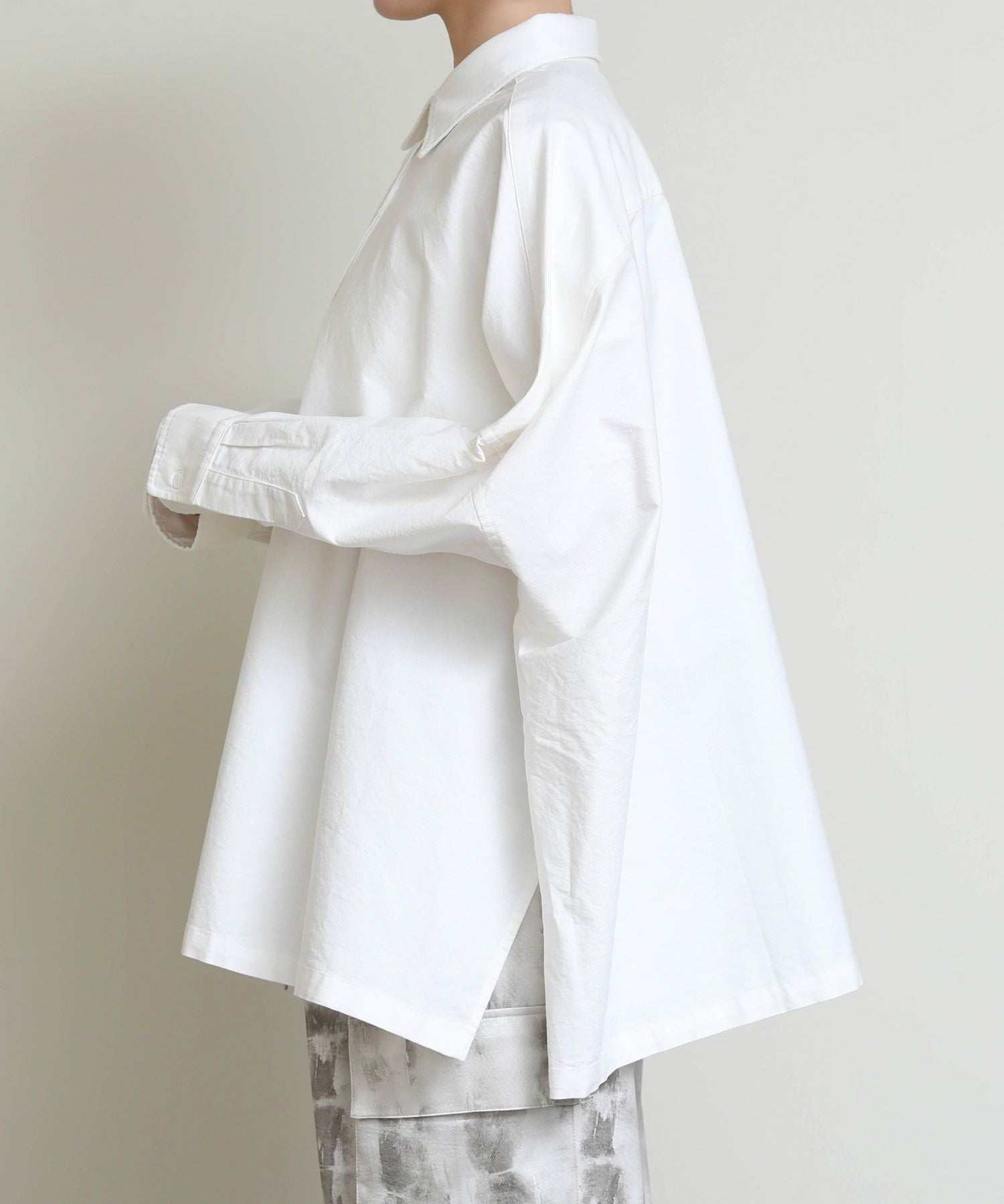コットン素材を使用した、程よいハリ感と軽さを兼ね備えたオーバーシャツ。