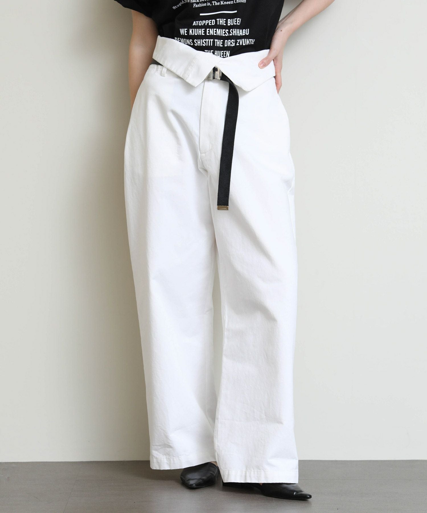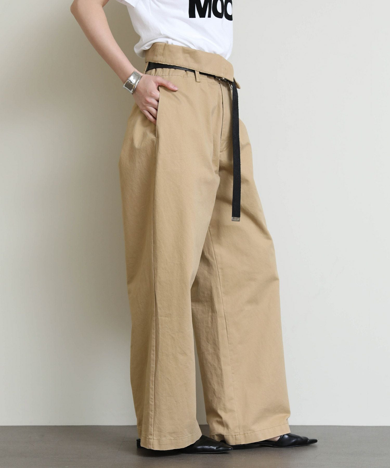 存在感のあるウエストデザインが目を惹くワイドパンツ。