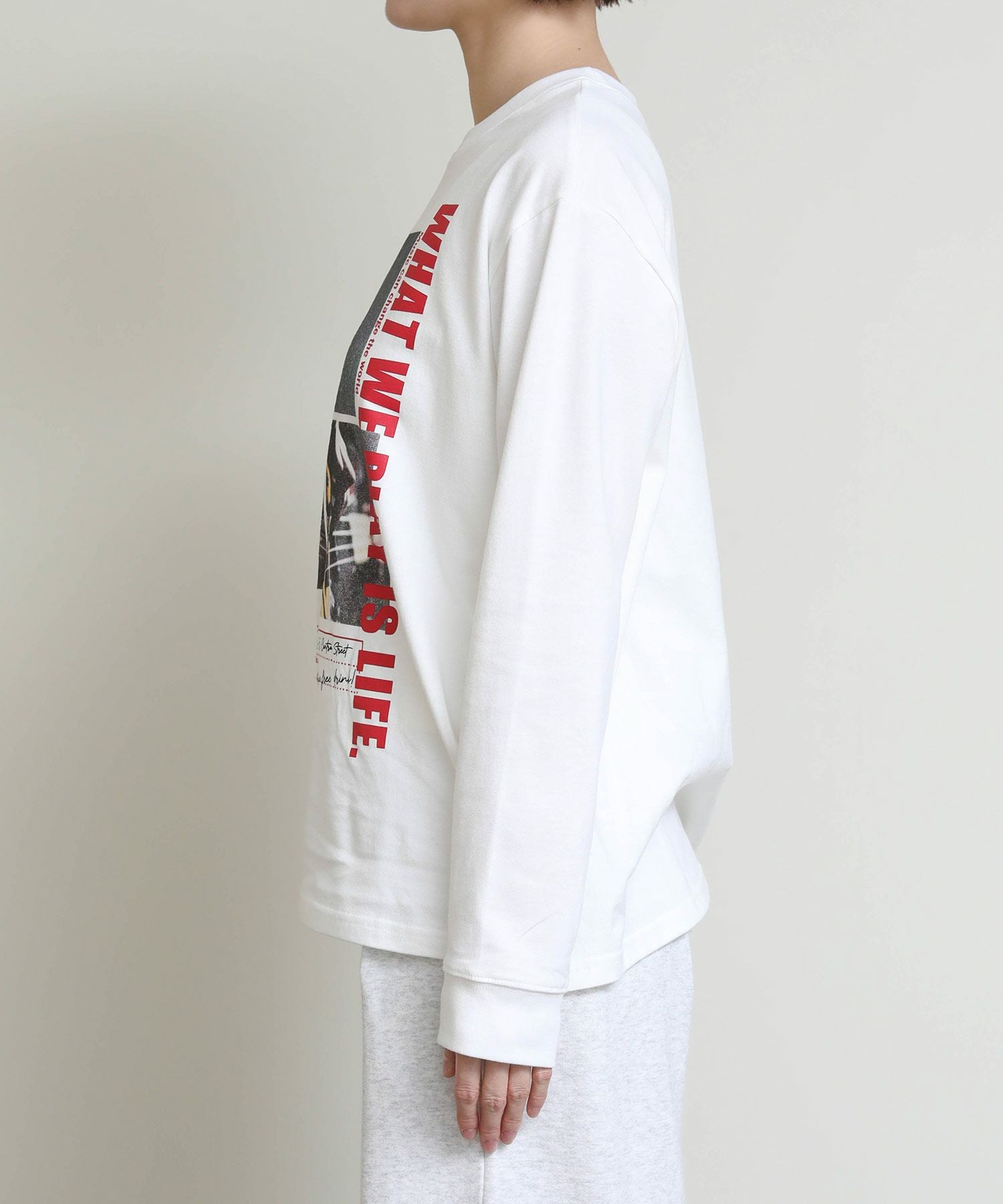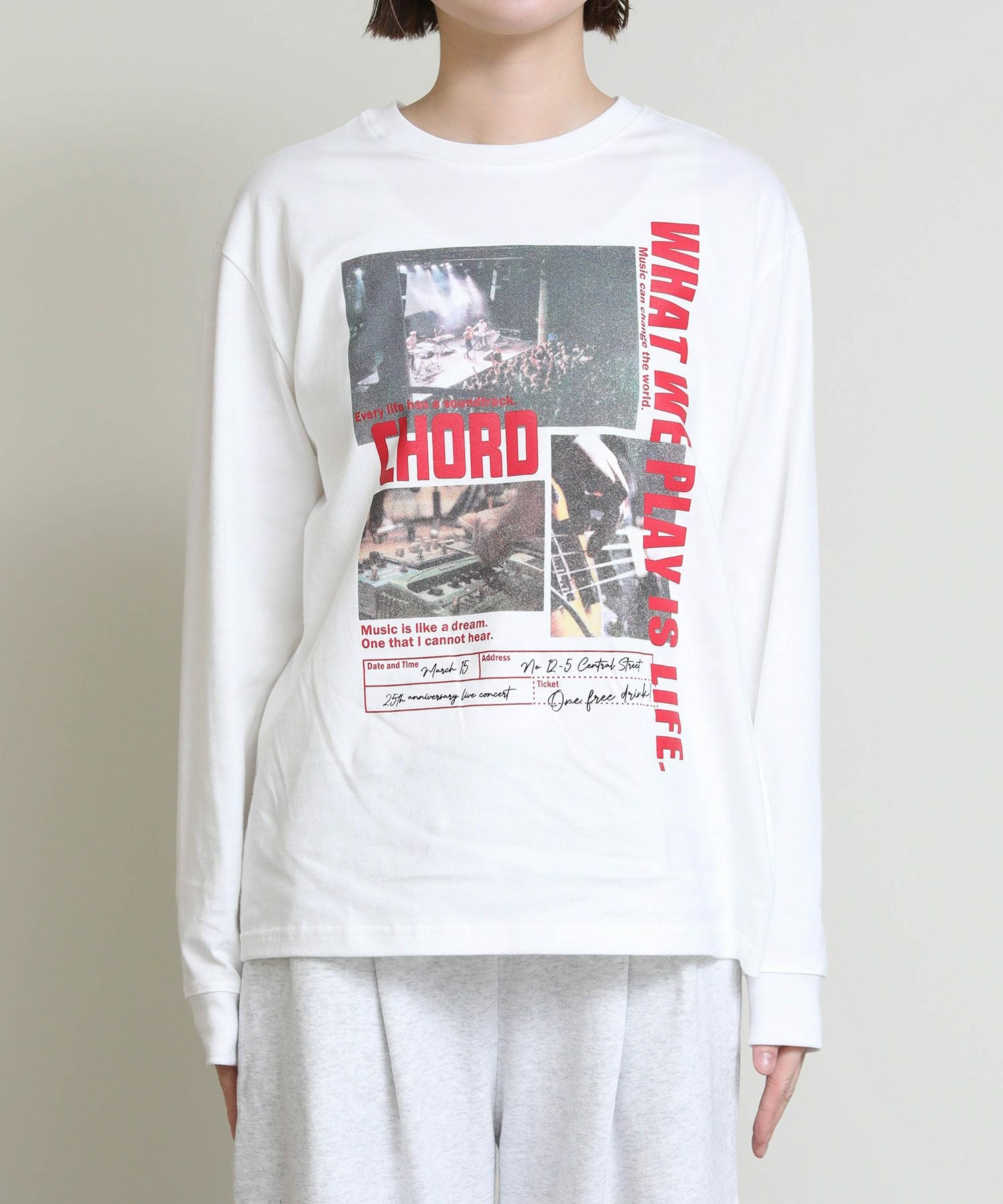 ロックバンドのCDジャケットの様なプリント特徴的なデザインロンT。