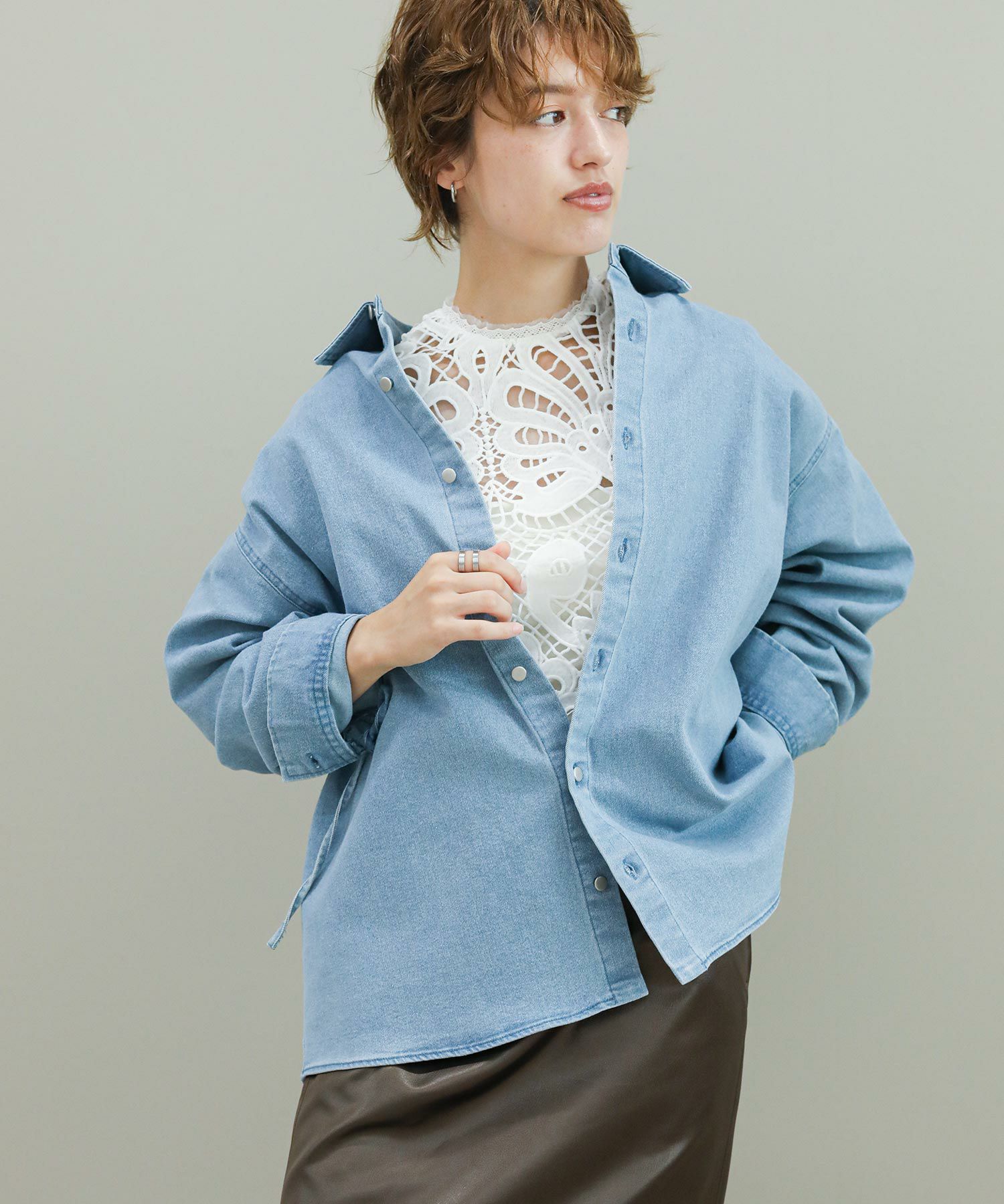 一見シンプルなデザインながらも様々な着こなしが楽しめるデニムシャツジャケット。