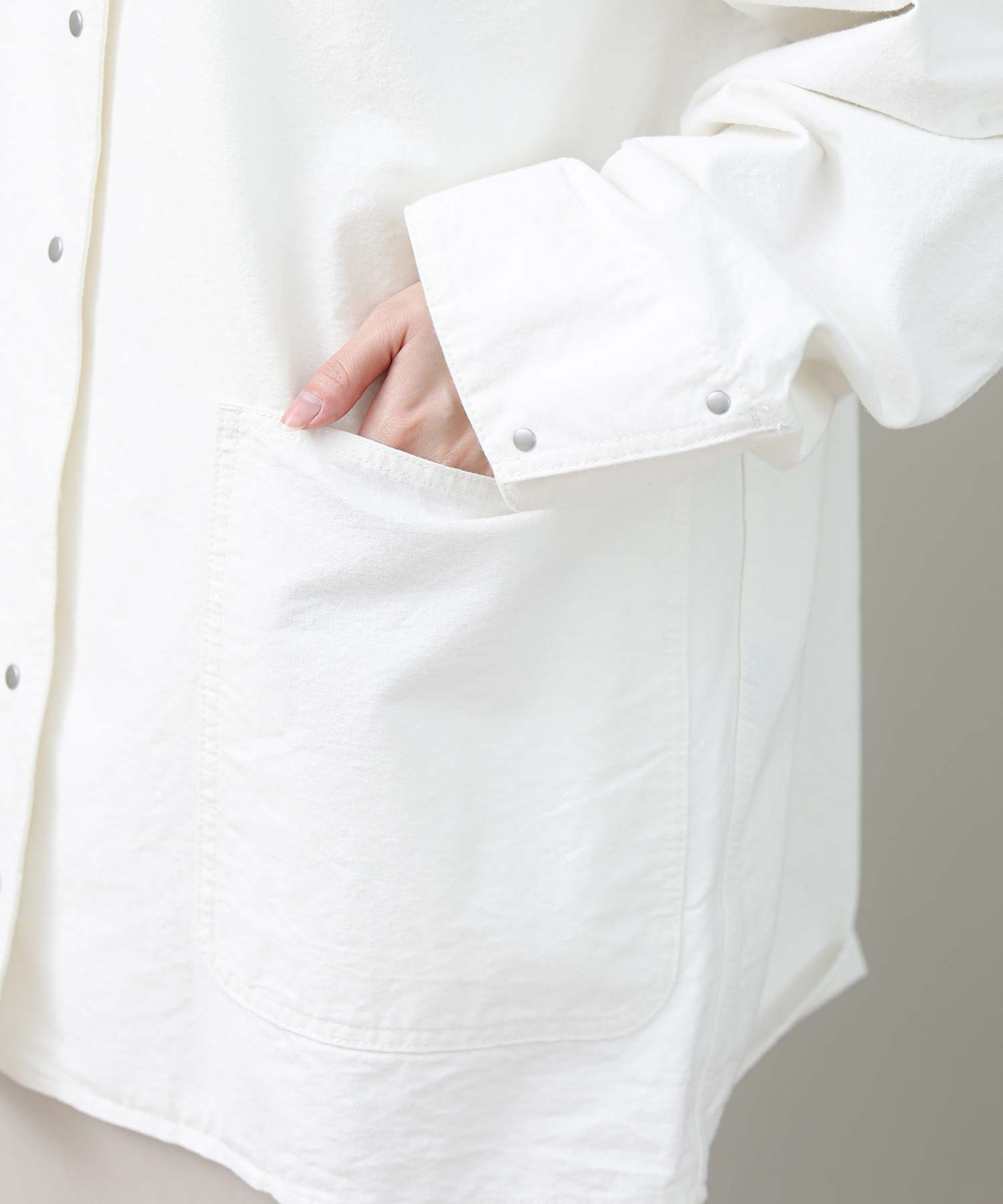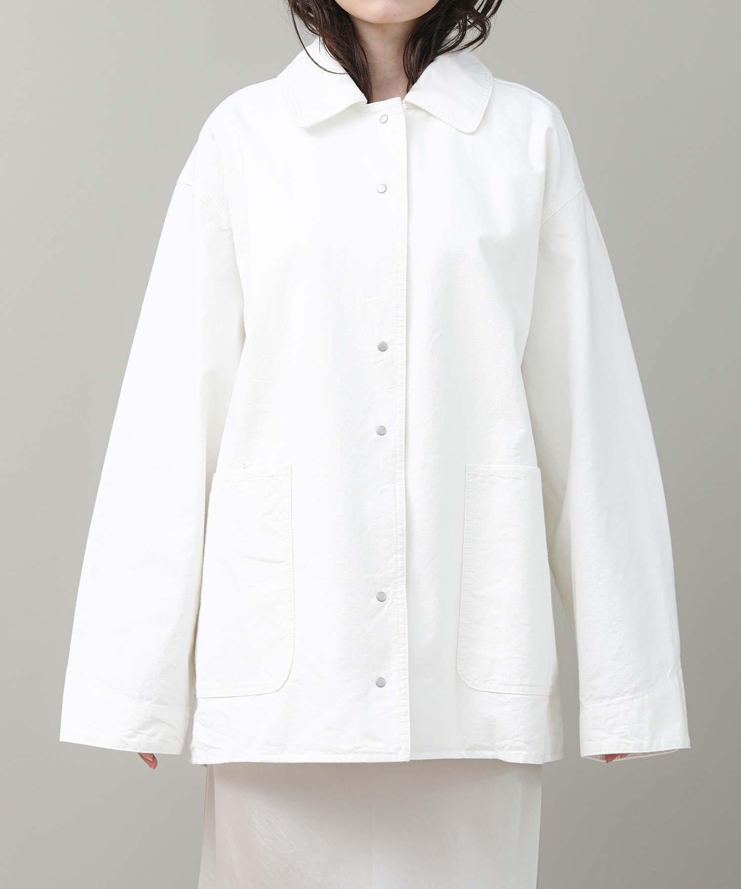 オーバーサイズのリラックスシルエットに、洗いをかけて柔らかく仕上げた生地が着るほどに体になじむ風合いを生み出します。フロントと袖口の小