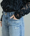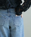 The rejoiceの別注デザインです。ヴィンテージライクな風合いやダメージのバランスに拘っています。ヒップにかけてコンパクトな設計になっている為、ワイドながらルーズさはなく上品なシルエットが特徴。さりげないダメージ感がどんなアイテムにもマッチし飽きないデザイン。今のムードにぴったりのローライズもポイントです。