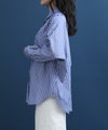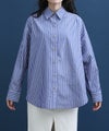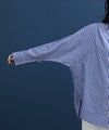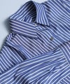 定番のメタル釦シャツを春らしい鮮やかなブルーのストライプで。