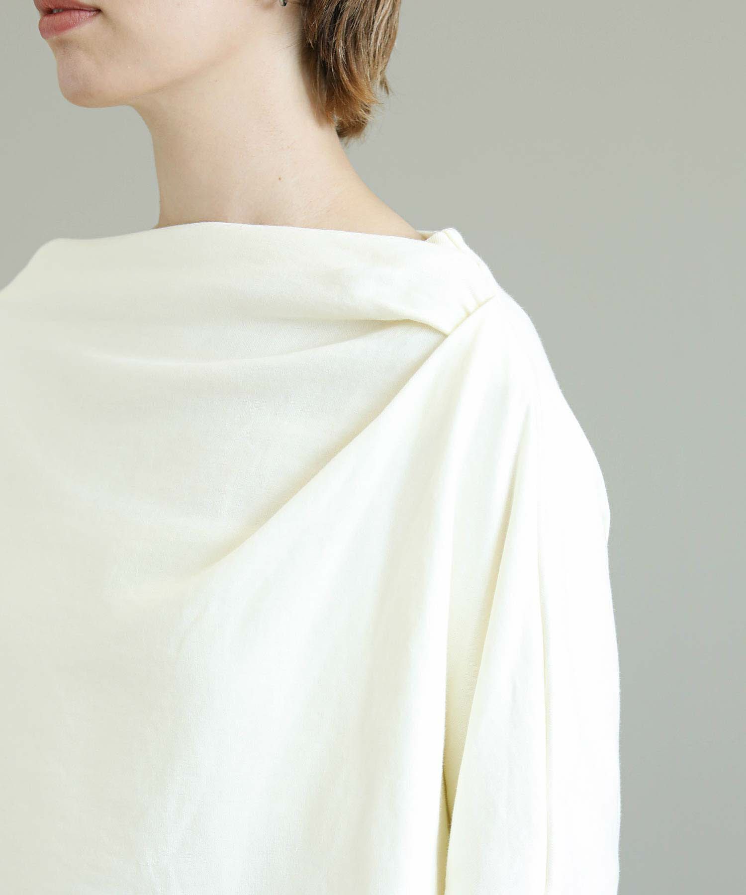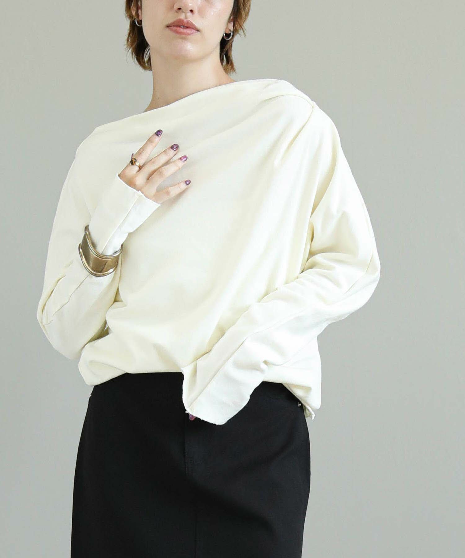 柔らかな素材感が心地よい、アシンメトリーデザインの長袖トップス。