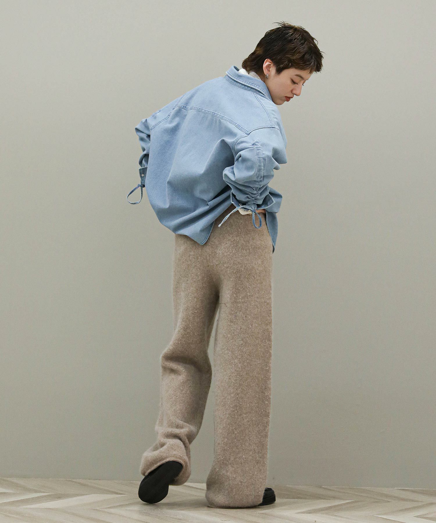 イージーな穿き心地が魅力。優しいニットの風合いとシックなカラーがカジュアルさを抑え大人な表情です。程よいワイドシルエットでトップスを選ばないのも嬉しいポイントです。股上は長めに設定されているので、丈が長い場合はウエストを折り返して着丈の調整が行えます。 同素材のプルオーバーニット(5034170031)とのセットアップもおすすめです。