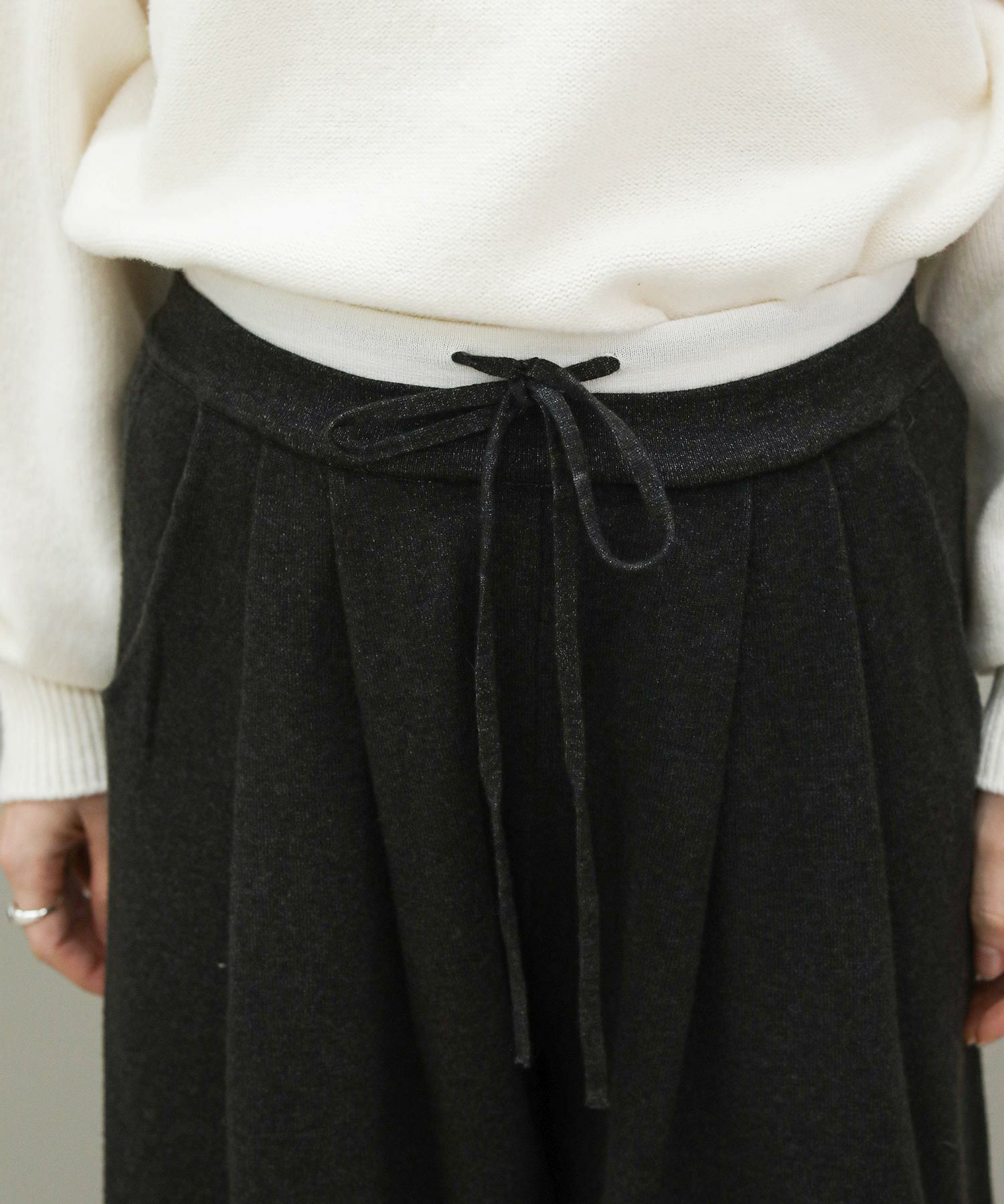 二重になったウエストのデザインがポイントのニットパンツ。