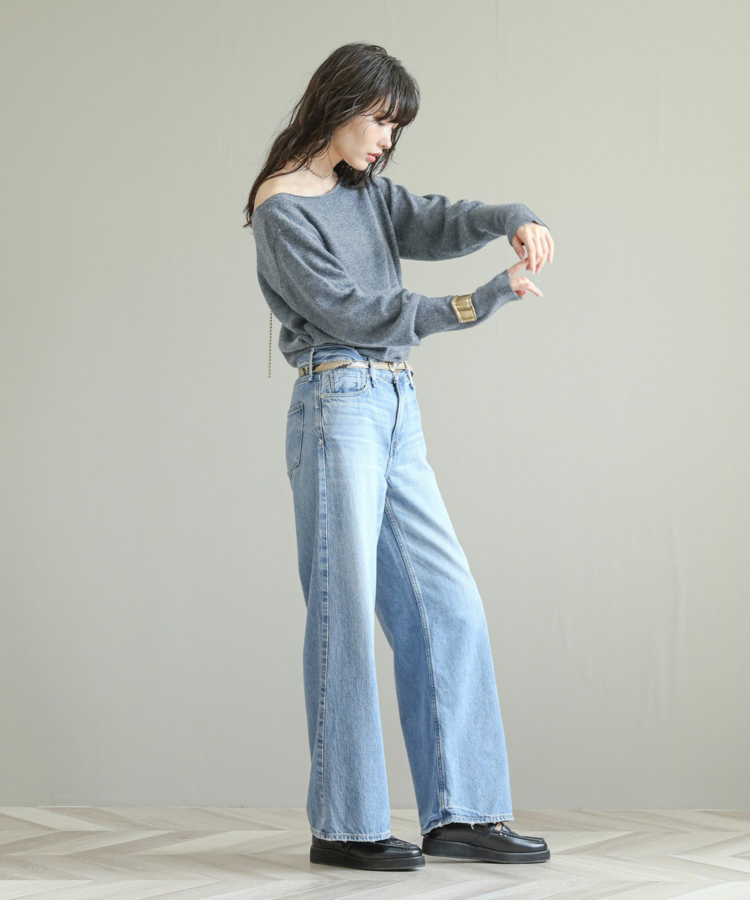 ※着用画像は撮影状況、光の当たり具合で色みが違って見える場合がございます。実際の色みについては、画像一覧の最後に掲載している詳細画像をご参照ください。