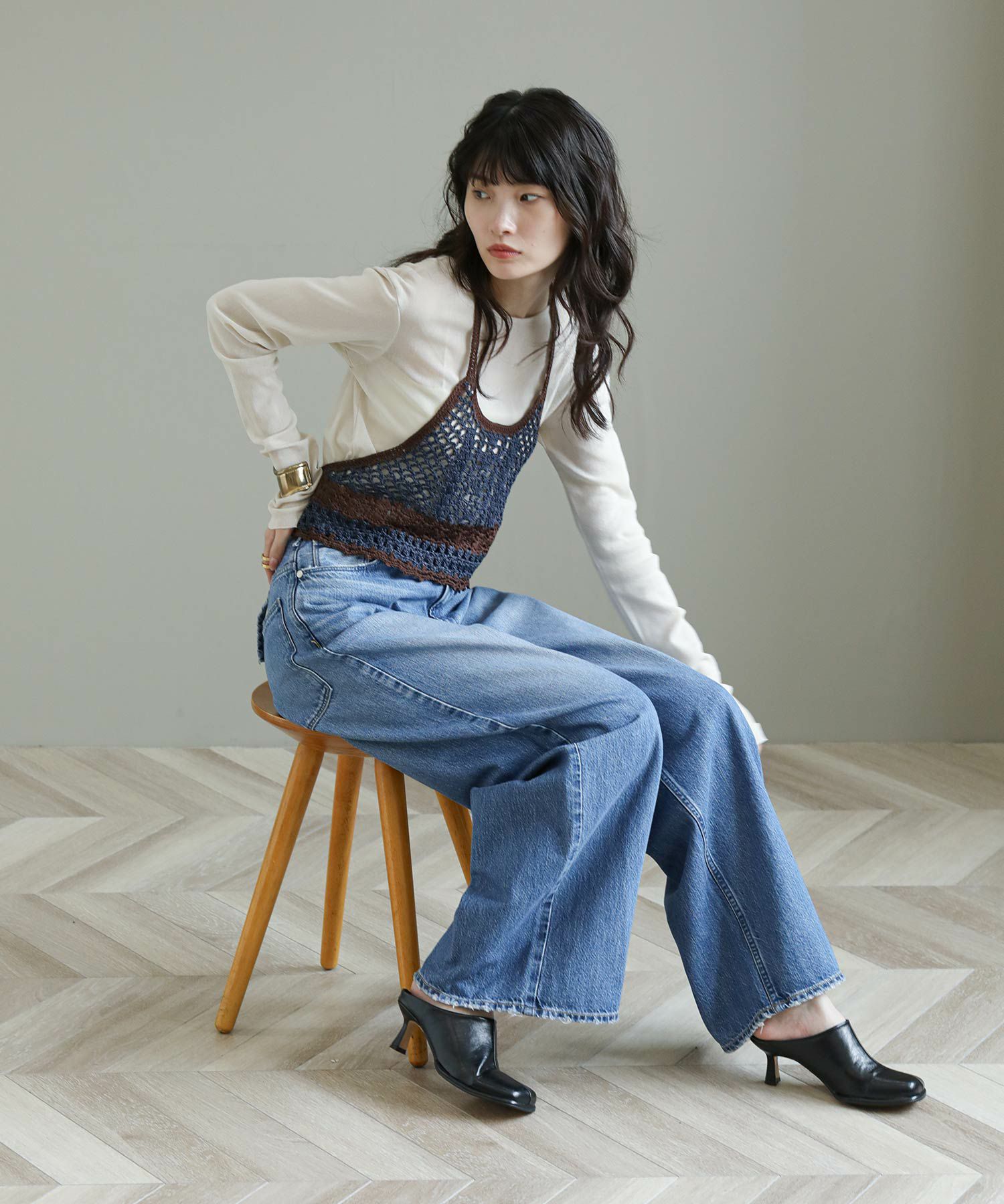 ※着用画像は撮影状況、光の当たり具合で色みが違って見える場合がございます。実際の色みについては、画像一覧の最後に掲載している詳細画像をご参照ください。