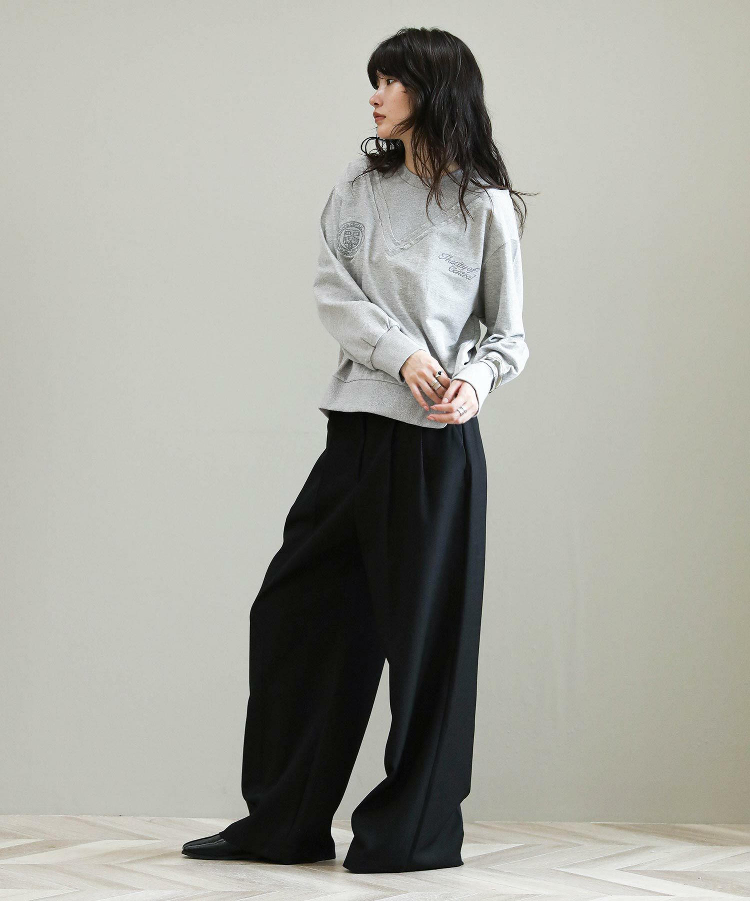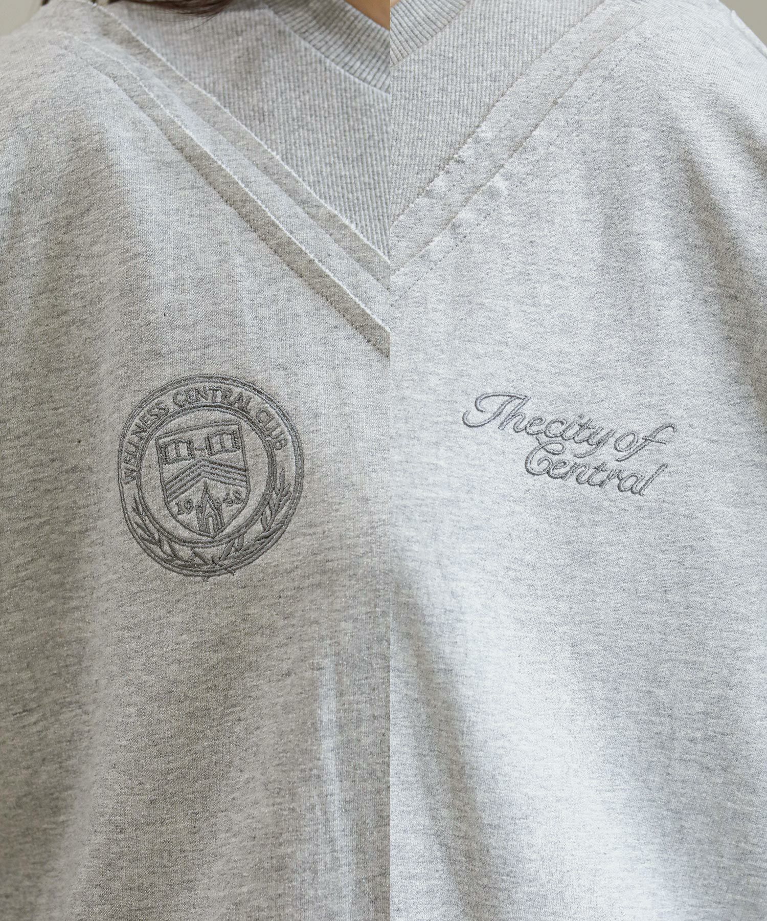 肩部分のさりげない肌見せがポイント。刺繍のエンブレムとロゴがカジュアルすぎず大人ぽい雰囲気に。ベーシックなボトムと合わせてもスタイルが決まるデザイントップスです。