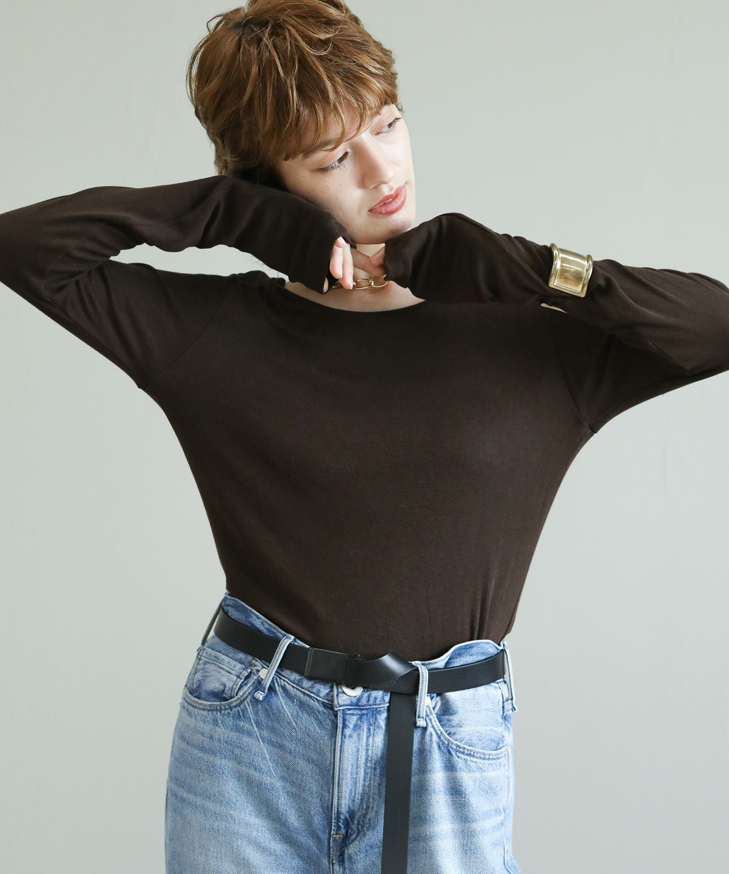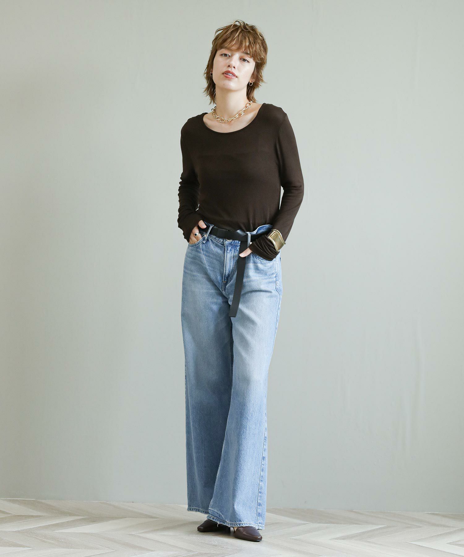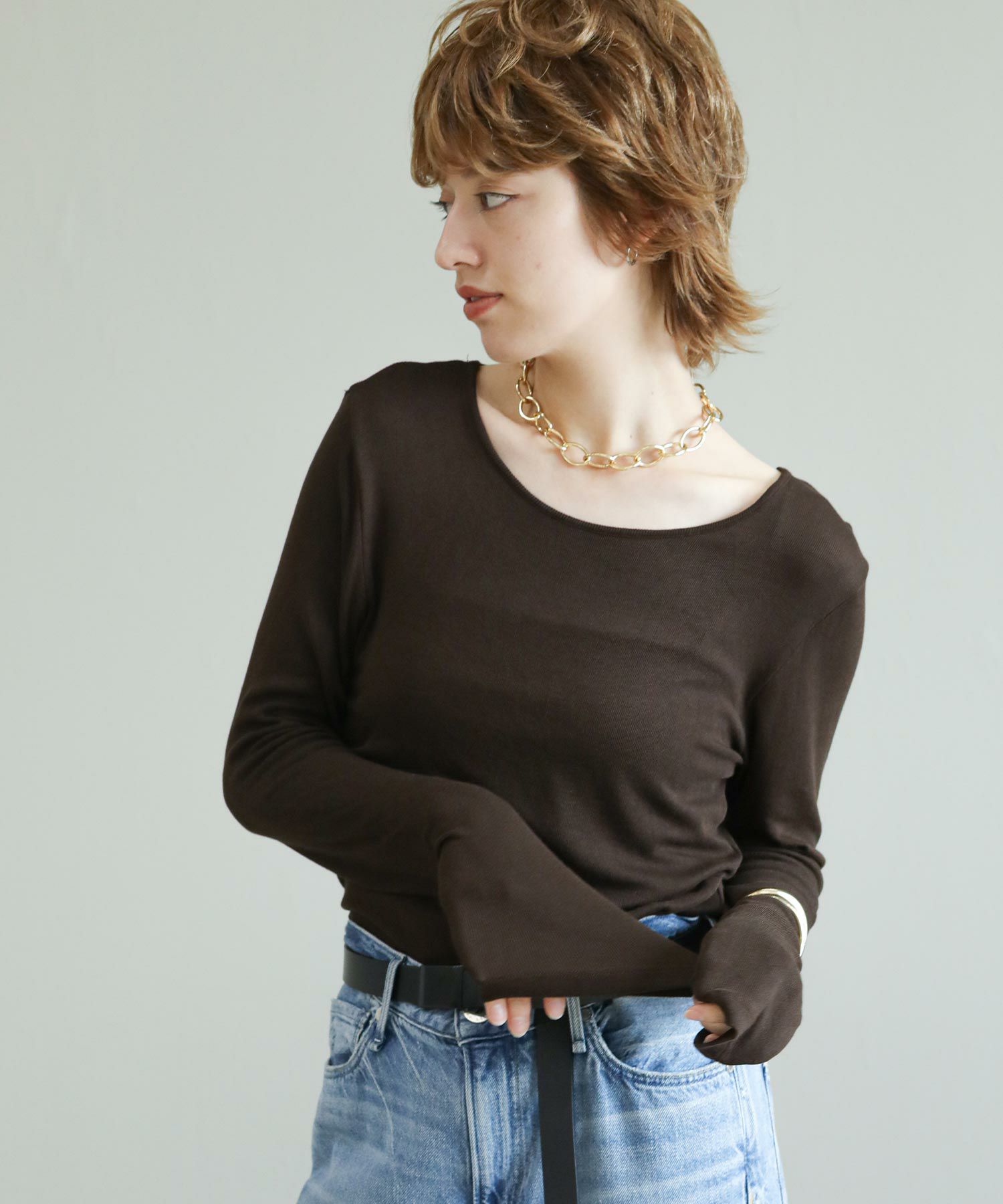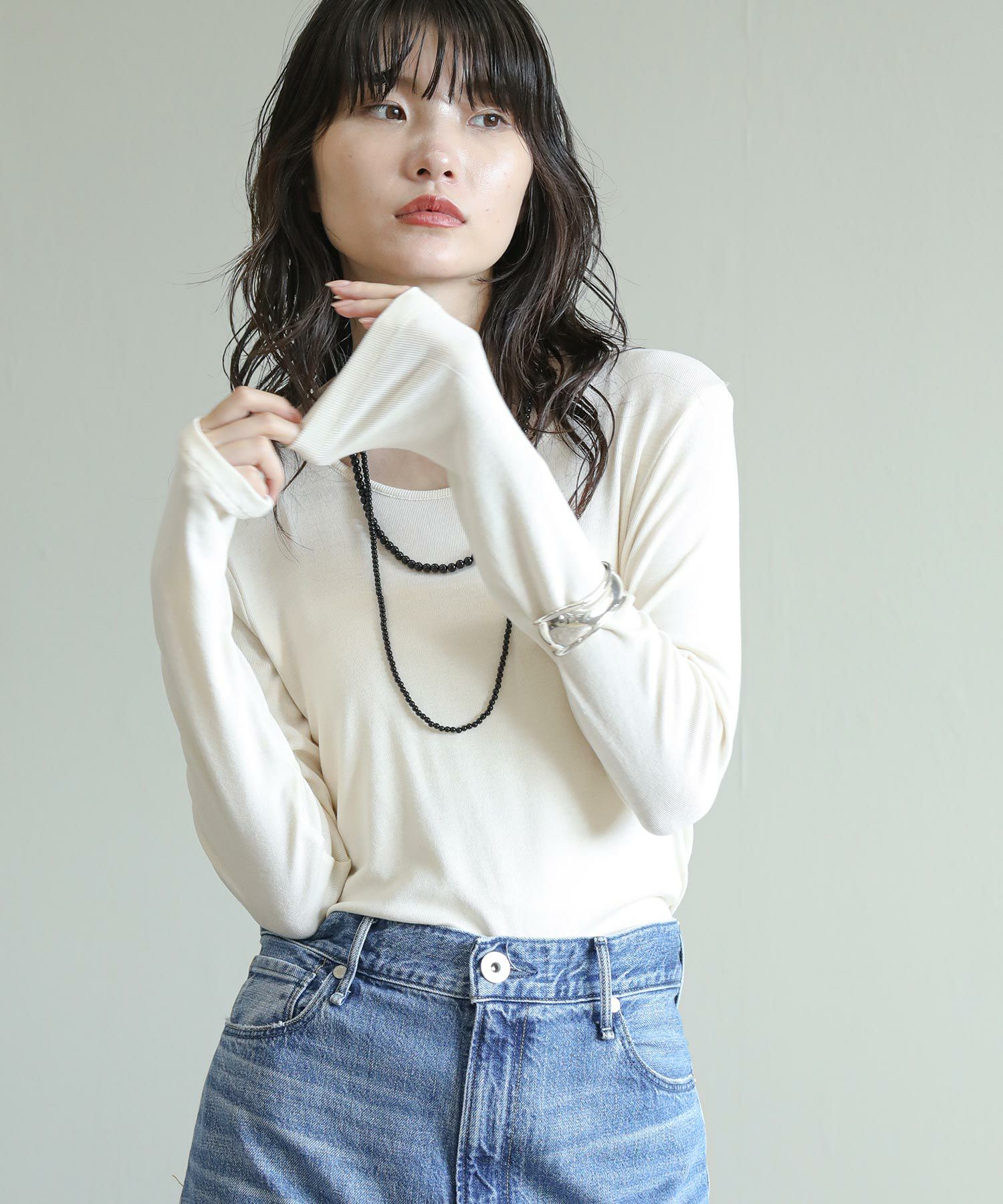 ※着用画像は撮影状況、光の当たり具合で色みが違って見える場合がございます。実際の色みについては、画像一覧の最後に掲載している詳細画像をご参照ください。