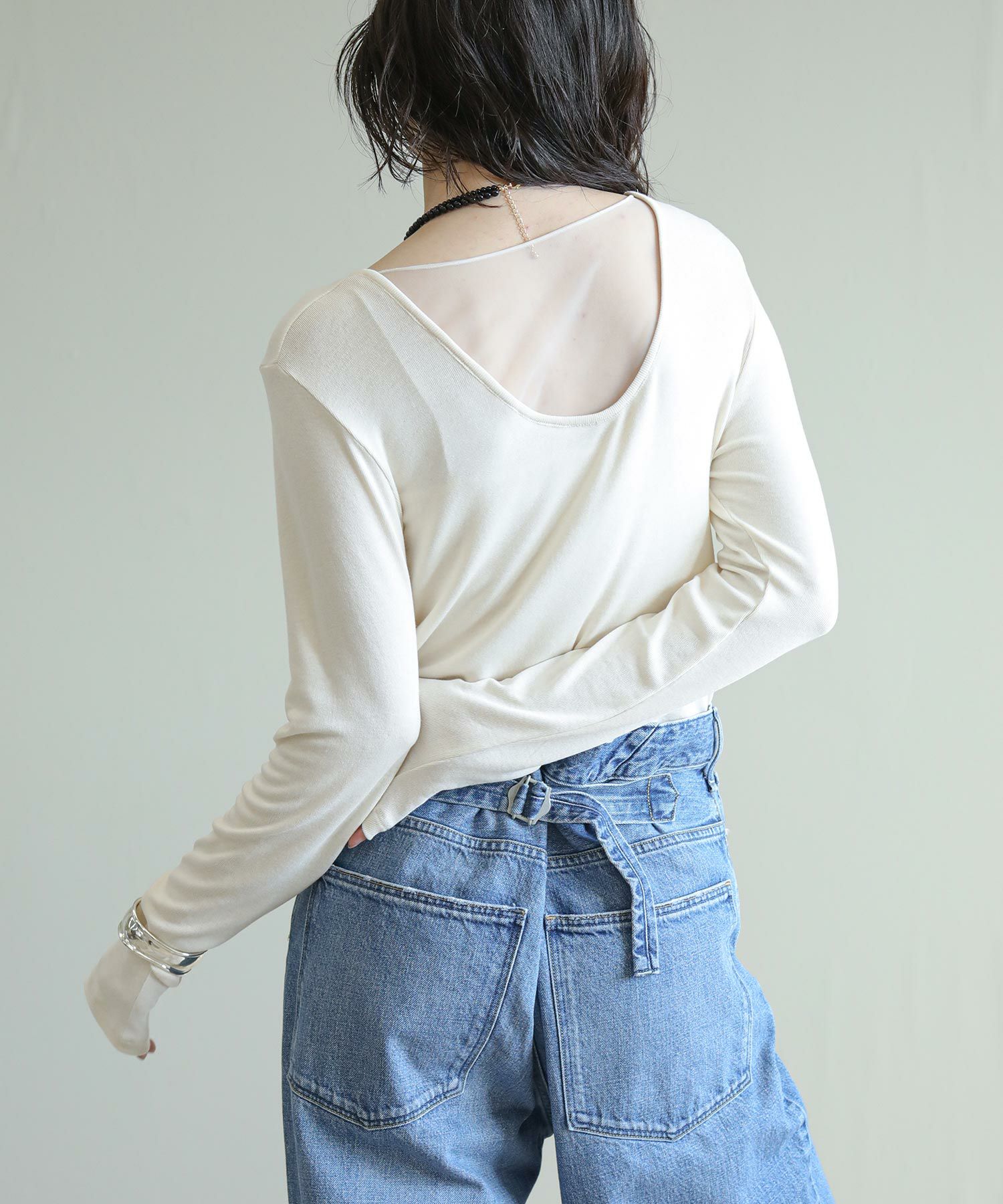 重くなりがちなベロアトップスもシアー感のあるチュールと組み合わせることで軽やかな着こなしが可能に。デニムなどカジュアルなボトムと合わせて女性らしいカジュアルスタイルを楽しめます。